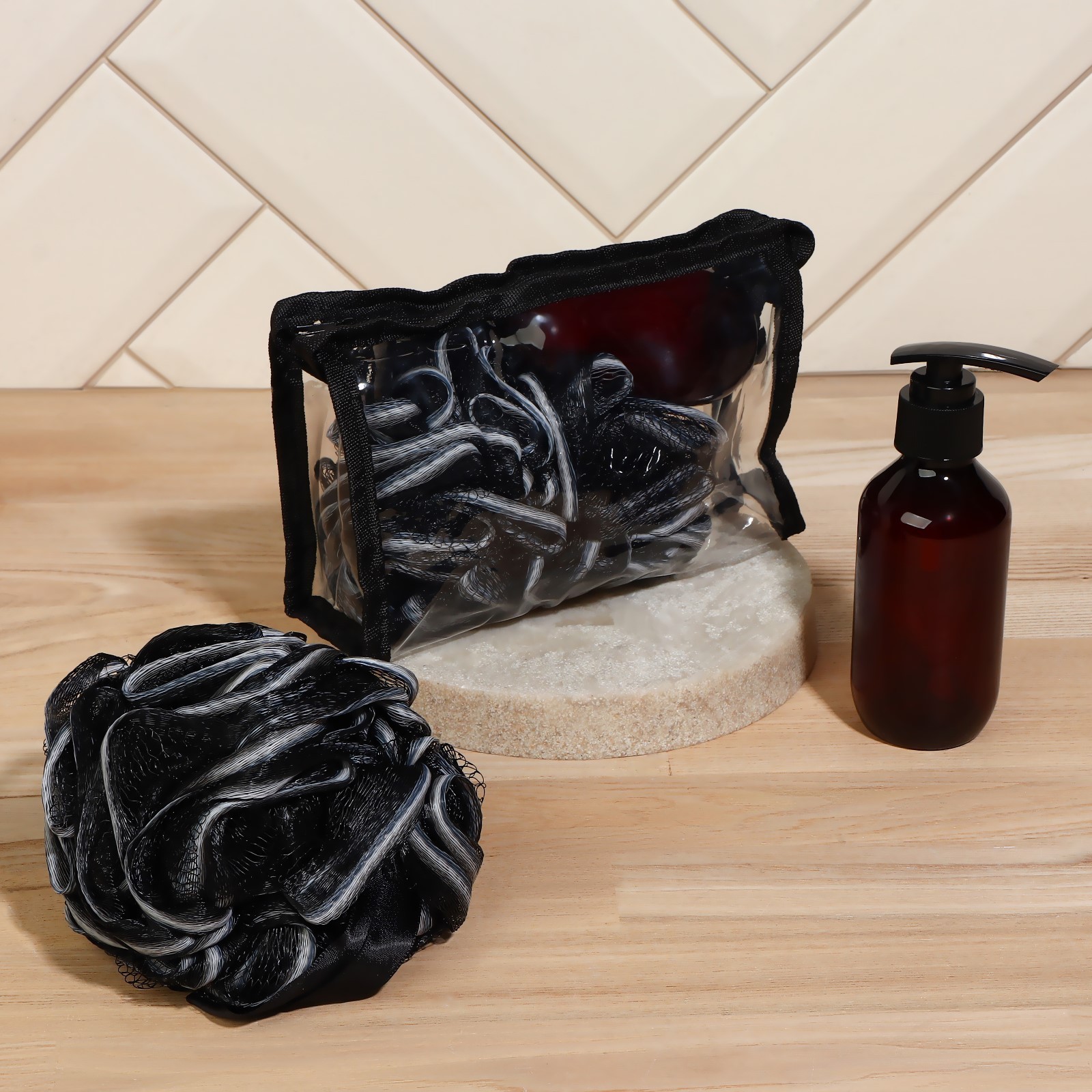 Набор банный, в косметичке, 2 предмета (мочалка, бутылочка 150 мл), цвет чёрный.