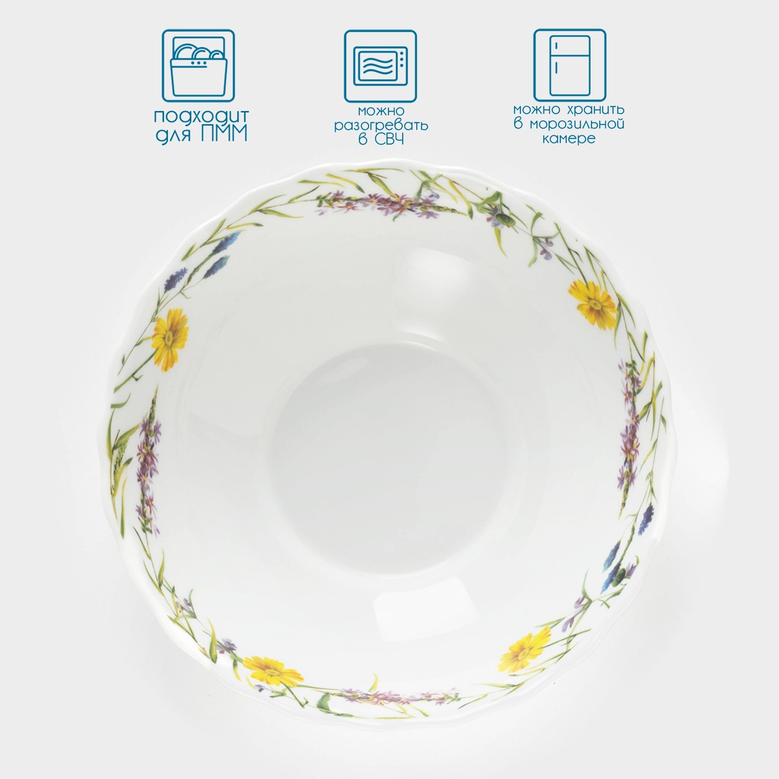 Тарелка суповая Avvir «полевые цветы», 600 мл, D=17,5 см, стеклокерамика, цвет белый