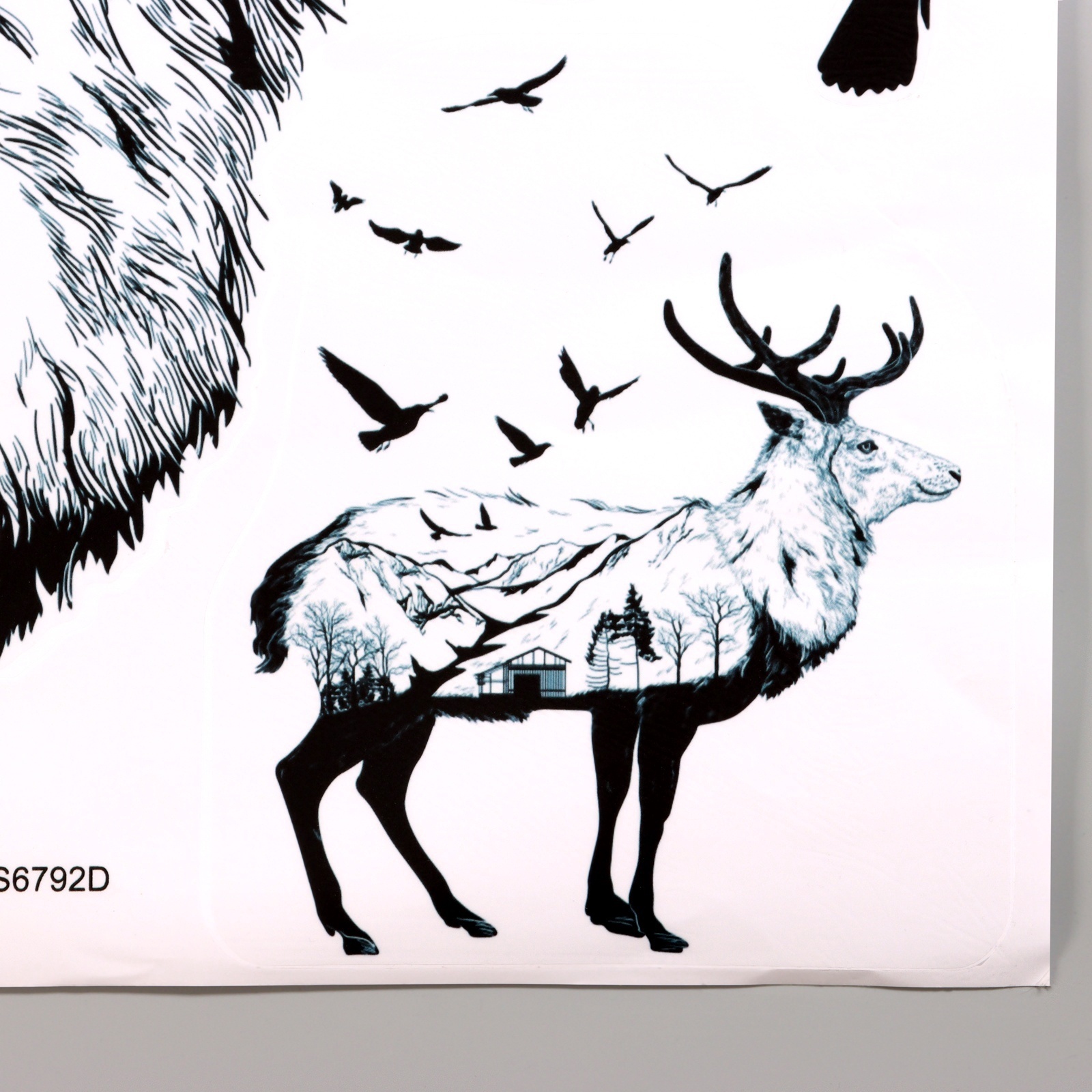 Интерьерная наклейка 3д take it easy «лось», 90 60 см. Самоклеющиеся 3D панели станут отличным вариантом в оформлении интерьера дома, делая его веселее. Панели просты в использовании: достаточно просто удалить защитный слой на обратной стороне и ровно прижать её к поверхности. Главное в этом процессе не допустить образования воздушных пузырей. Для этого нужно будет прикатать поверхность пластиковым шпателем, выдавливая воздух изнутри. Правила поклейки: Основание должно быть чистым, ровным и гладким. Перед работой нужно вымыть и обезжирить предполагаемое место нанесения.Нельзя производить поклейку на стыках плитки, и других неровностях. В этих местах панели быстро придут в негодность.Оптимальным основанием для поклейки являются лакированные и глянцевые поверхности, ламинат, крупная плитка или керамогранит. Линолеум лучше не использовать в качестве основания, так как он имеет мягкую поверхность из-за подложки и будет прогибаться при нагрузке.Тематика:3D-эффект|Тематика:Животный мир|Тематика праздника:Универсальная тематика|Материал:ПВХ|Вид наклейки:Интерьерная|Страна:Китай  развернуть описание ▼
