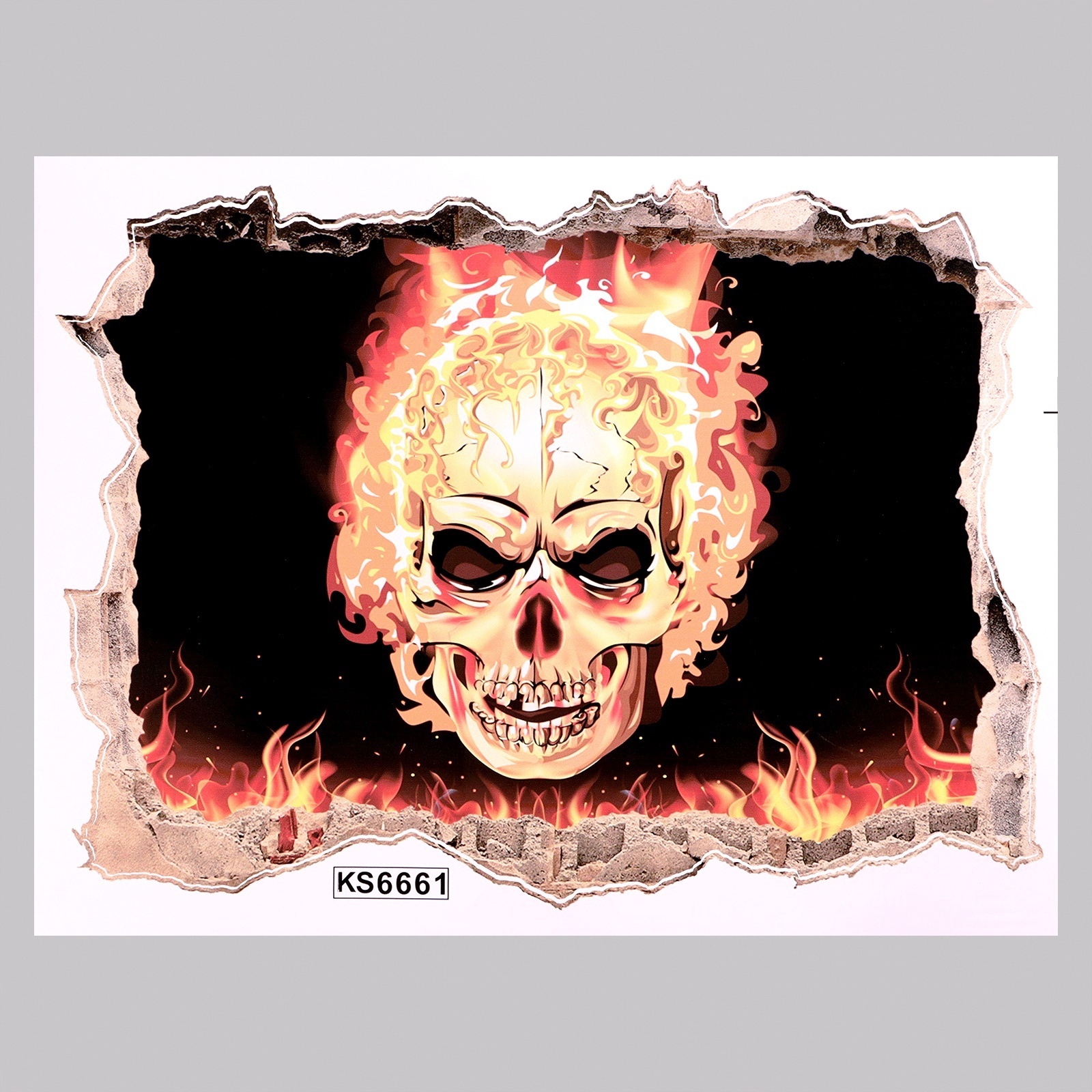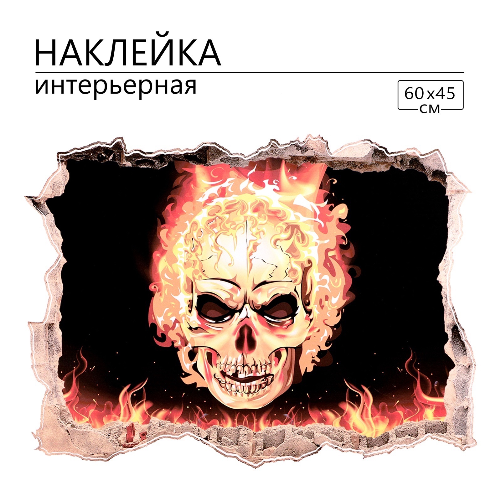 Интерьерная наклейка 3д take it easy «огненный череп», 60 45 см. Самоклеющиеся 3D панели станут отличным вариантом в оформлении интерьера дома, делая его веселее. Панели просты в использовании: достаточно просто удалить защитный слой на обратной стороне и ровно прижать её к поверхности. Главное в этом процессе не допустить образования воздушных пузырей. Для этого нужно будет прикатать поверхность пластиковым шпателем, выдавливая воздух изнутри. Правила поклейки: Основание должно быть чистым, ровным и гладким. Перед работой нужно вымыть и обезжирить предполагаемое место нанесения.Нельзя производить поклейку на стыках плитки, и других неровностях. В этих местах панели быстро придут в негодность.Оптимальным основанием для поклейки являются лакированные и глянцевые поверхности, ламинат, крупная плитка или керамогранит. Линолеум лучше не использовать в качестве основания, так как он имеет мягкую поверхность из-за подложки и будет прогибаться при нагрузке.Тематика:3D-эффект|Тематика:Хеллоуин|Тематика:Черепа, скелеты|Тематика праздника:Хэллоуин|Материал:ПВХ|Вид наклейки:Интерьерная|Страна:Китай  развернуть описание ▼