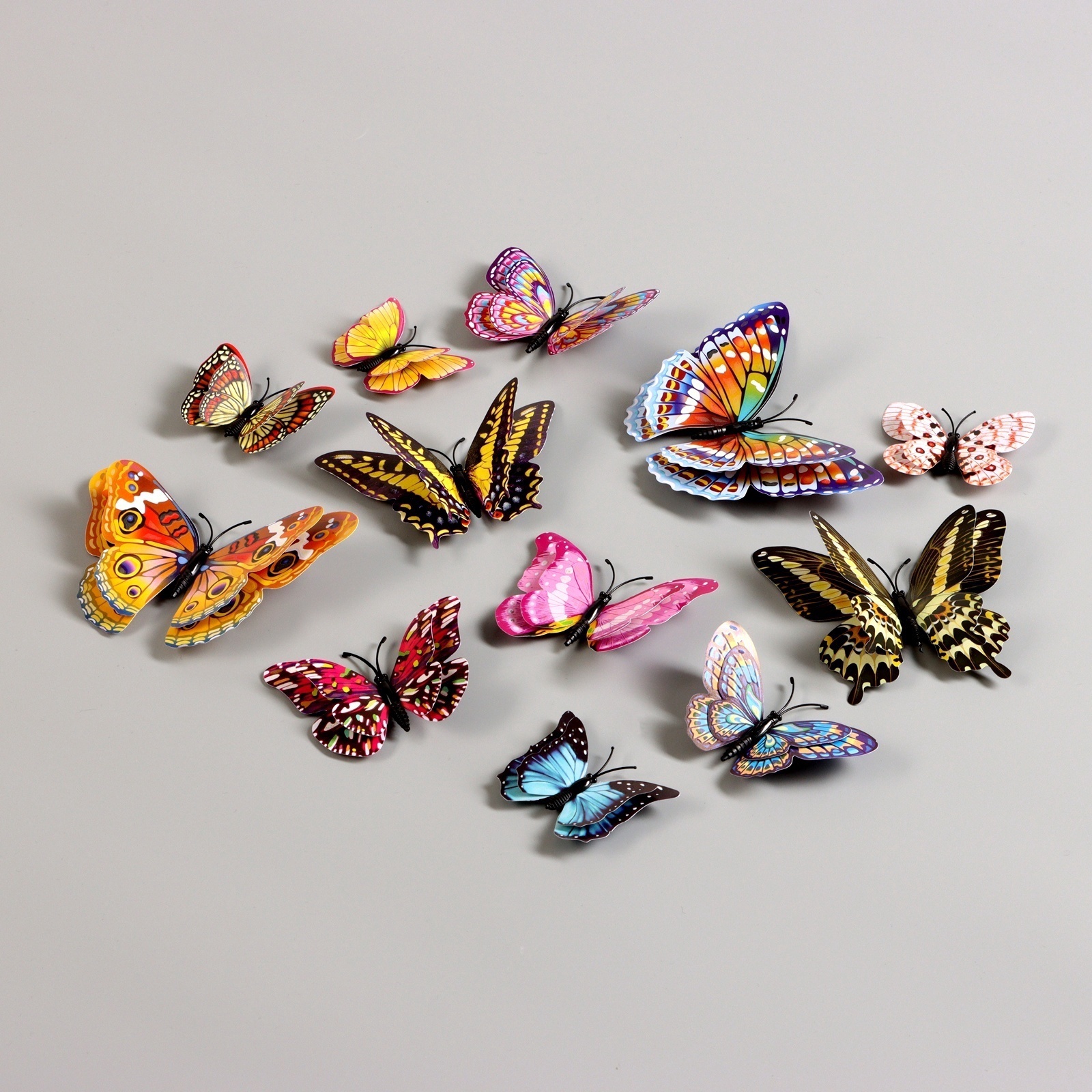 Набор наклеек интерьерных take it easy «бабочки», светящиеся в темноте. Самоклеющиеся 3D панели станут отличным вариантом в оформлении интерьера дома, делая его веселее. Панели просты в использовании: достаточно просто удалить защитный слой на обратной стороне и ровно прижать её к поверхности. Главное в этом процессе не допустить образования воздушных пузырей. Для этого нужно будет прикатать поверхность пластиковым шпателем, выдавливая воздух изнутри. Правила поклейки: Основание должно быть чистым, ровным и гладким. Перед работой нужно вымыть и обезжирить предполагаемое место нанесения.Нельзя производить поклейку на стыках плитки, и других неровностях. В этих местах панели быстро придут в негодность.Оптимальным основанием для поклейки являются лакированные и глянцевые поверхности, ламинат, крупная плитка или керамогранит. Линолеум лучше не использовать в качестве основания, так как он имеет мягкую поверхность из-за подложки и будет прогибаться при нагрузке.Цвет:Разноцветный|Тематика:Бабочки|Тематика:Насекомые|Тематика:3D-эффект|Тематика праздника:Универсальная тематика|Тематика праздника:8 Марта|Материал:ПВХ|Вид наклейки:Интерьерная|Страна:Китай  развернуть описание ▼
