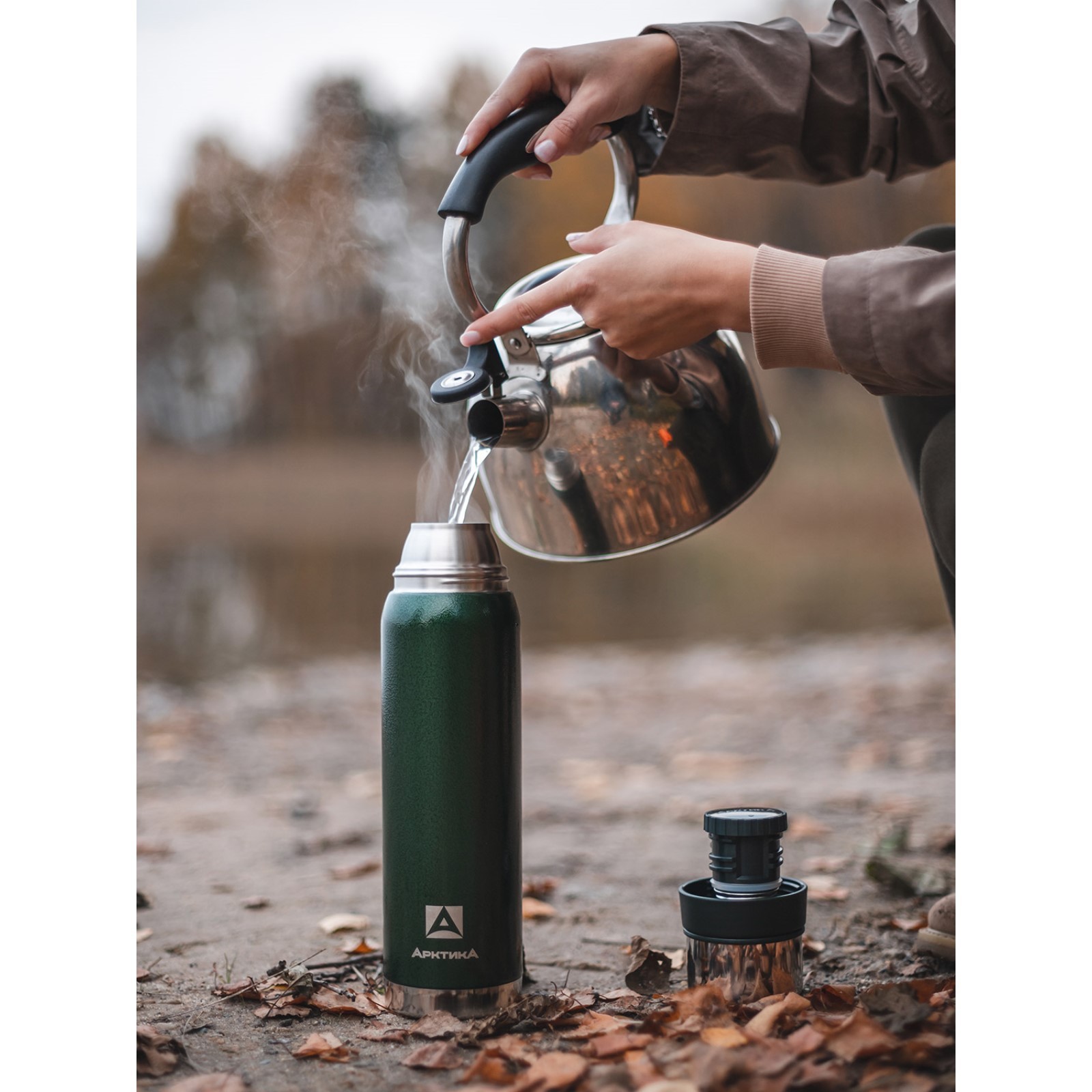 Термос "арктика", 1.2 л, с ситечком, сохраняет тепло 32 ч, зеленый