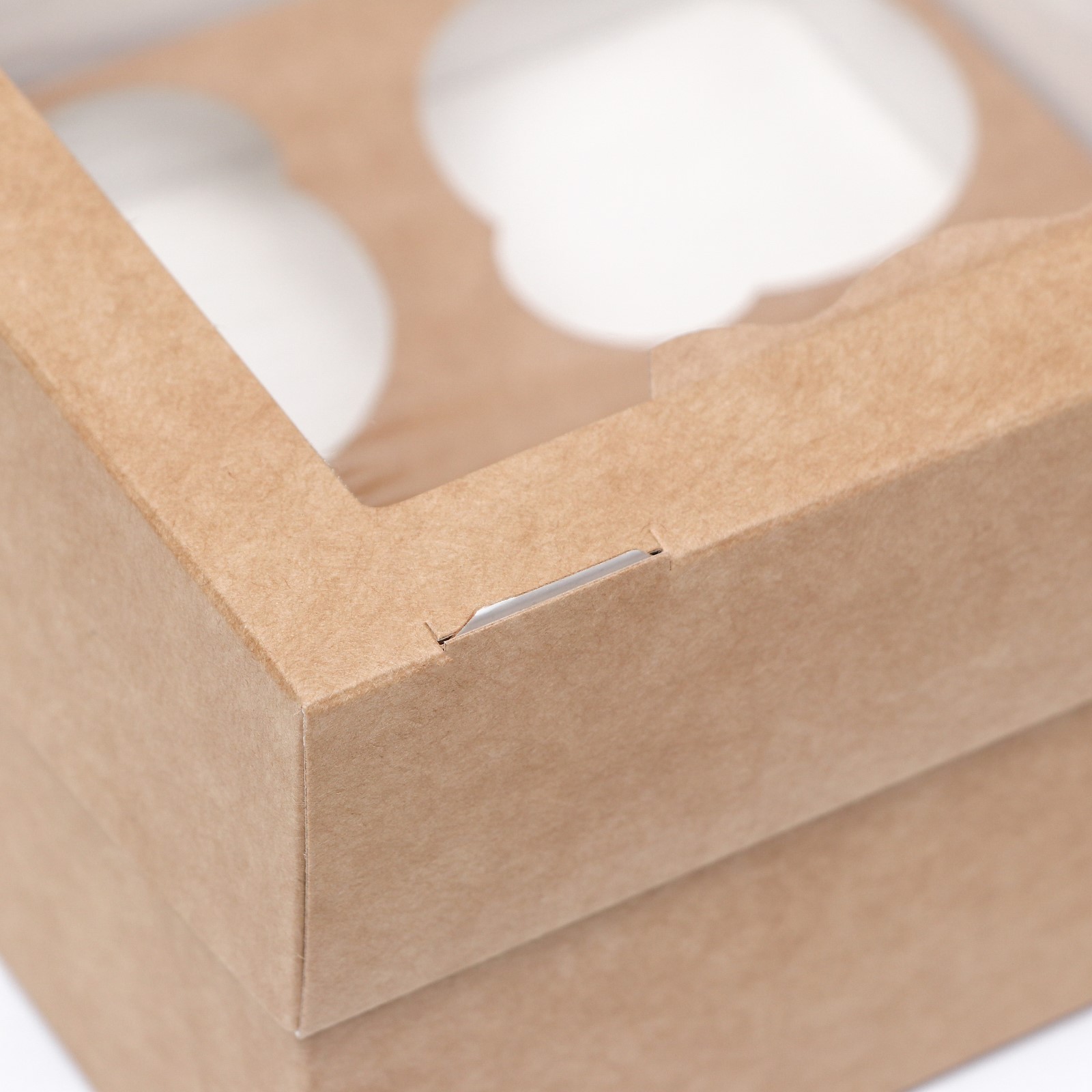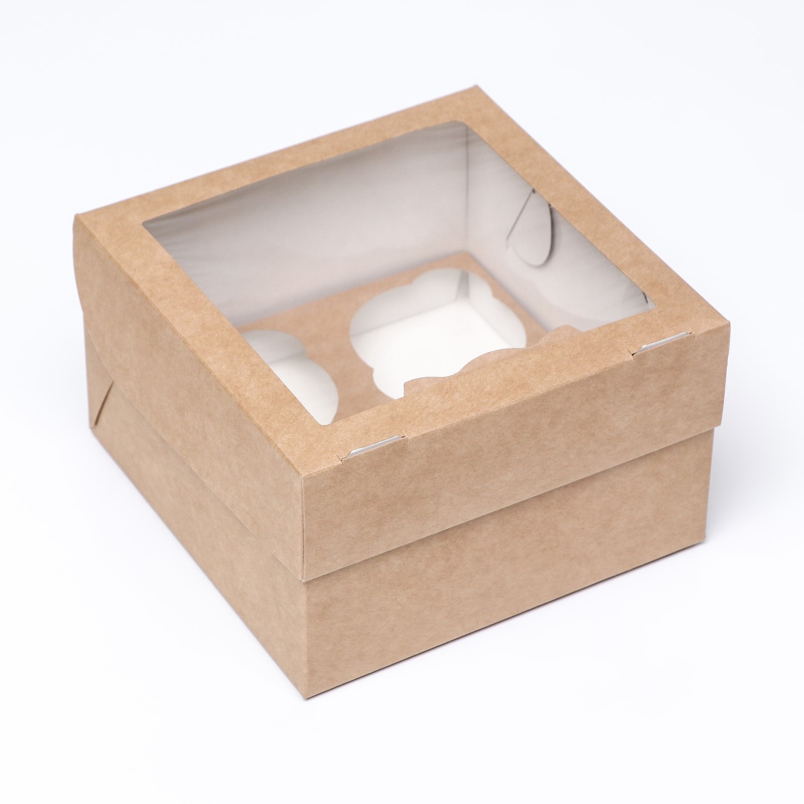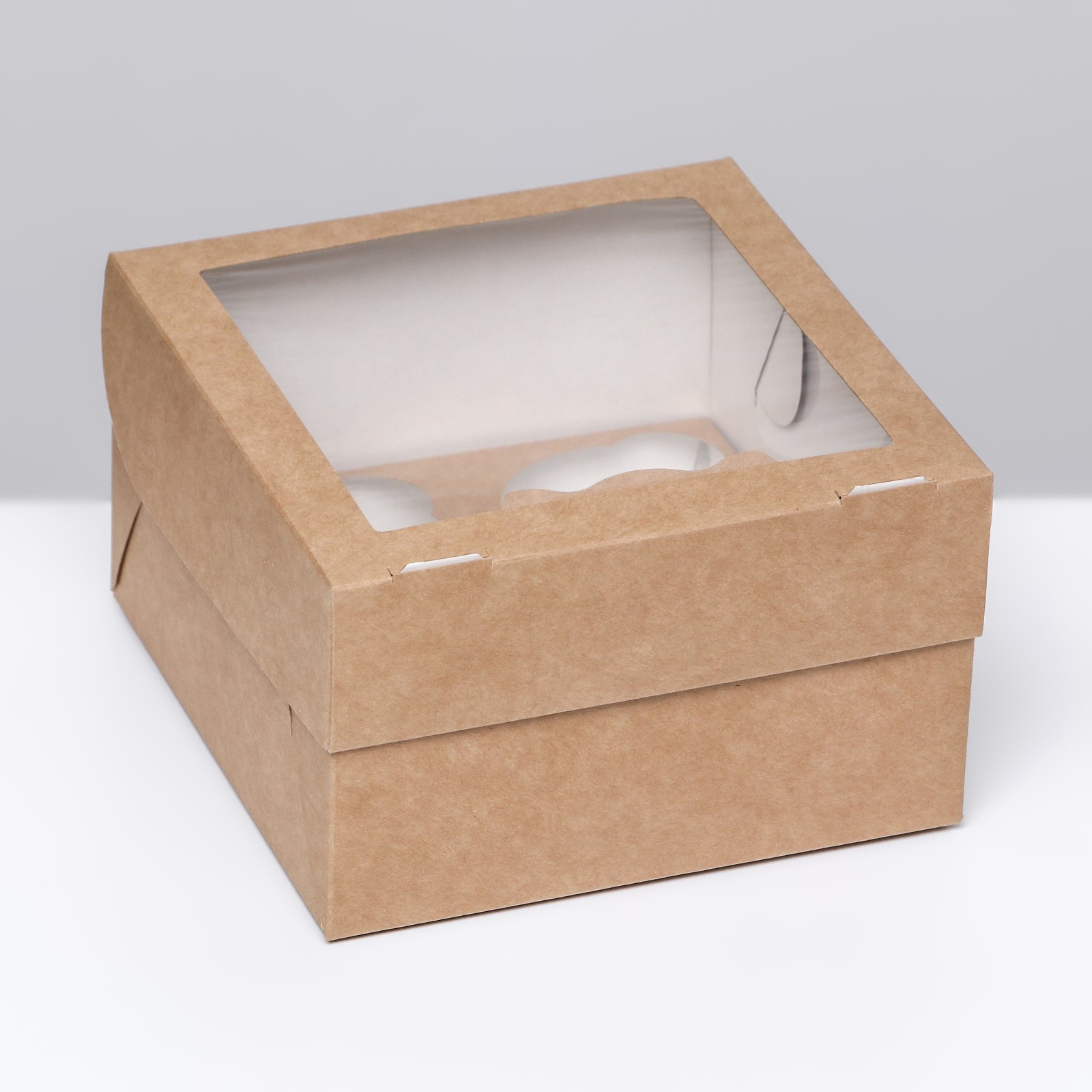 Коробка под 4 маффина с окном, крафт, 16 х 16 х 10 см