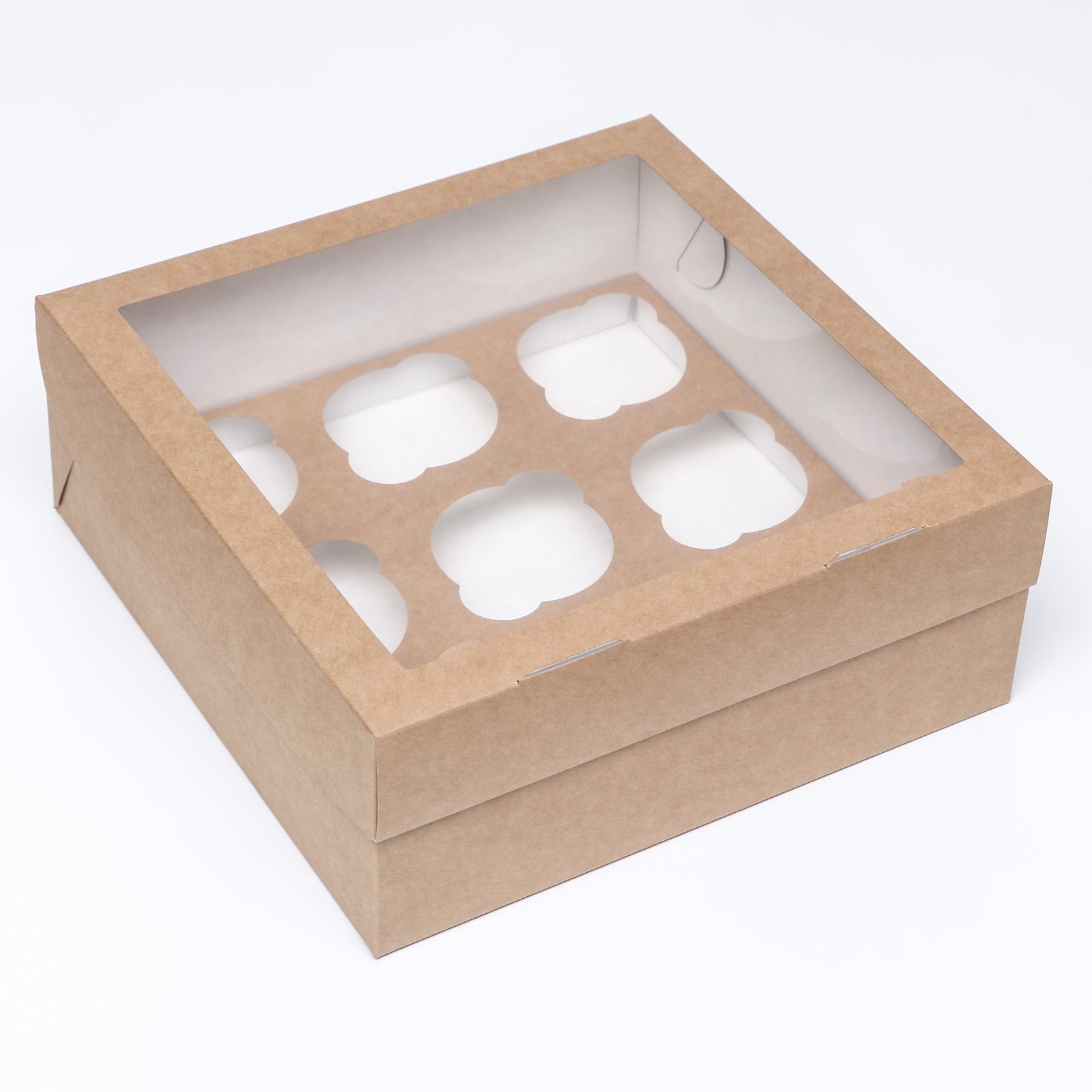 Коробка под 9 маффинов с окном, крафт, 25 х 25 х 10 см