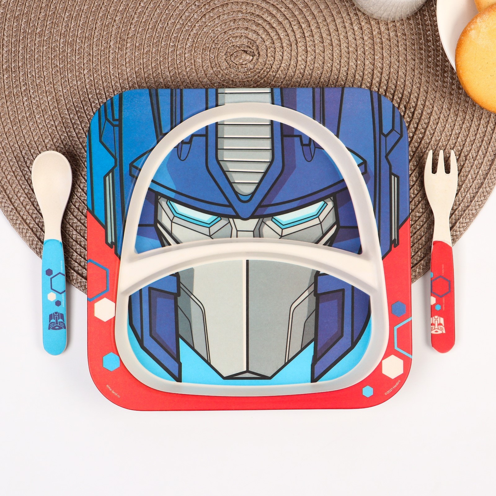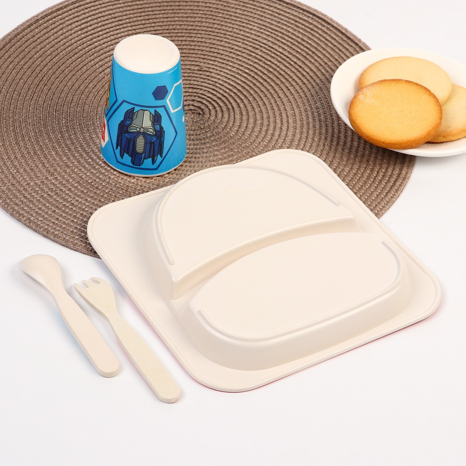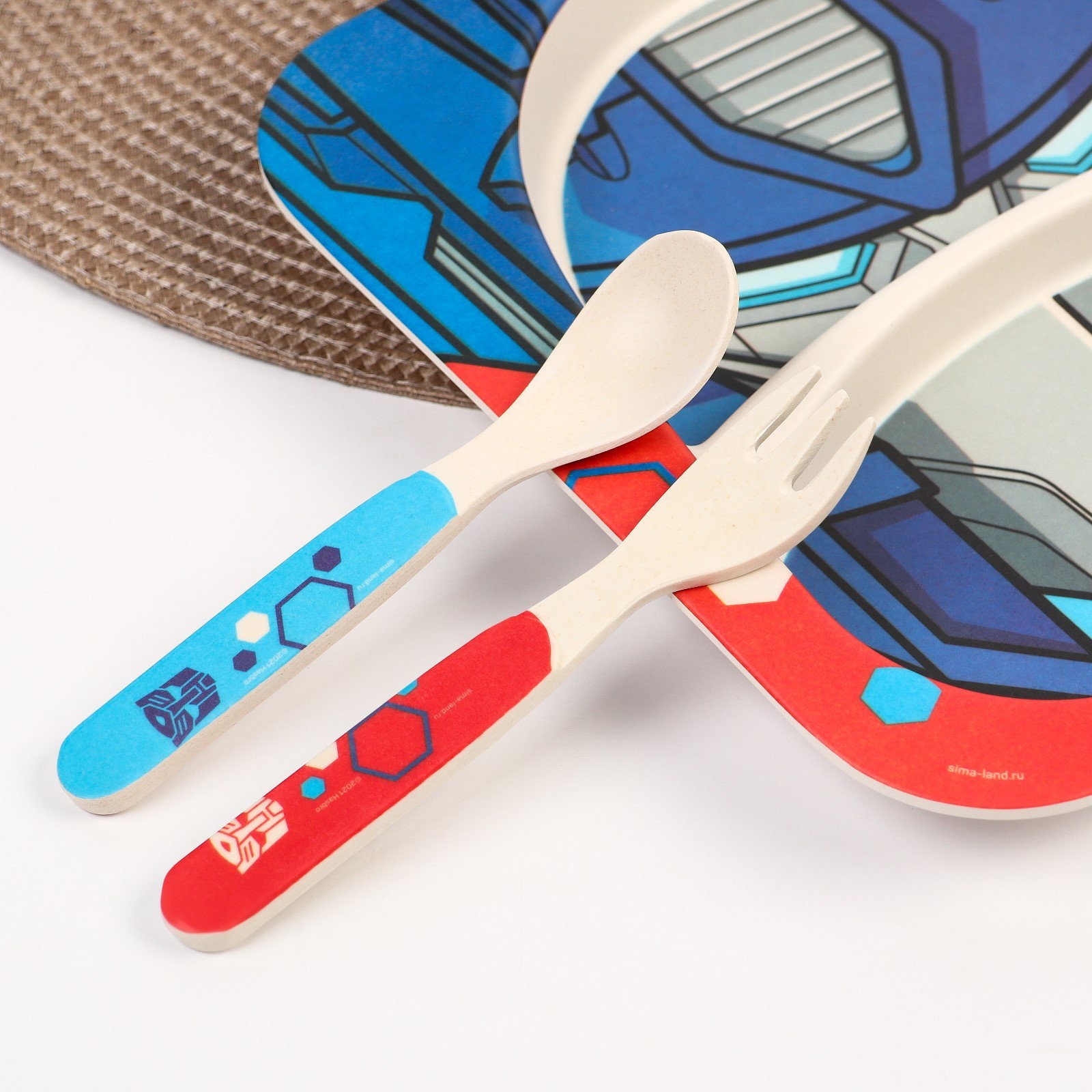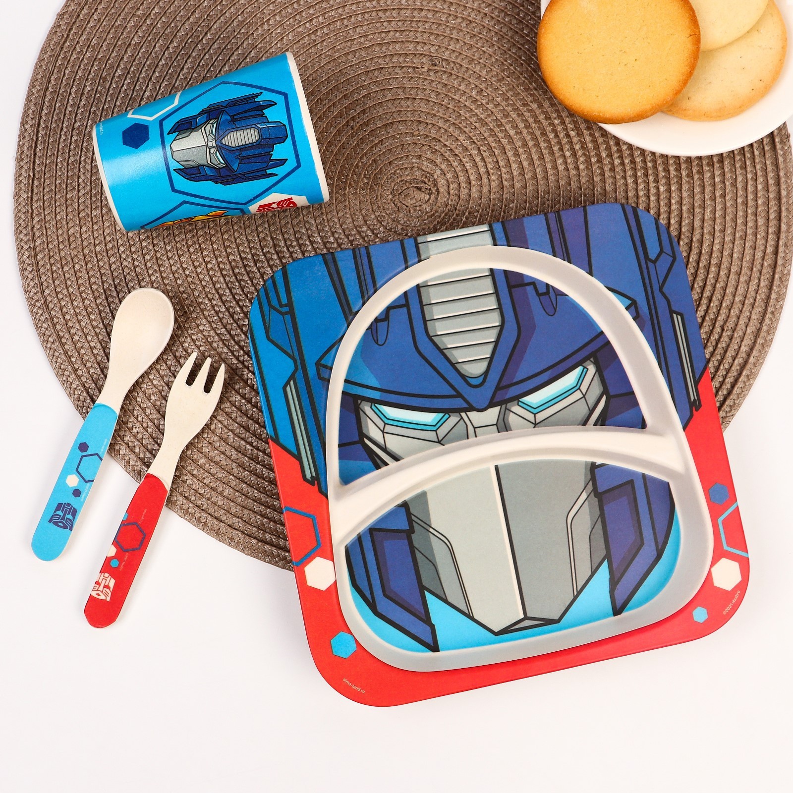 Набор детской бамбуковой посуды, 4 предмета: тарелка, вилка, ложка,стакан, трансформеры