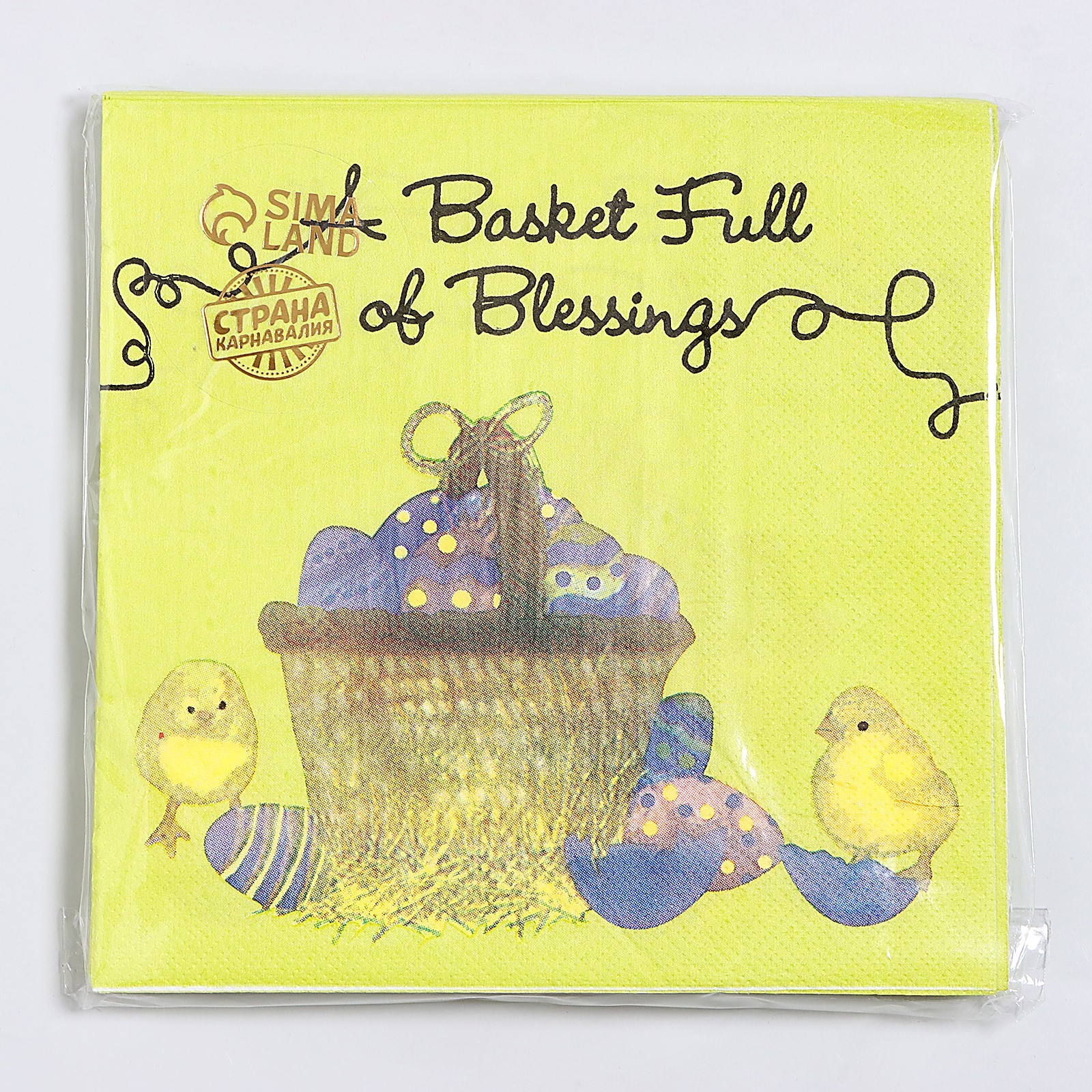 Салфетки бумажные «пасхальная корзина» с цыплятами, 33х33 см, набор 20 шт
