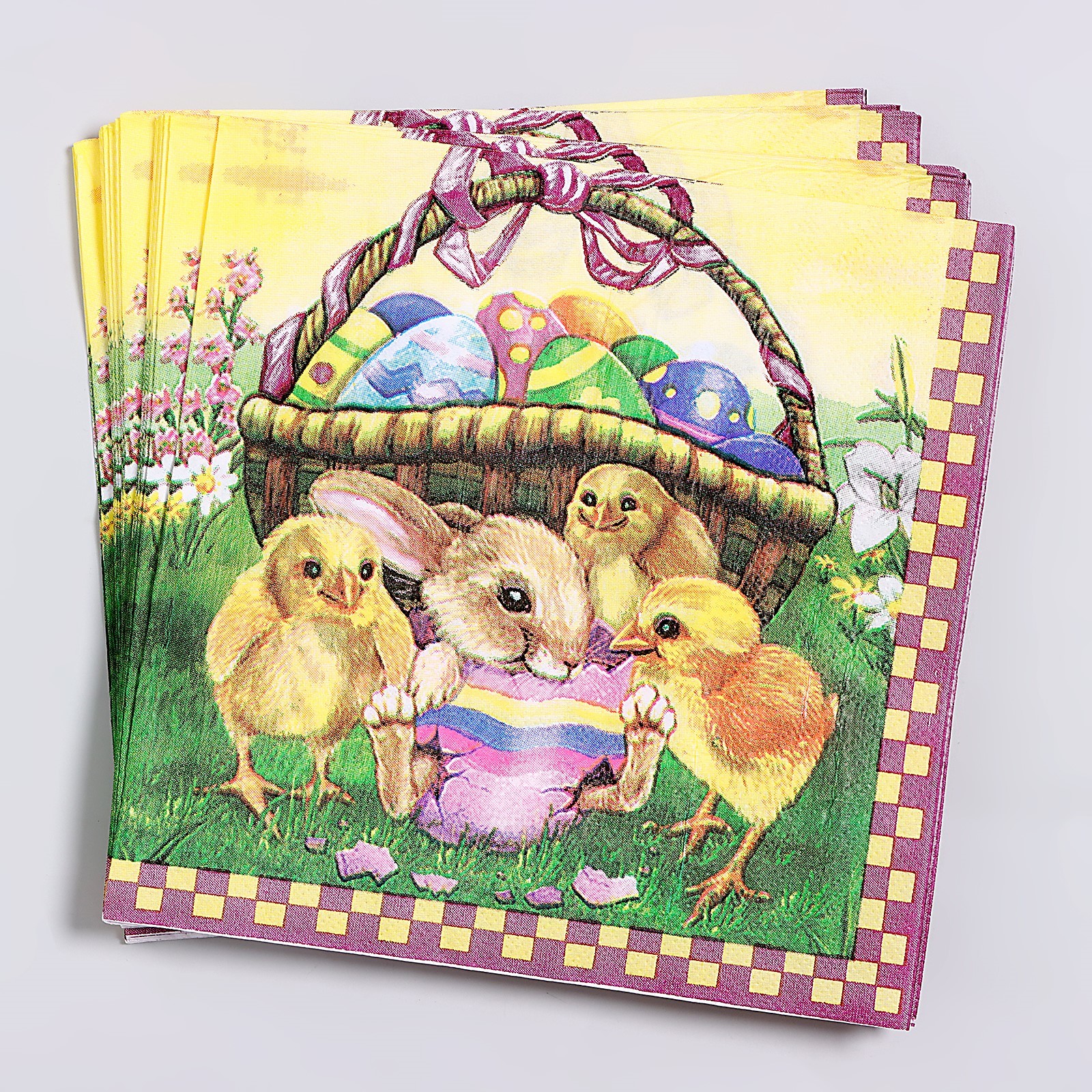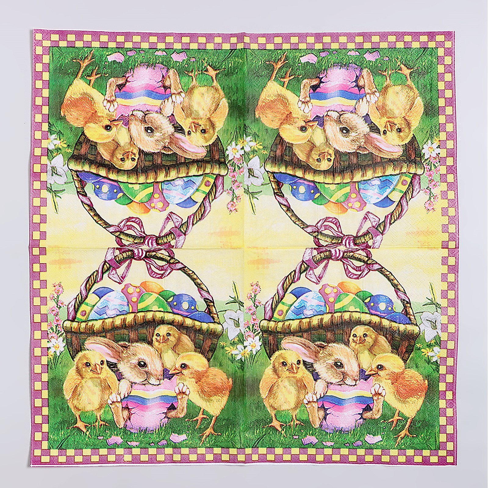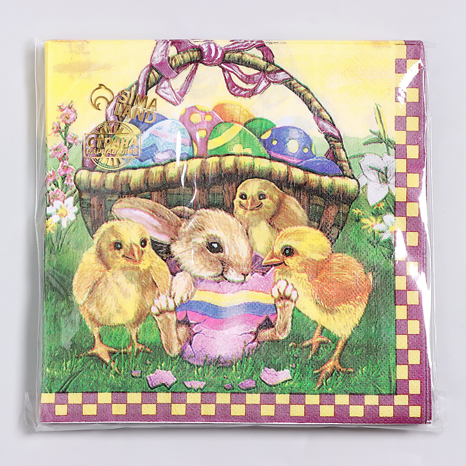 Салфетки бумажные «пасхальная корзина» 33х33 см, набор 20 шт