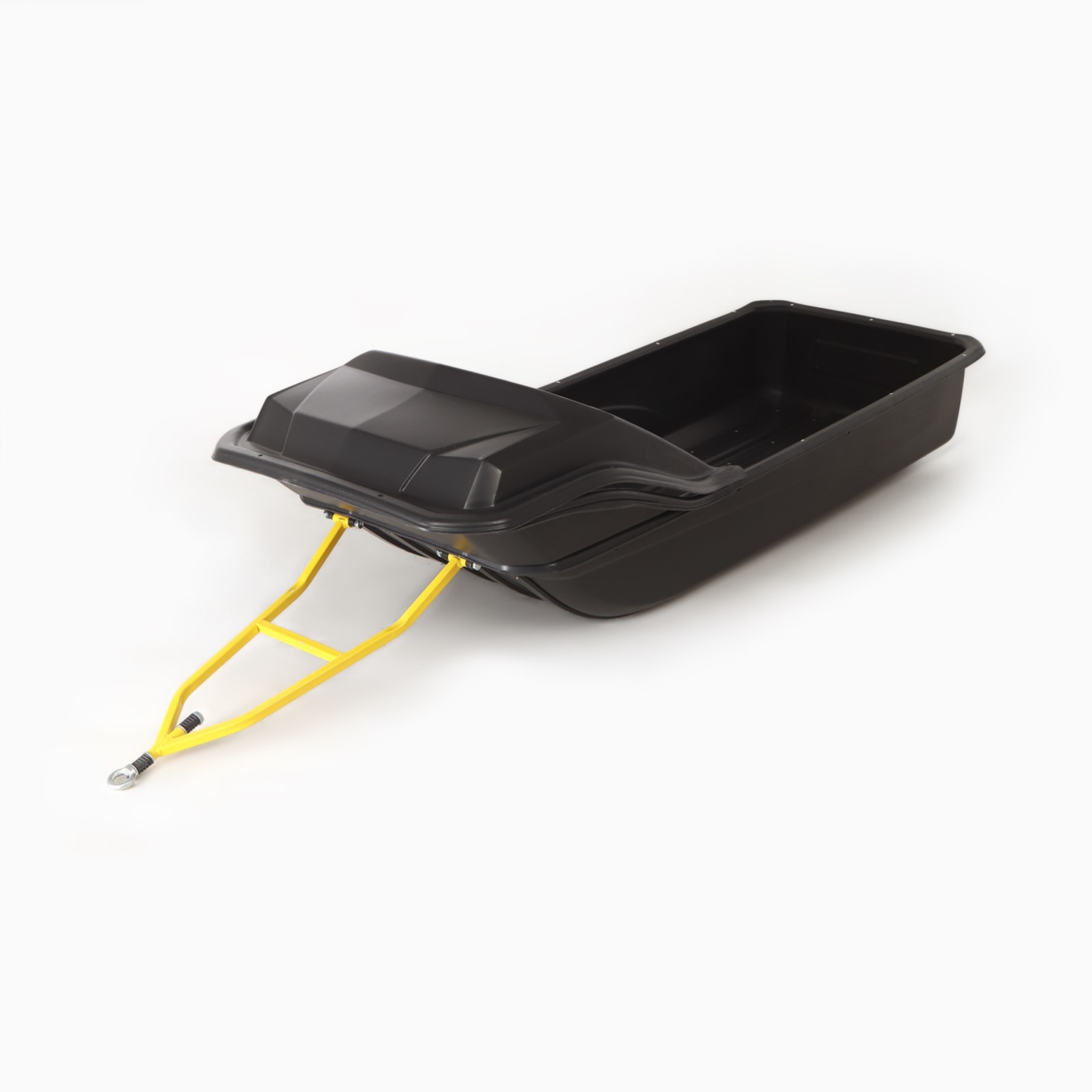 Сани волокуши для снегоходов и мотобуксировщиков. Укомплектованы универсальным сцепным устройством, дополнительно установлен отбойник снега, капот на отбойник (на капоте сделаны пять выемок под стаканчики и термос), дополнительно на днище установлены полозья (8 мм. ), сани предназначены для перевозки грузов методом буксировки. Вес перевозимого груза регламентирован правилами буксировки прицепов. Сани произведены из ПНД (полиэтилен низкого давления) выдерживают перепады температуры -60С до +60С. Благодаря наличию светостабилизирующей добавки материал стоек к ультрафиолетовому излучению.