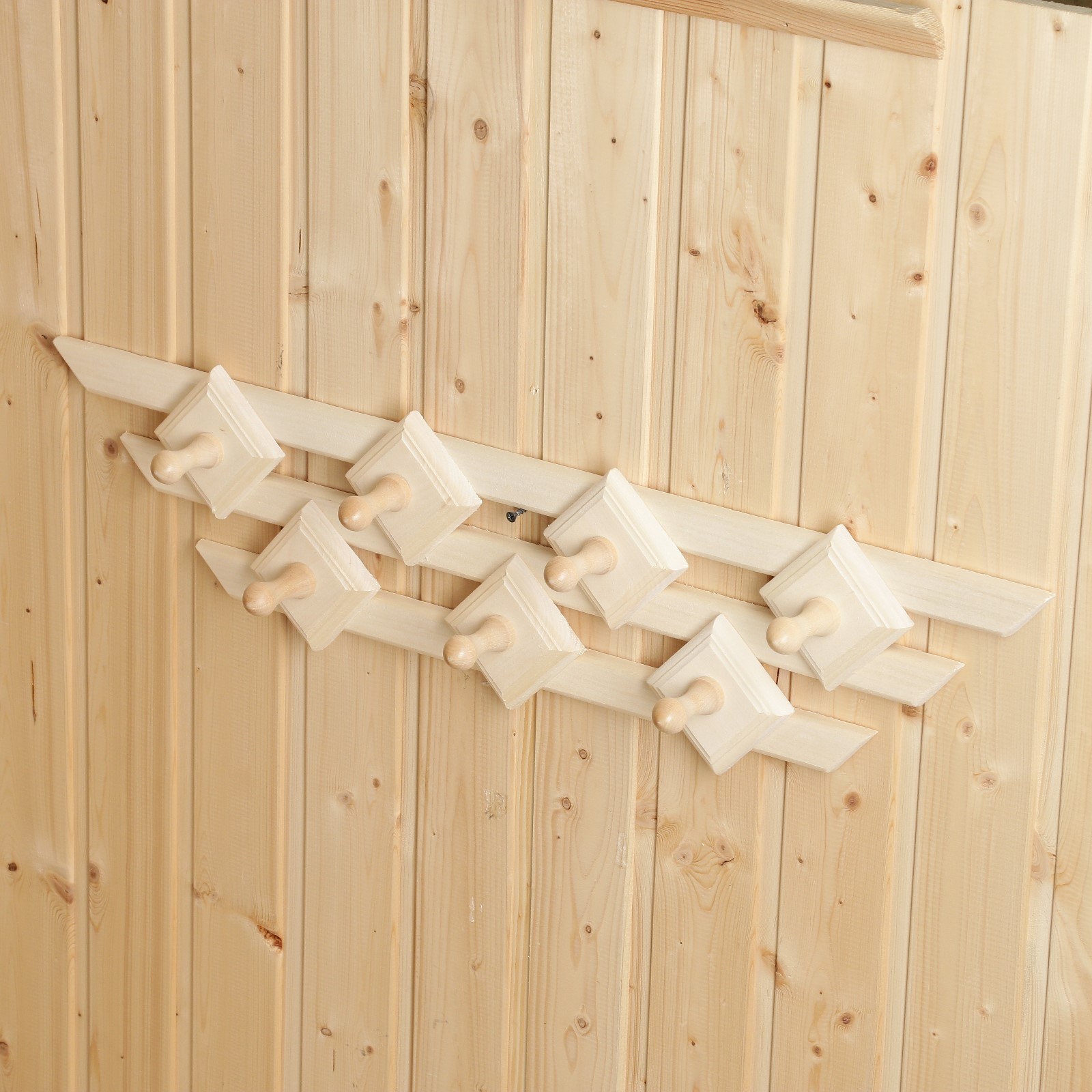 Вешалка для бани – это необходимый аксессуар, который позволяет удобно разместить одежду и полотенца. Она изготовлена из натуральных материалов и имеет несколько крючков для одежды. Вешалка легко монтируется на стену и не занимает много места.