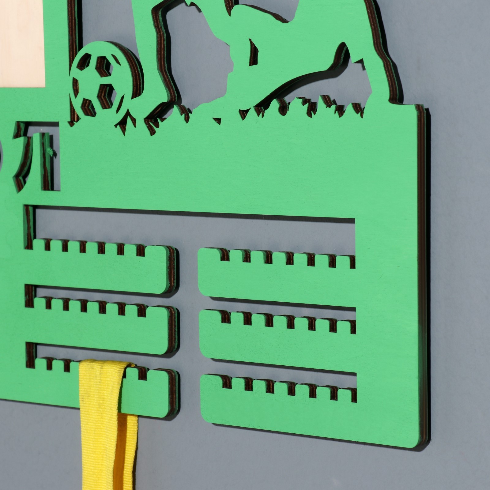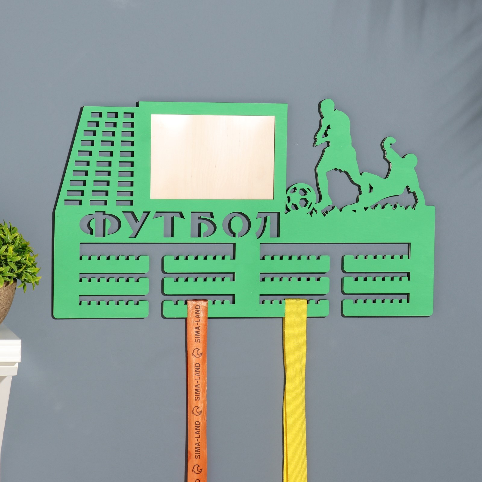 Медальница с фото "футбол" зелёный цвет, 47х27,5 см. Цвет: Зелёный Материал: Фанера Вид спорта: Футбол Особенность медальницы: Одноцветные Особенность медальницы: С фоторамкой Температурное ограничение: Нет Особенность фоторамки: Медальница  развернуть описание ▼