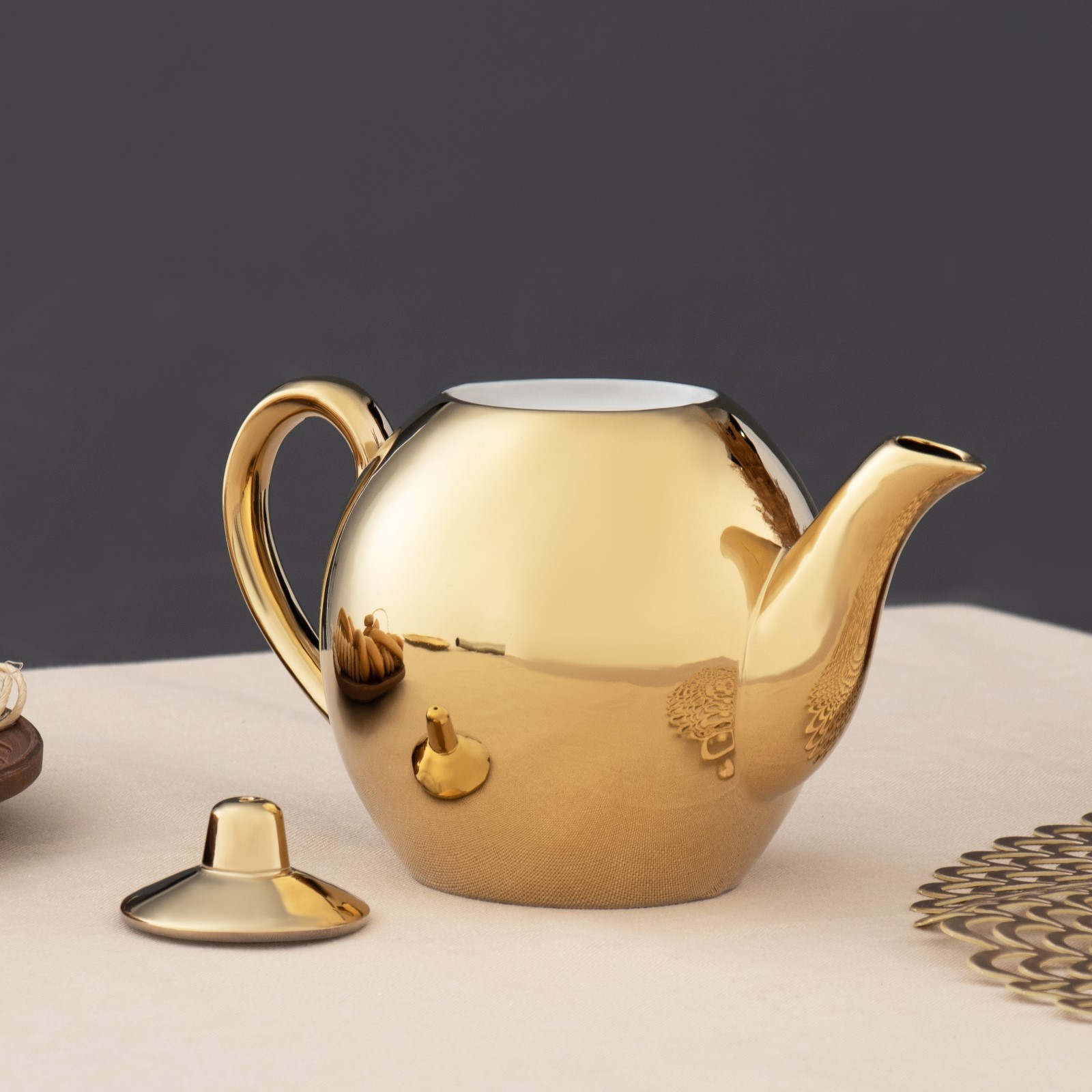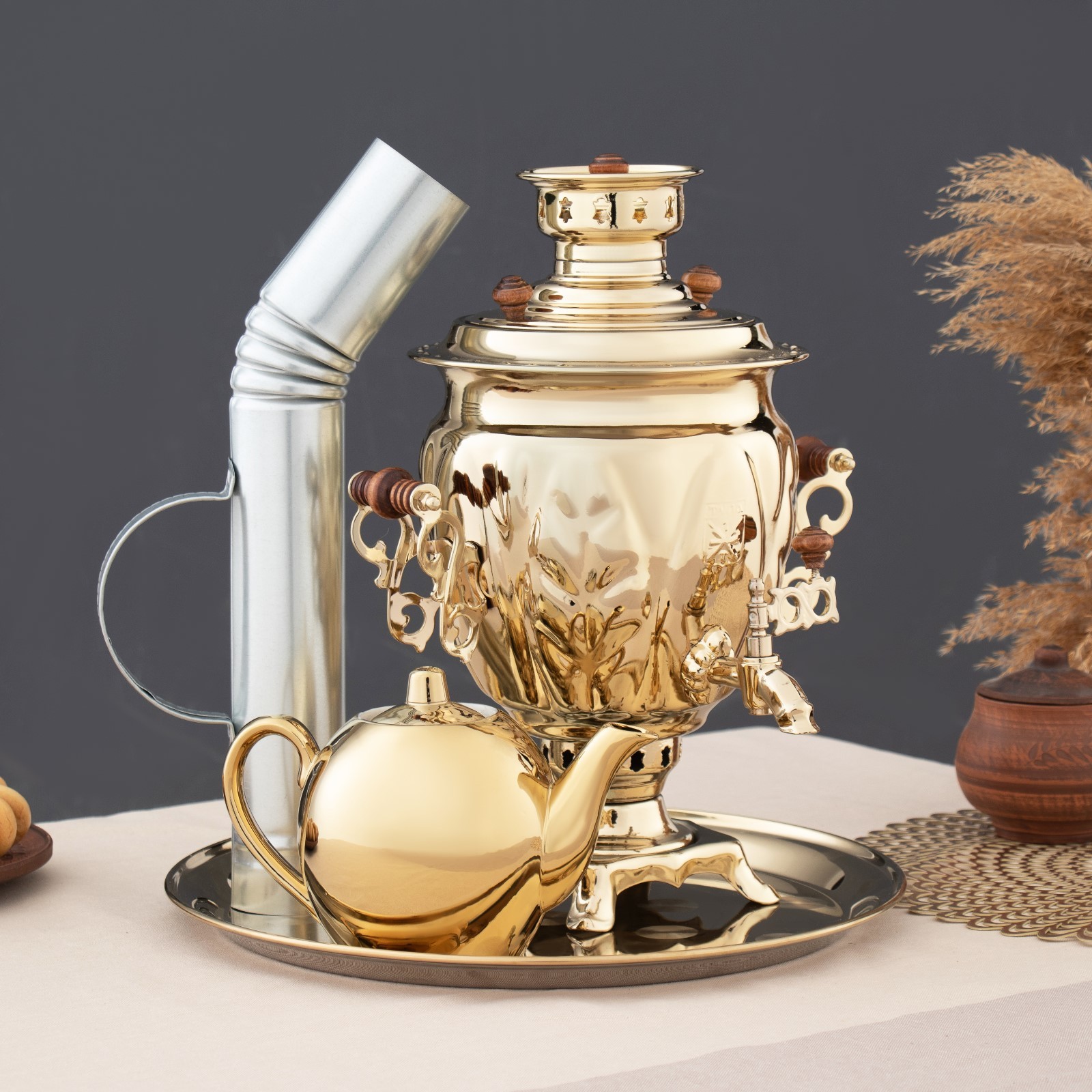 Набор "золото", желудь, жаровой 2,5 л, заварочный чайник 0,7 л, поднос