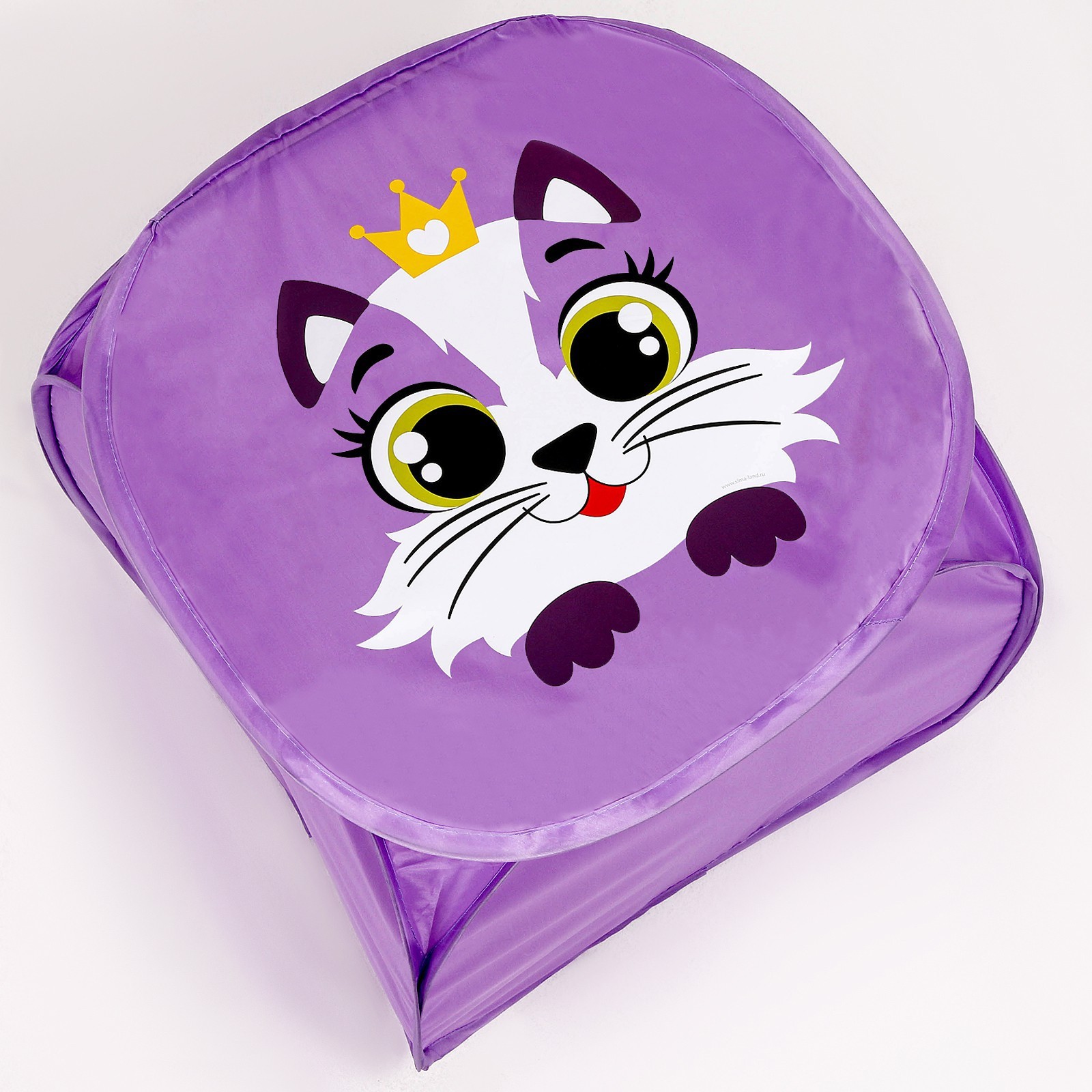 Корзина для хранения игрушкек с крышкой «котик», 42 х 42 х 42 см, фиолетовая.   Корзина предназначена для хранения игрушек и других важных вещей малыша. Она поможет поддерживать чистоту в доме и приучить ребёнка к порядку. Прочные и лёгкие материалы делают предмет незаменимым в детской комнате.  Такая корзина пригодится в поездках: в ней будет удобно собрать любимые игрушки, с которыми чадо не может расстаться ни на минуту. Она компактна, но вместит всё необходимое, и вещи не рассыплются в дороге. Если изделие стало ненужно, его можно сложить, так оно займёт совсем немного места.  Цвет: Фиолетовый Цвет: Розовый Форма: Квадратная Ширина, см: 42 Высота, см: 42 Глубина, см: 42 Тематика: Детская Тематика: Животный мир Крышка: Да Материал: Текстиль Основной материал: Текстиль Форма: Квадрат, куб  развернуть описание ▼