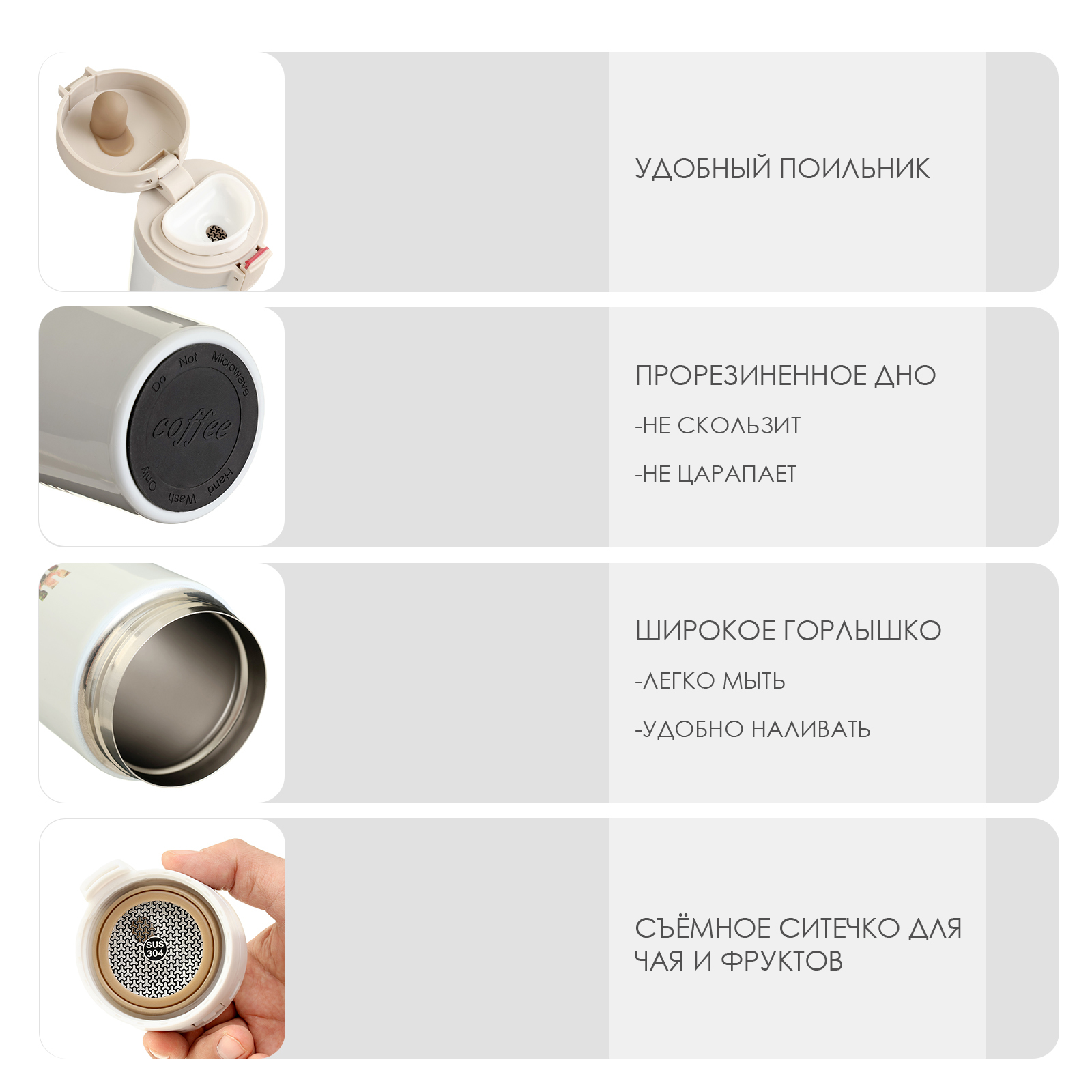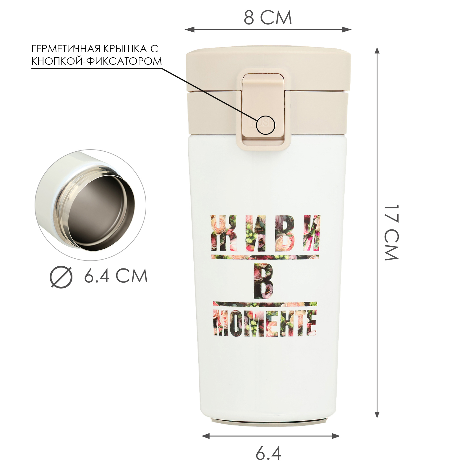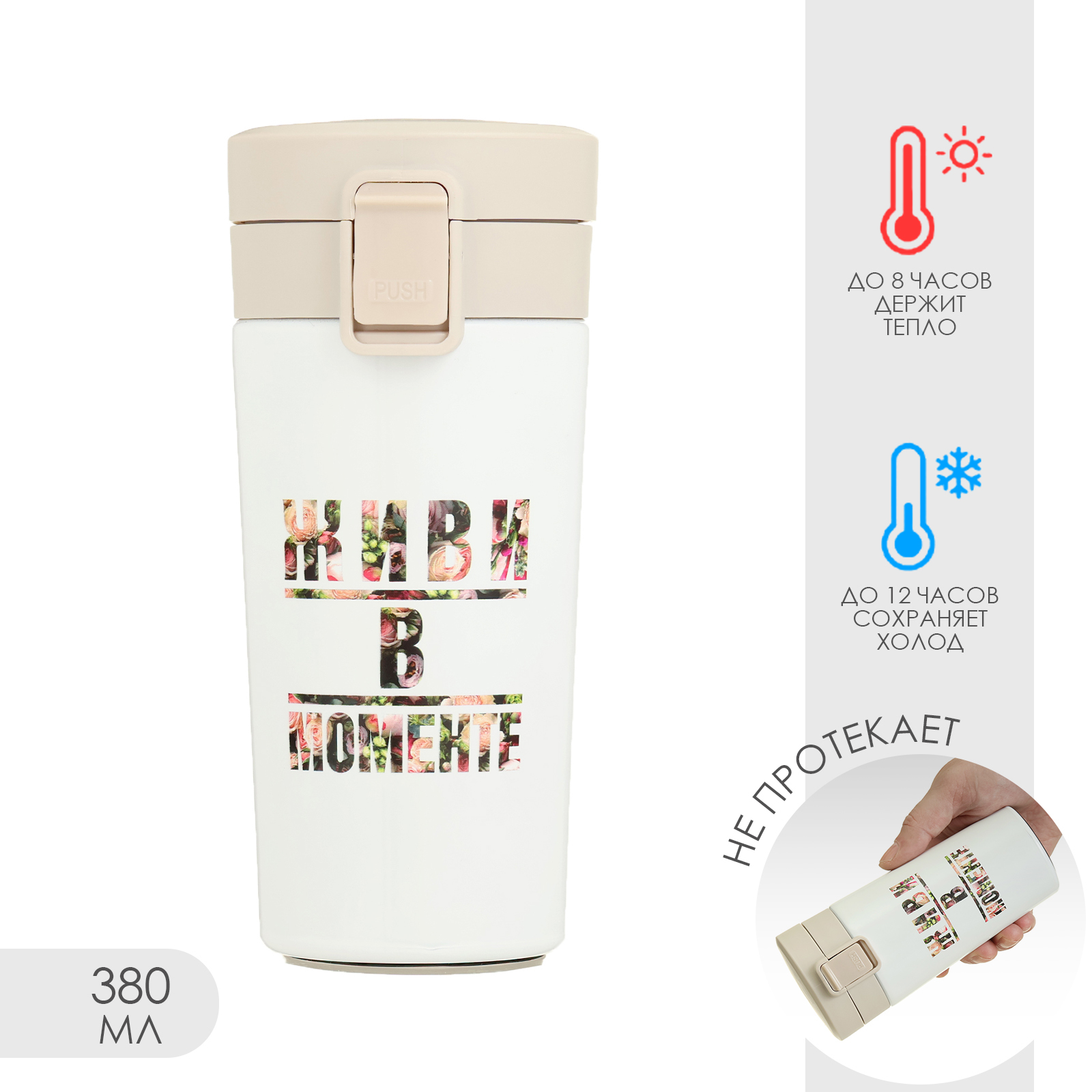 Термокружка, 380 мл, Style "живи в моменте", сохраняет тепло до 8 ч