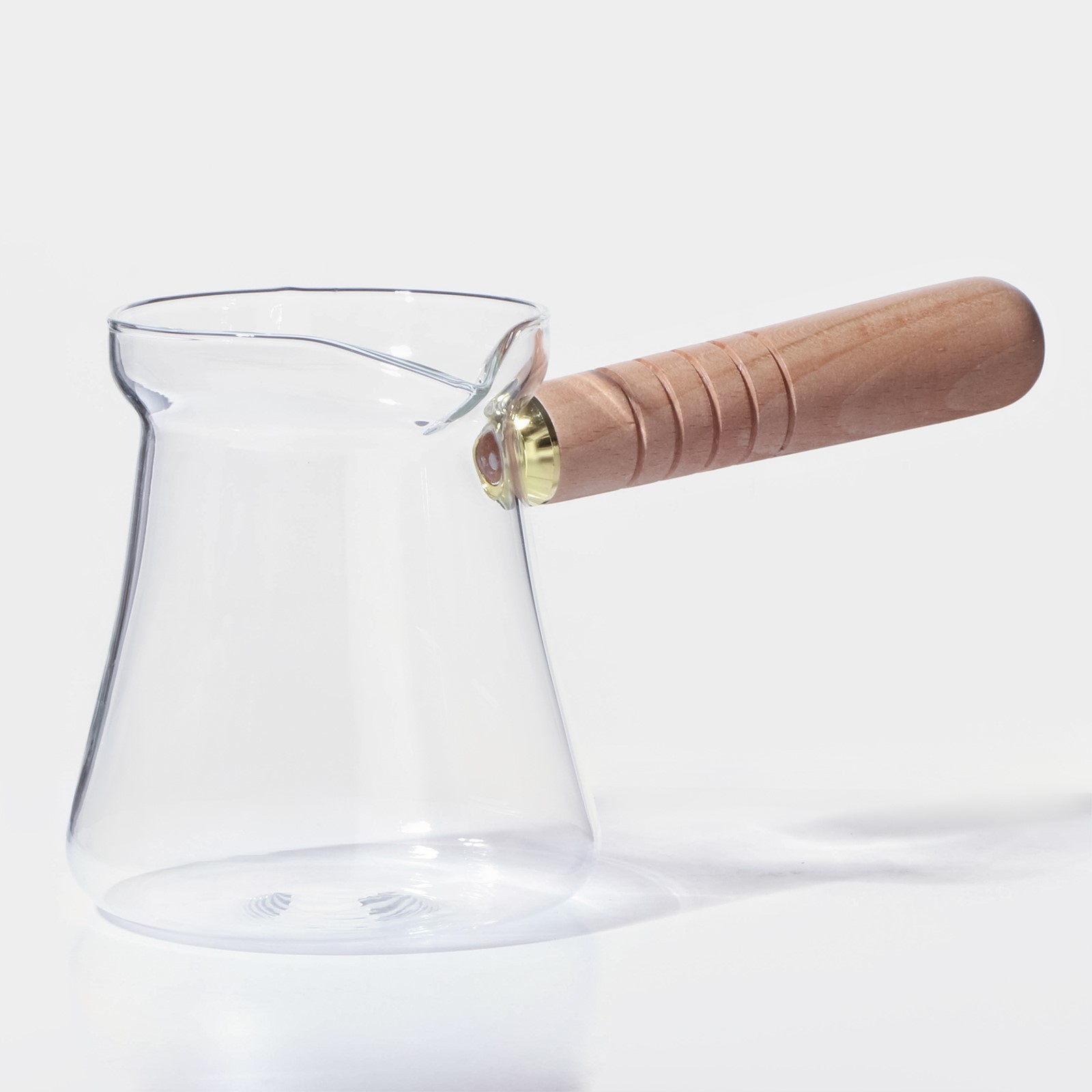 Турка стеклянная «арабика», 300 мл, 18,5x9x10 см, деревянная ручка