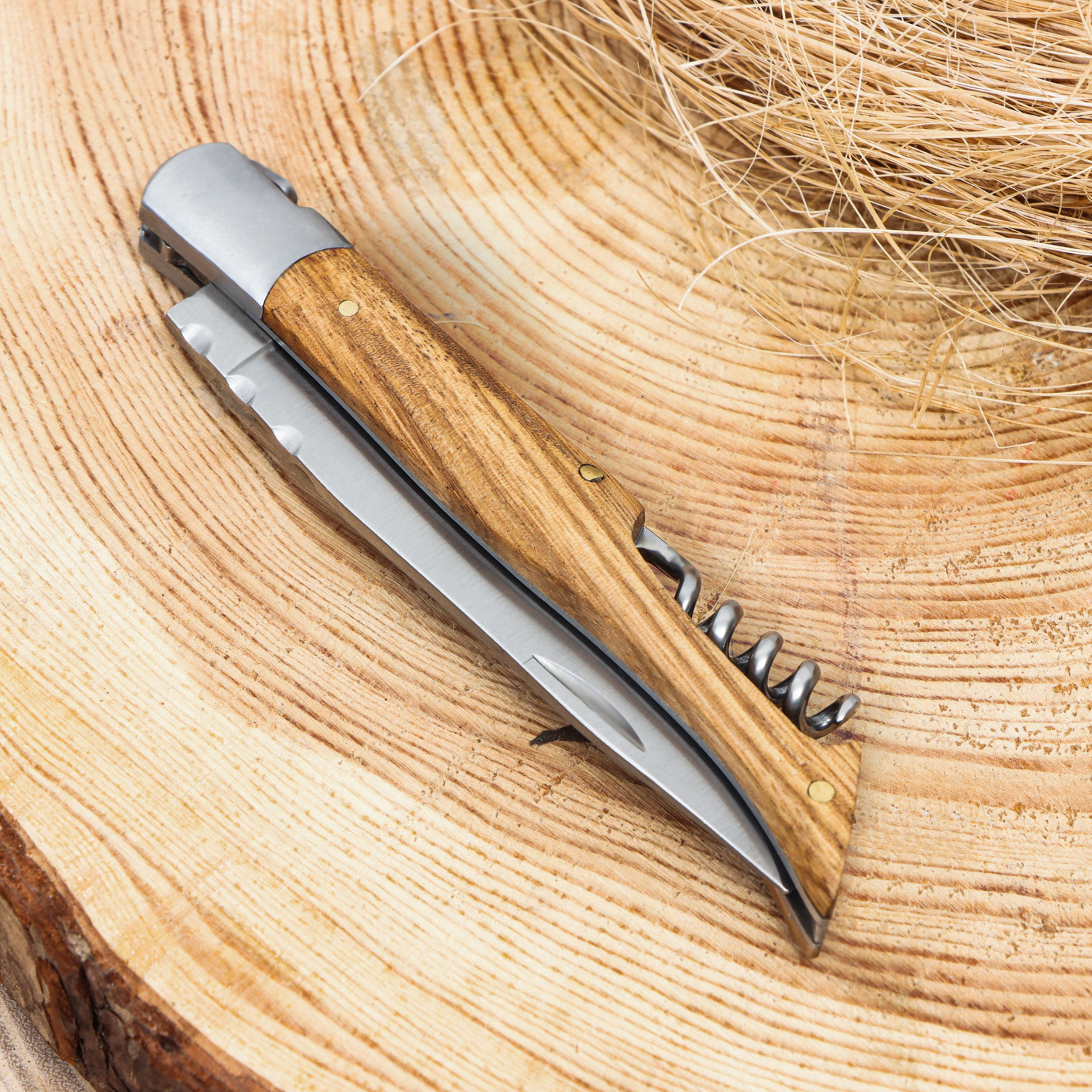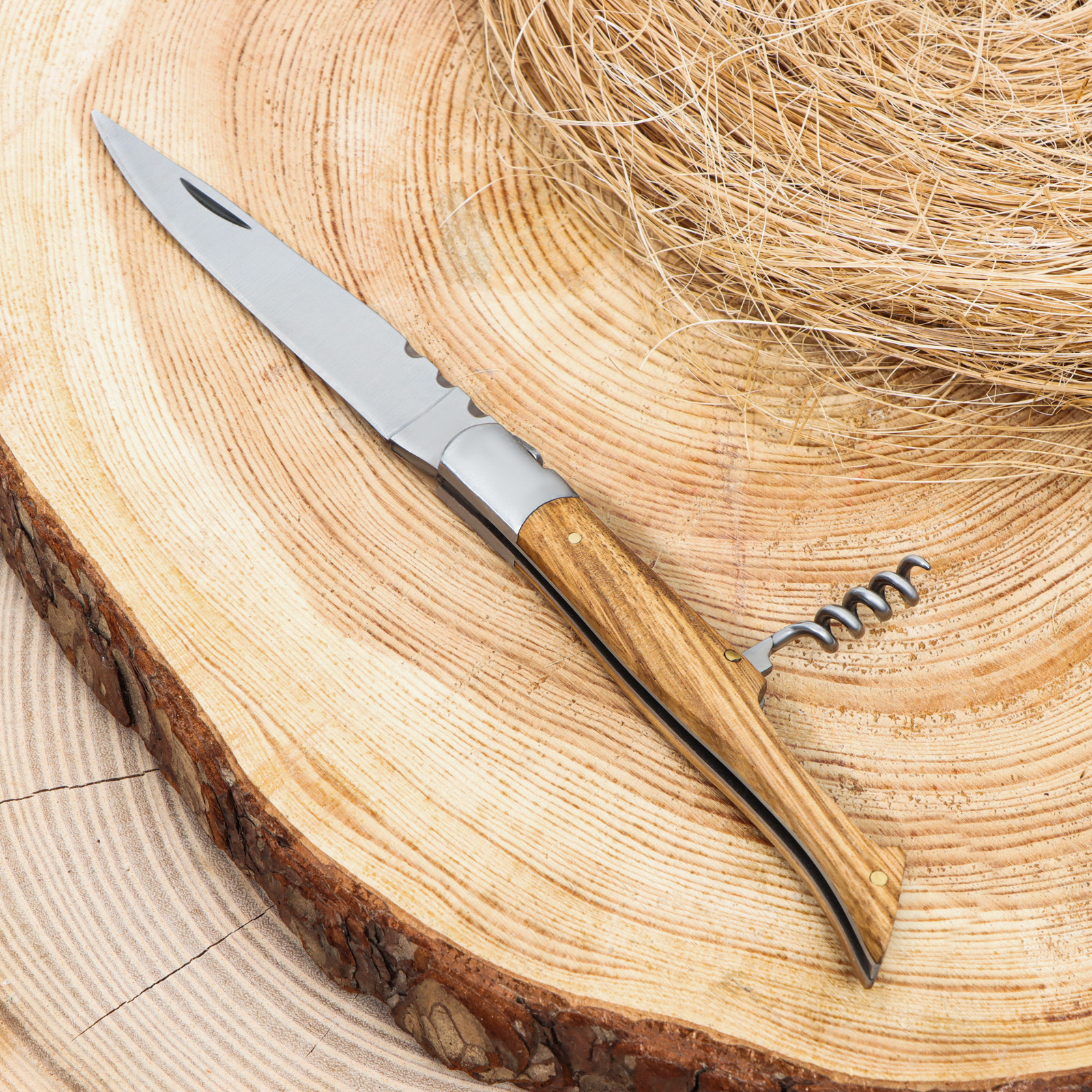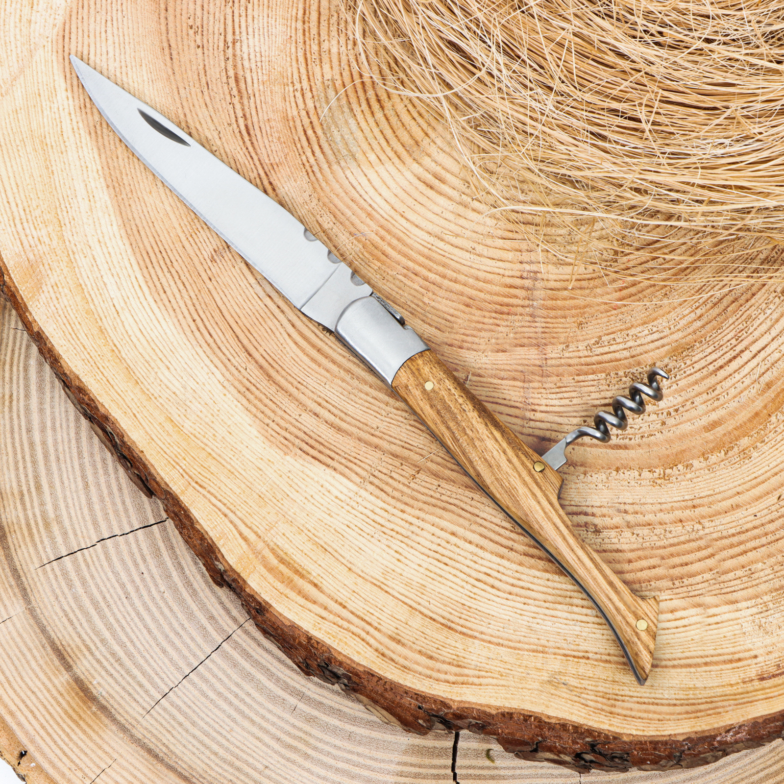 Нож складной "плющ" 21см, клинок 95мм/3мм, со штопором, рукоять дерево