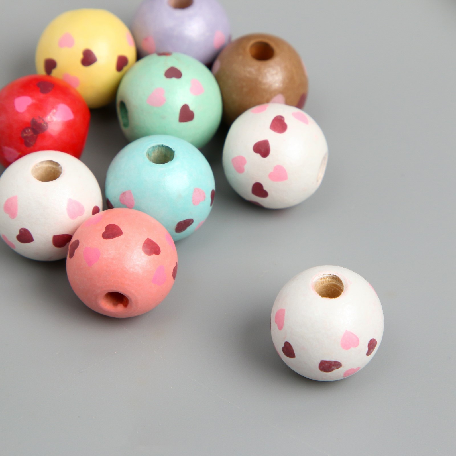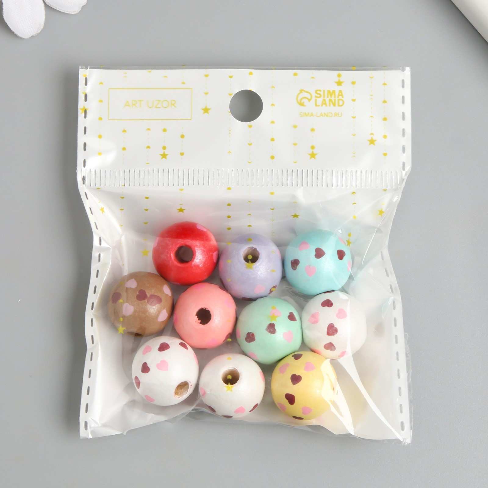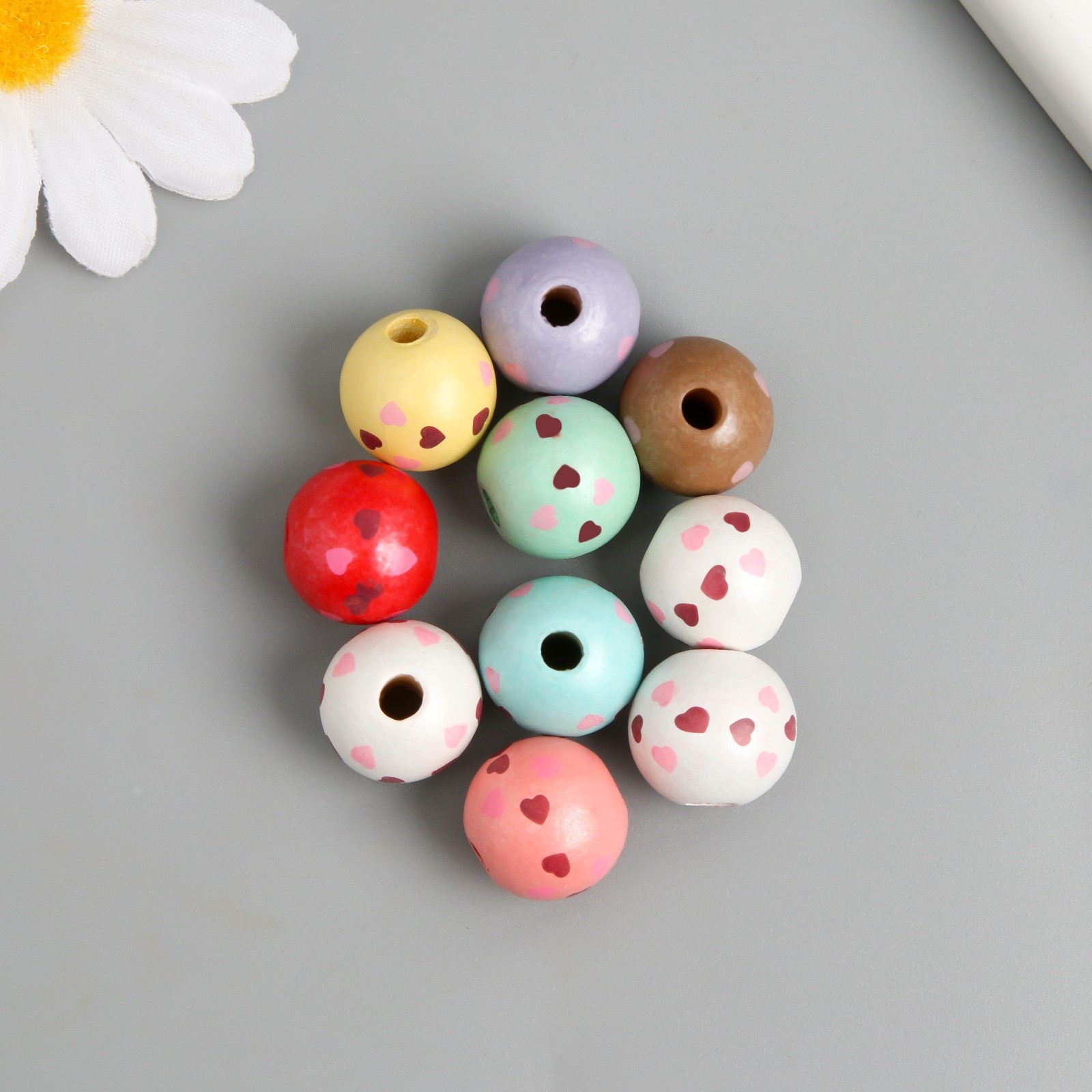 Набор бусин для рукоделия и плетения «арт узор. сердечки на шариках», 10 шт., дерево, D=1.6 см