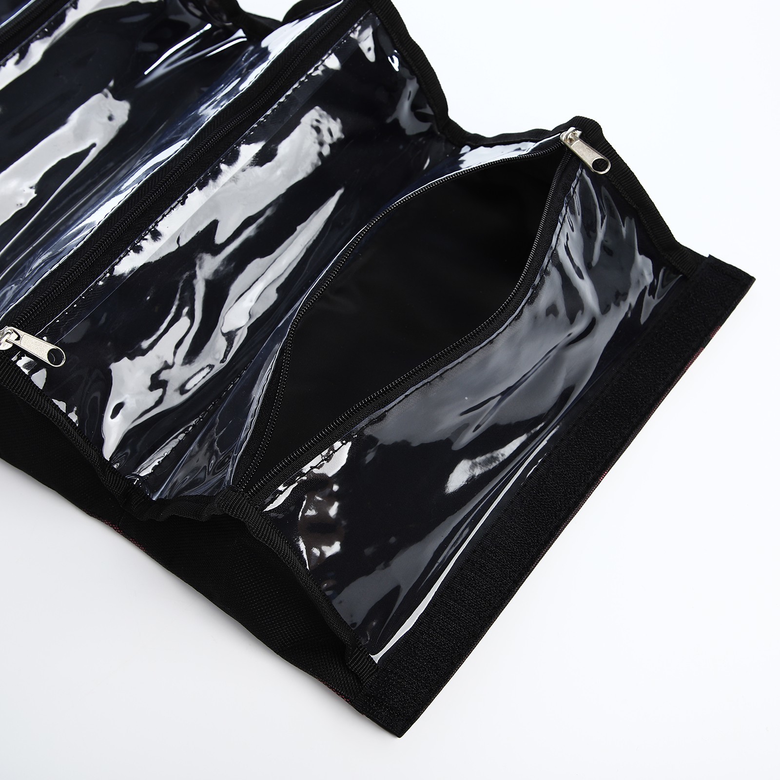 Косметичка дорожная, 4 отдела на молниях, цвет розовый/чёрный