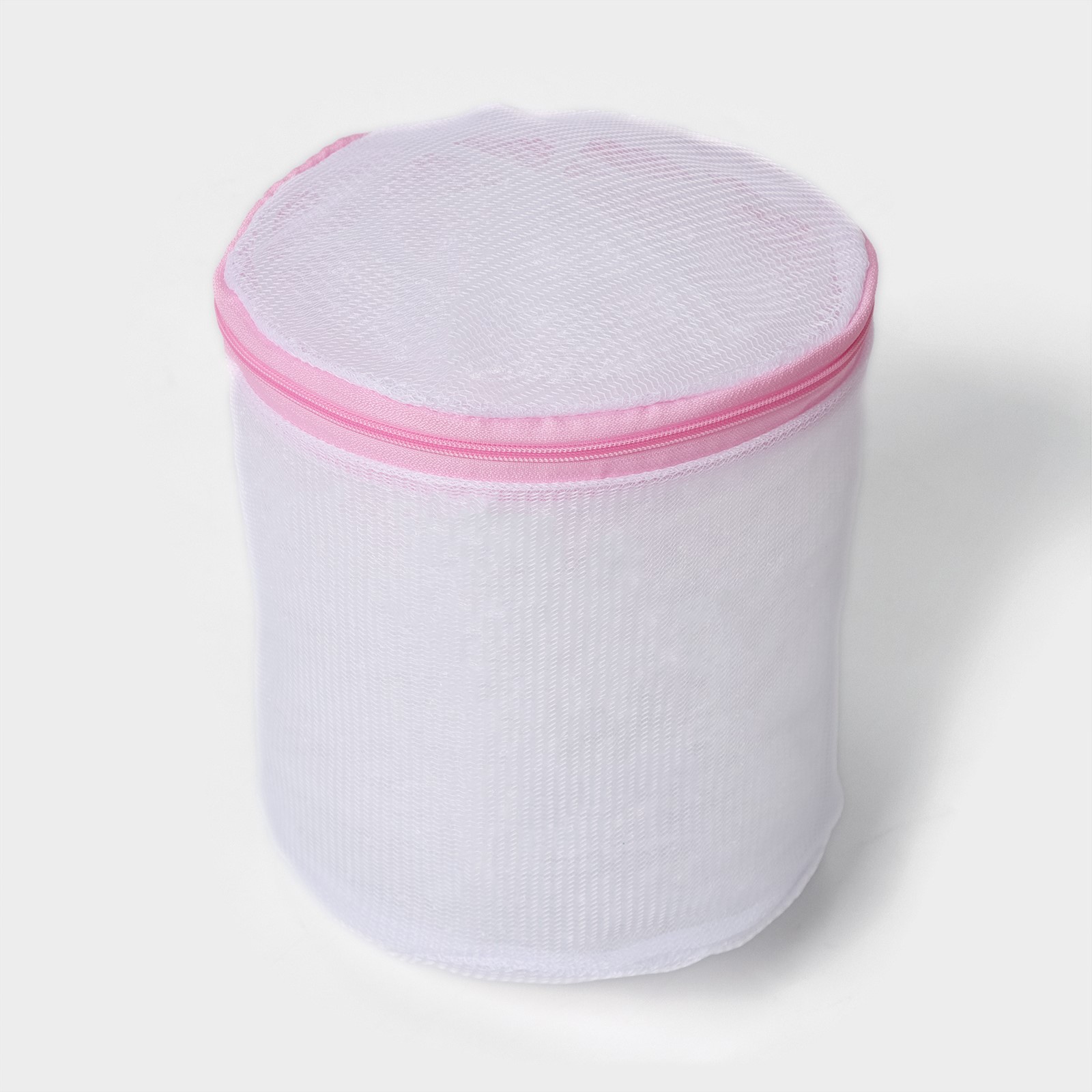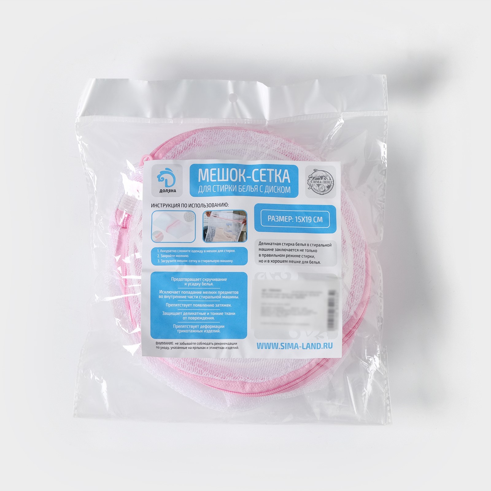 Мешок для стирки белья с диском доляна, 15x15x19 см, мелкая сетка, цвет белый