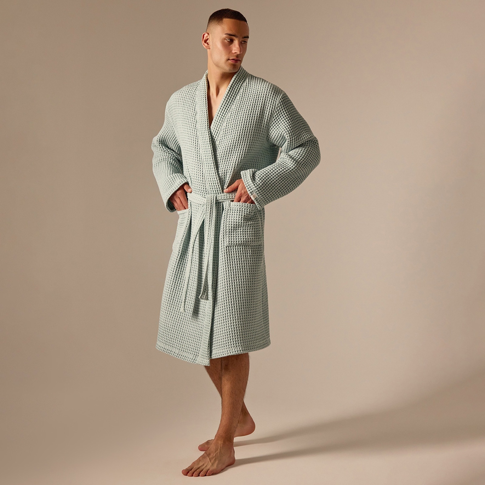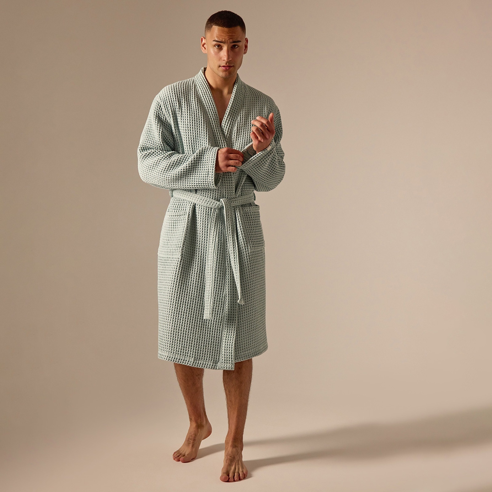 Халат вафельный мужской Sl Home: Boho «аззура», размер M, хлопок 100%, бирюзовый
