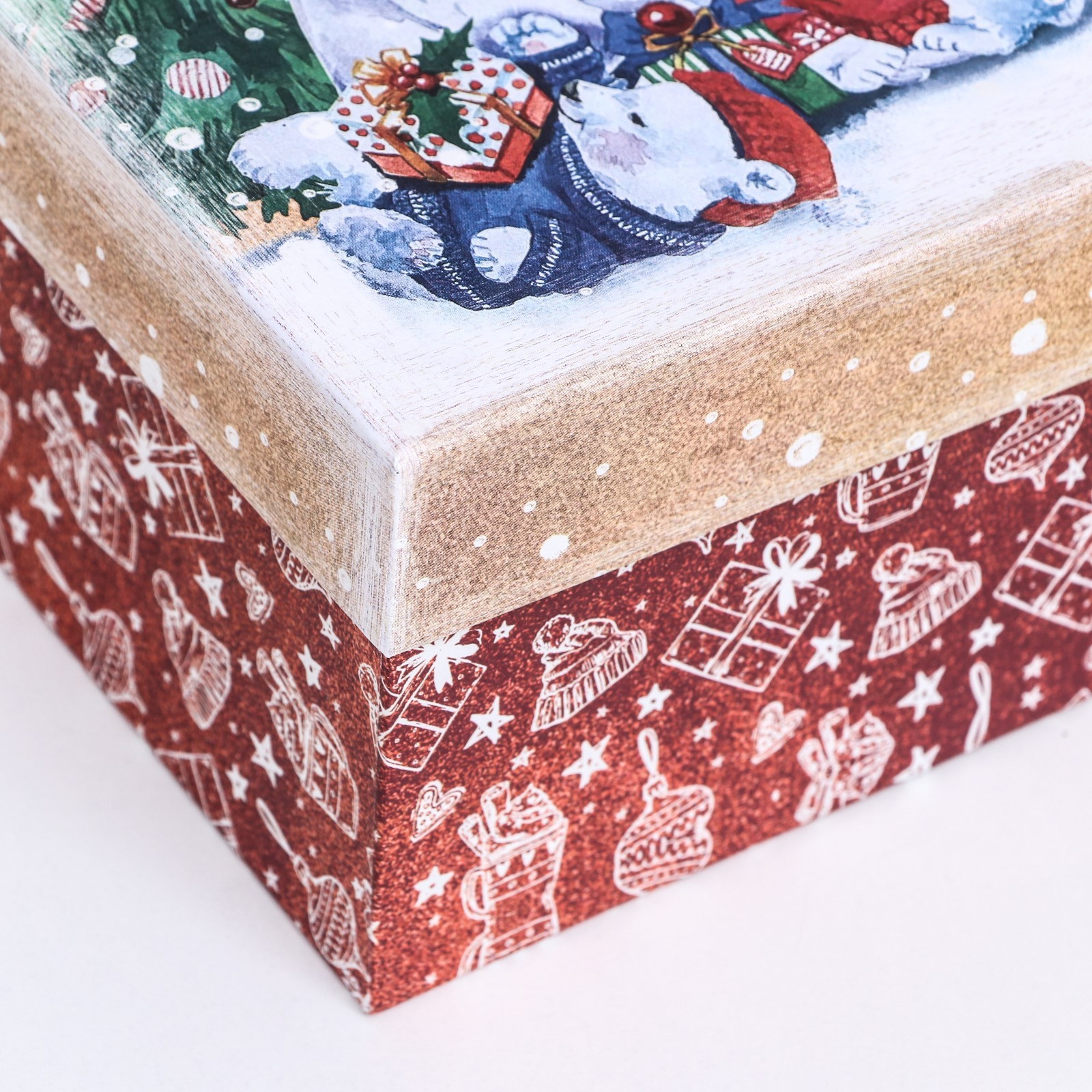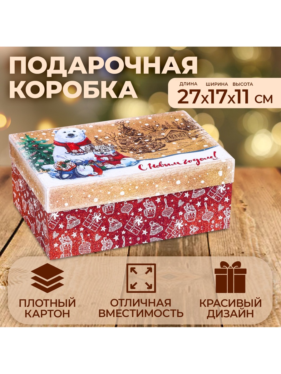 Коробка подарочная новогодняя «с новым годом», 27 17 11 см. Эта прекрасная новогодняя коробка является идеальным выбором для упаковки ваших праздничных подарков. Она обладает не только великолепным внешним видом, но и практичностью, предоставляя удобное пространство для разнообразных сюрпризов. Особенности: Изысканный дизайн: Коробка украшена яркими новогодними мотивами, создавая атмосферу веселья и праздника с первого взгляда.Прочные материалы: Выполненная из качественного картона, коробка обеспечивает надежную защиту содержимого, сохраняя подарки в идеальном состоянии.Универсальность использования: Коробка подходит для различных подарков, будь то игрушки, сладкие угощения или другие мелочи, делая её идеальным выбором для разнообразных подарков.С этой новогодней квадратной коробкой ваши подарки станут еще более особенными, принося радость и удовлетворение волшебных моментов обмена подарками. Цвет:Бордовый|Цвет:Бежевый|Форма:Прямоугольная|Плотность, г/м :900|Длина, см:27|Ширина, см:17|Высота, см:11|Тематика:Новогодняя|Рисунок:Да|Символ года:Нет|Тематика праздника:Рождество|Тематика праздника:Новый год|Материал:Картон|Вид:Прямоугольные|Размер:Большой (25-45 см)|Окошко:Нет|Крышка-дно:Да|Страна:Россия  развернуть описание ▼