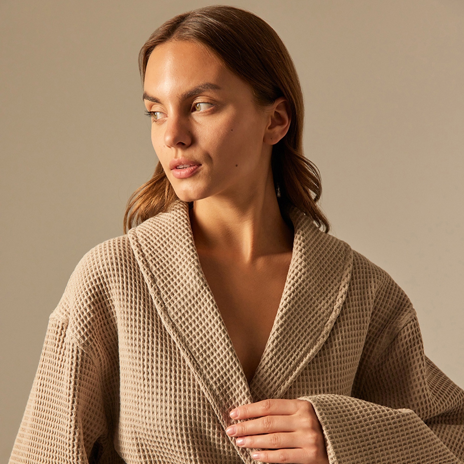 Халат вафельный женский sl home: basic «саббиа», размер s, хлопок 100%, коричневый. Цвет:Коричневый|Для кого:Для женщины|Ткань:Вафельное полотно|Плотность, г/м :300|Размер:44|Рост, см:170|Сезон:Всесезонный|Сезон:Зима|Сезон:Демисезон|Сезон:Лето|Вид застёжки:Без застёжки|Тематика:Однотонная|Длина рукава:Длинный|Вырез горловины:Шалька|Декоративные элементы:Без элементов|Покрой:Прямой|Тип карманов:Накладной|Тип рукава:Втачной|Рекомендации по уходу:Деликатная стирка при 30 °С|Рекомендации по уходу:Не отбеливать|Рекомендации по уходу:Глажка при 100 °С|Рекомендации по уходу:Химчистка запрещена|Состав ткани:Хлопок|Обхват талии, см:68 - 72|Длина изделия по спинке, см:108|Обхват груди, см:88 - 92|Обхват бёдер, см:92 - 96|Страна:Армения  развернуть описание ▼