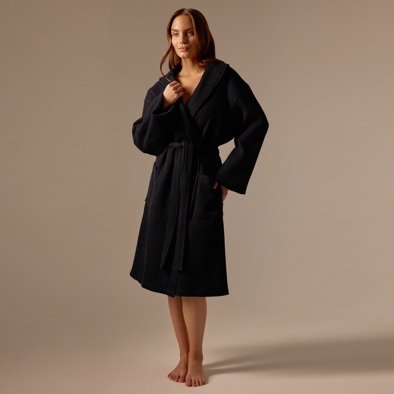 Халат вафельный женский sl home: basic «дарк маре», размер m, хлопок 100%, чёрный. Цвет:Чёрный|Для кого:Для женщины|Ткань:Вафельное полотно|Плотность, г/м :300|Размер:46|Рост, см:173 - 176|Сезон:Лето|Сезон:Демисезон|Сезон:Всесезонный|Сезон:Зима|Вид застёжки:Без застёжки|Тематика:Однотонная|Длина рукава:Длинный|Вырез горловины:Шалька|Декоративные элементы:Без элементов|Покрой:Удлинённый|Покрой:Свободный|Покрой:Прямой|Тип карманов:Накладной|Тип рукава:Втачной|Рекомендации по уходу:Барабанная сушка при низкой температуре|Рекомендации по уходу:Глажка при 110 °С|Рекомендации по уходу:Не отбеливать|Рекомендации по уходу:Стирка при 40 °С|Состав ткани:Хлопок|Обхват талии, см:72 - 76|Длина изделия по спинке, см:110|Обхват груди, см:92 - 96|Обхват бёдер, см:96 - 100|Страна:Армения  развернуть описание ▼