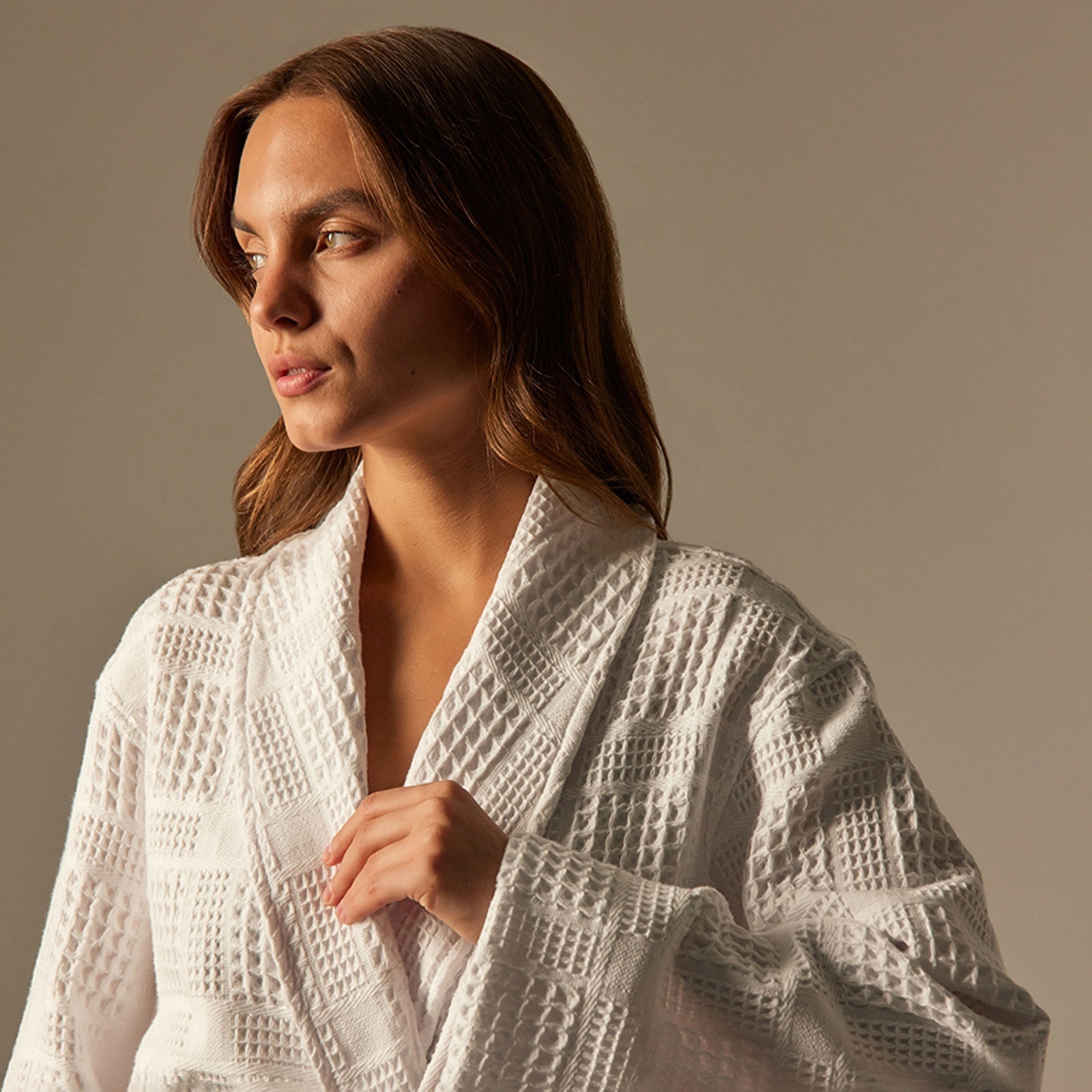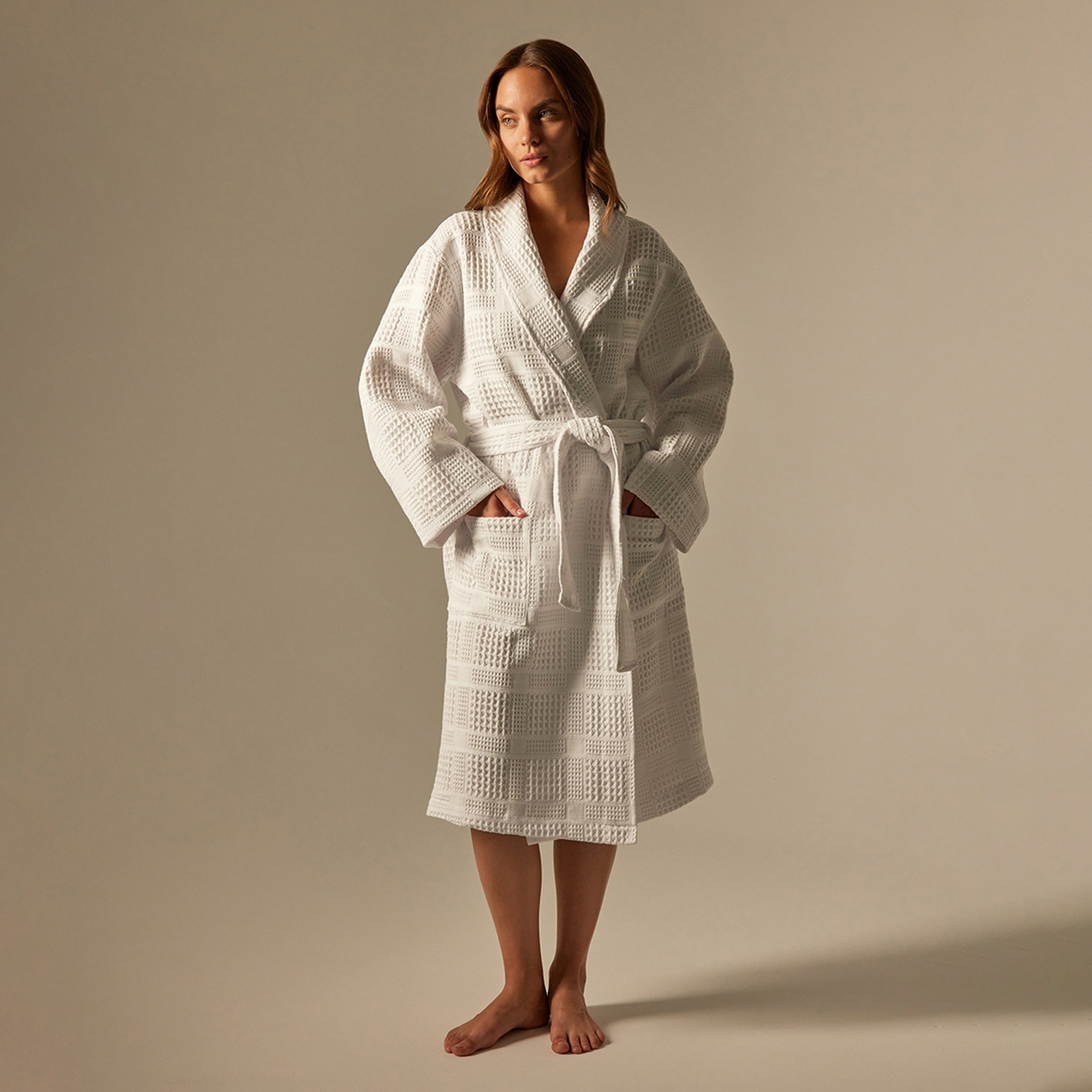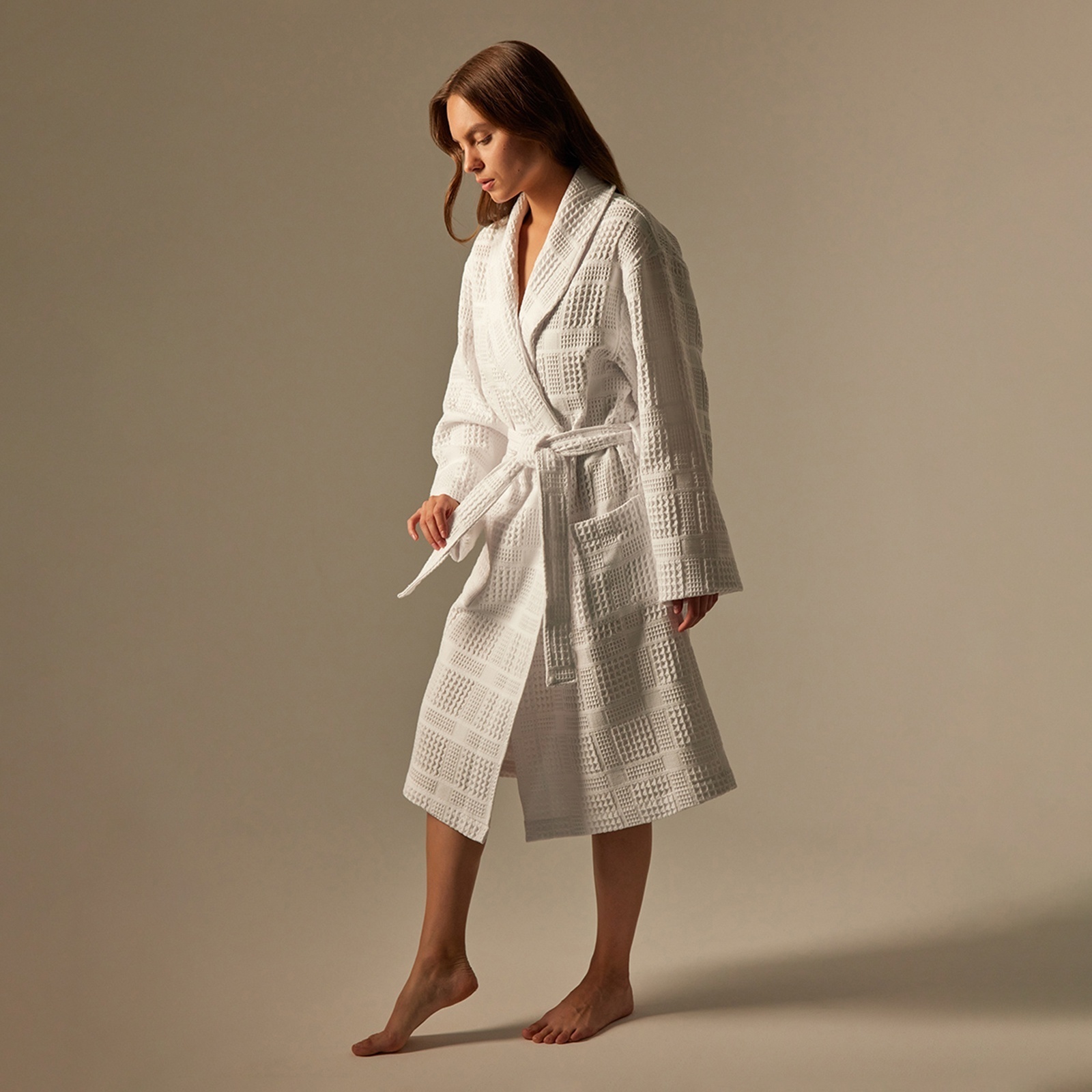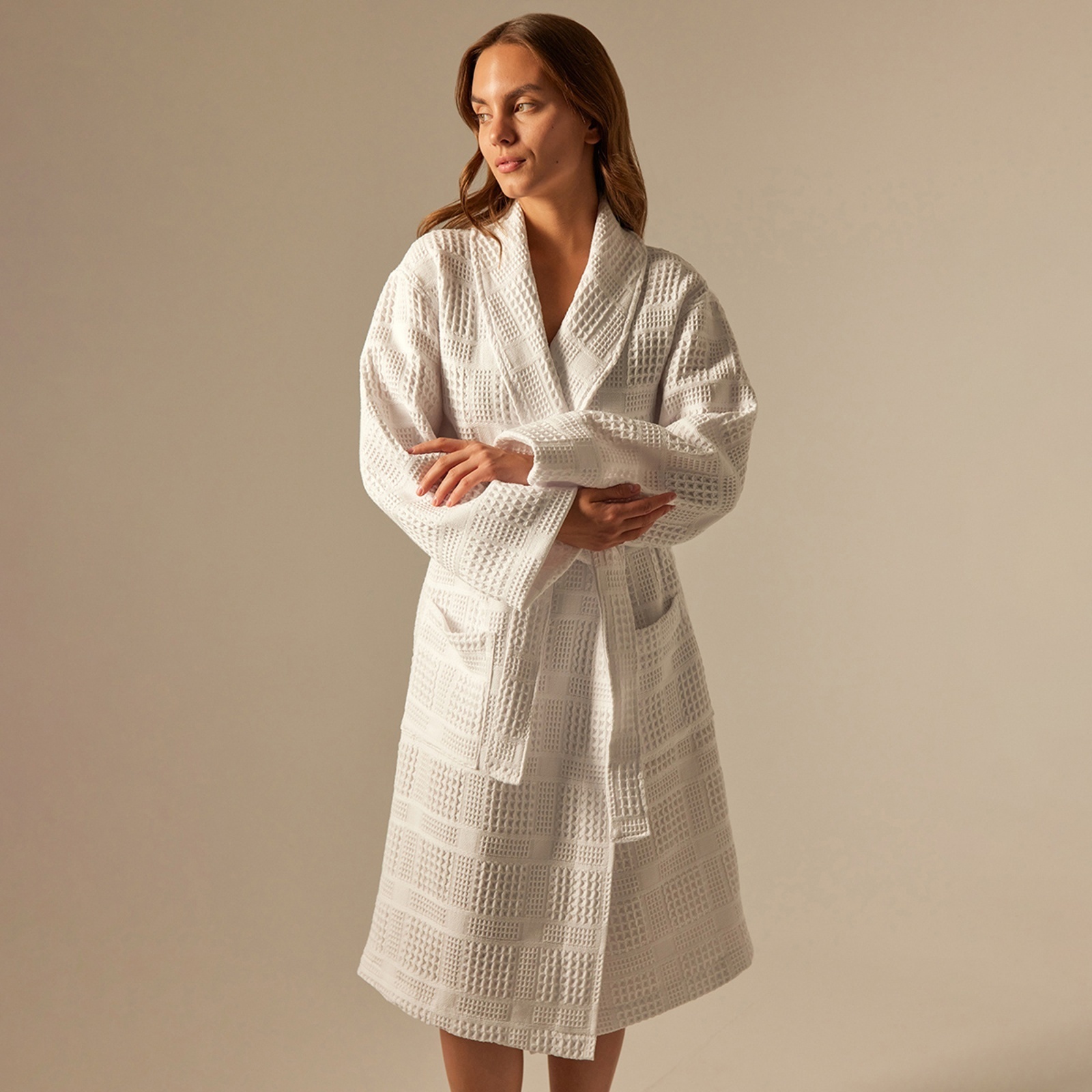 Халат вафельный женский sl home: chess «блан де блан», размер l, хлопок 100%, белый. Цвет:Белый|Для кого:Для женщины|Ткань:Вафельное полотно|Плотность, г/м :340|Размер:48|Рост, см:176|Сезон:Лето|Сезон:Демисезон|Сезон:Зима|Сезон:Всесезонный|Вид застёжки:Без застёжки|Тематика:Однотонная|Длина рукава:Длинный|Вырез горловины:Шалька|Декоративные элементы:Без элементов|Покрой:Прямой|Тип карманов:Накладной|Тип рукава:Втачной|Рекомендации по уходу:Не отбеливать|Рекомендации по уходу:Химчистка запрещена|Рекомендации по уходу:Деликатная стирка при 30 °С|Рекомендации по уходу:Глажка при 100 °С|Состав ткани:Хлопок|Обхват талии, см:76 - 80|Длина изделия по спинке, см:112|Обхват груди, см:96 - 100|Обхват бёдер, см:100 - 104|Страна:Армения  развернуть описание ▼