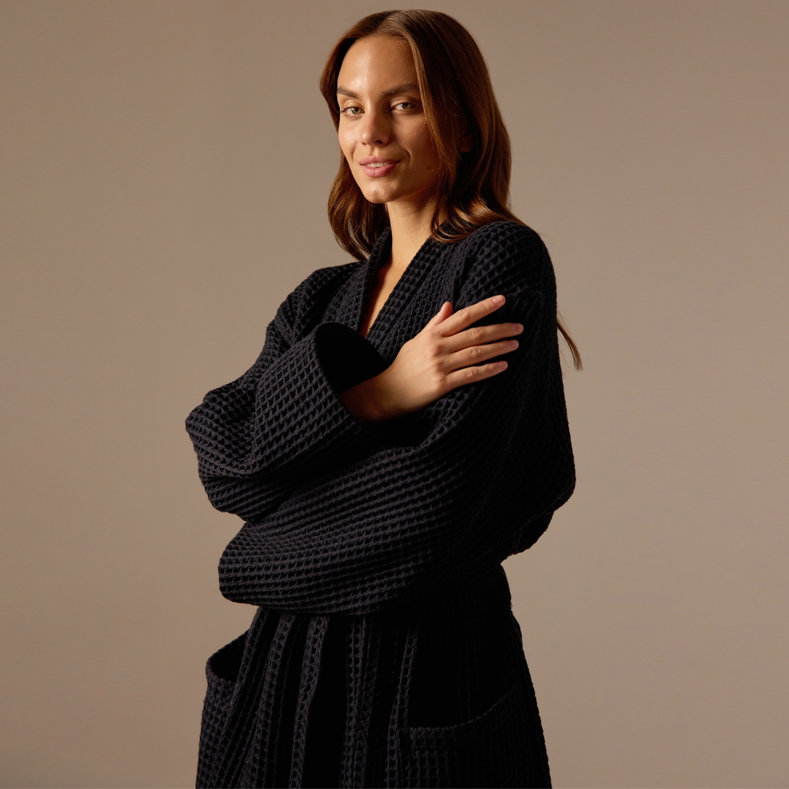 Халат вафельный женский Sl Home: Boho «дарк маре», размер S, хлопок 100%, чёрный