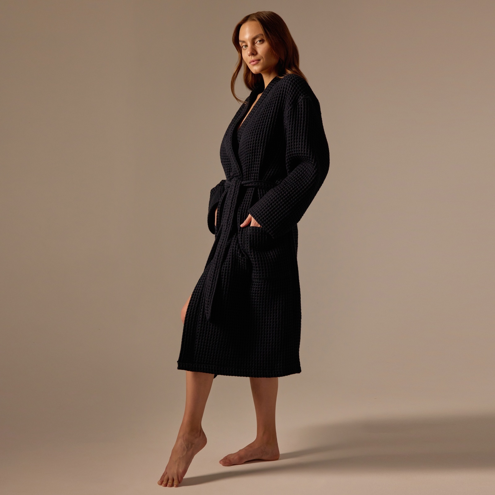 Халат вафельный женский Sl Home: Boho «дарк маре», размер Xl, хлопок 100%, чёрный
