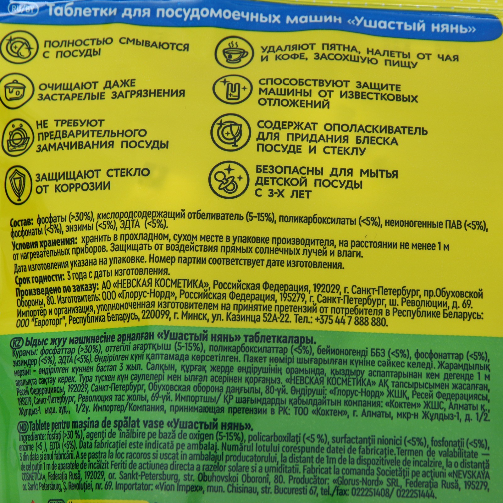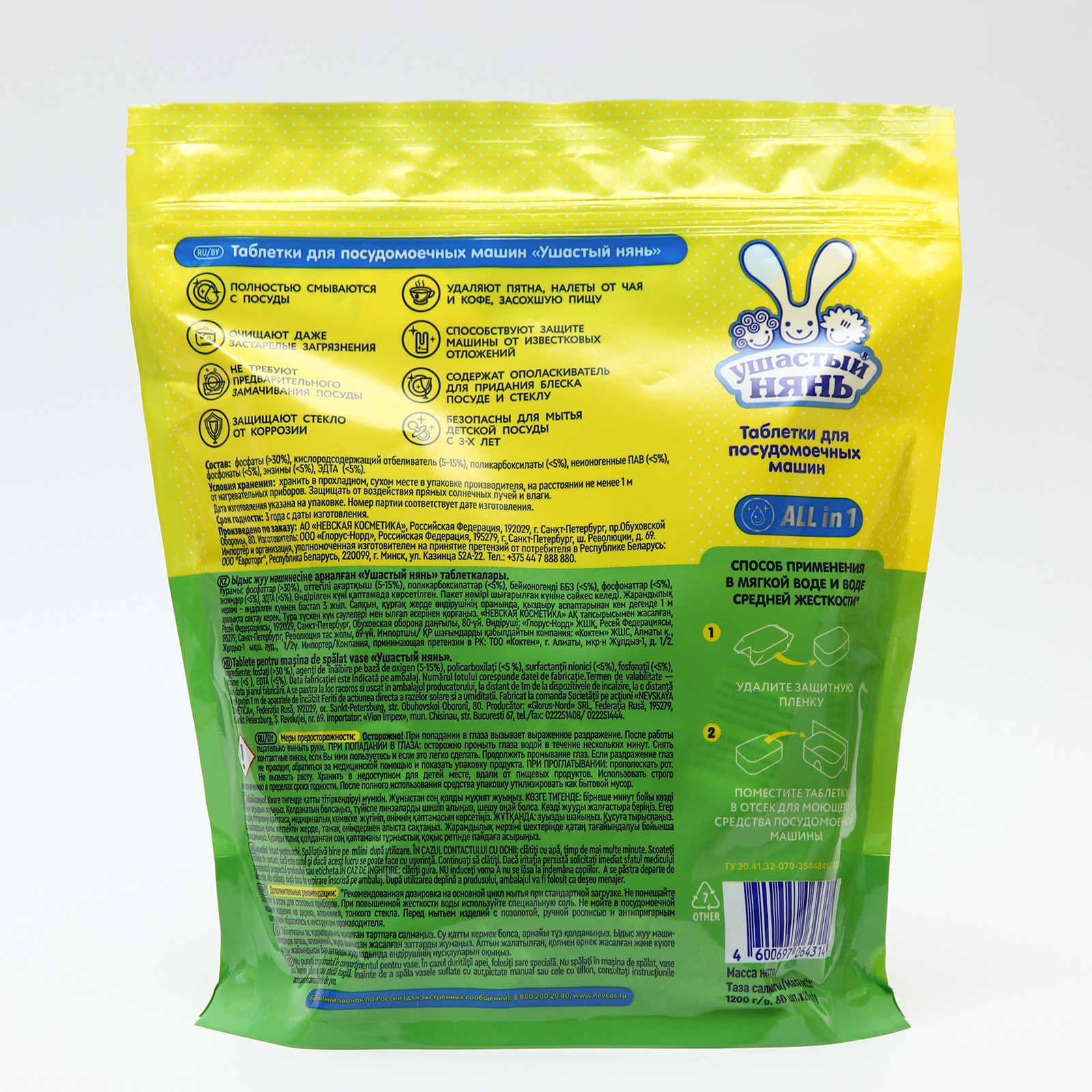 Таблетки для посудомоечных машин ушастый нянь, 60 шт