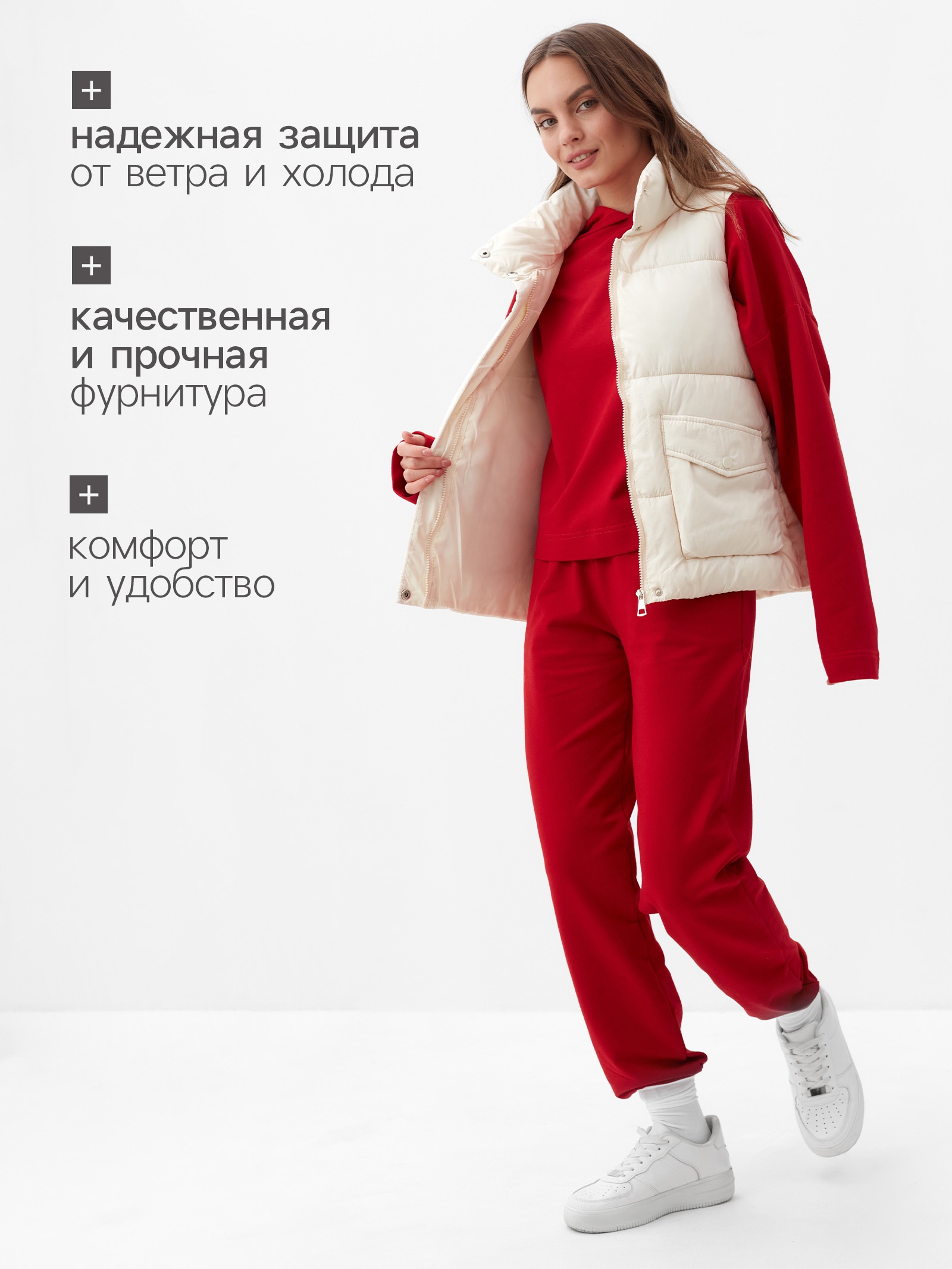 Жилет женский с воротником mist, размер 48, молочная. Куртка стеганая MISTЦвет:Белый|Для кого:Для женщины|Назначение:Повседневная|Размер:48|Рост, см:165 - 175|Рост модели на фото, см:167|Сезон:Демисезон|Материал утеплителя:Синтепон|Вид застёжки:Молния|Тематика:Однотонная|Длина рукава:Длинный|Вырез горловины:Воротник-стойка|Декоративные элементы:Без элементов|Покрой:Прямой|Тип карманов:Накладной|Тип рукава:Без рукава|Рекомендации по уходу:Не отбеливать|Рекомендации по уходу:Барабанная сушка запрещена|Рекомендации по уходу:Деликатная стирка при 30 °С|Температурный режим:От -10 до +5 °С|Материал верха:Нейлон|Состав ткани:Полиэстер|Состав ткани:Нейлон|Страна:Китай  развернуть описание ▼