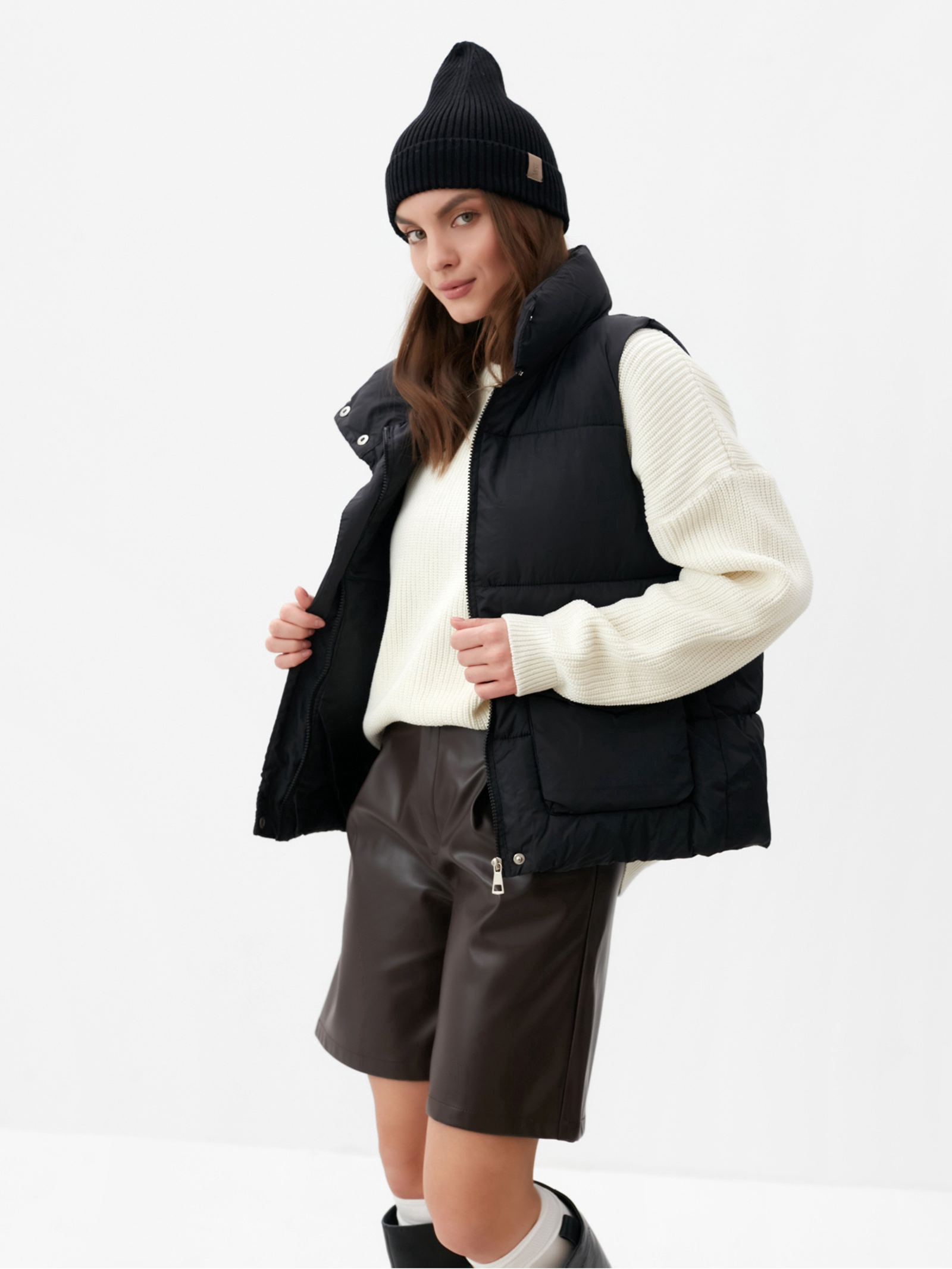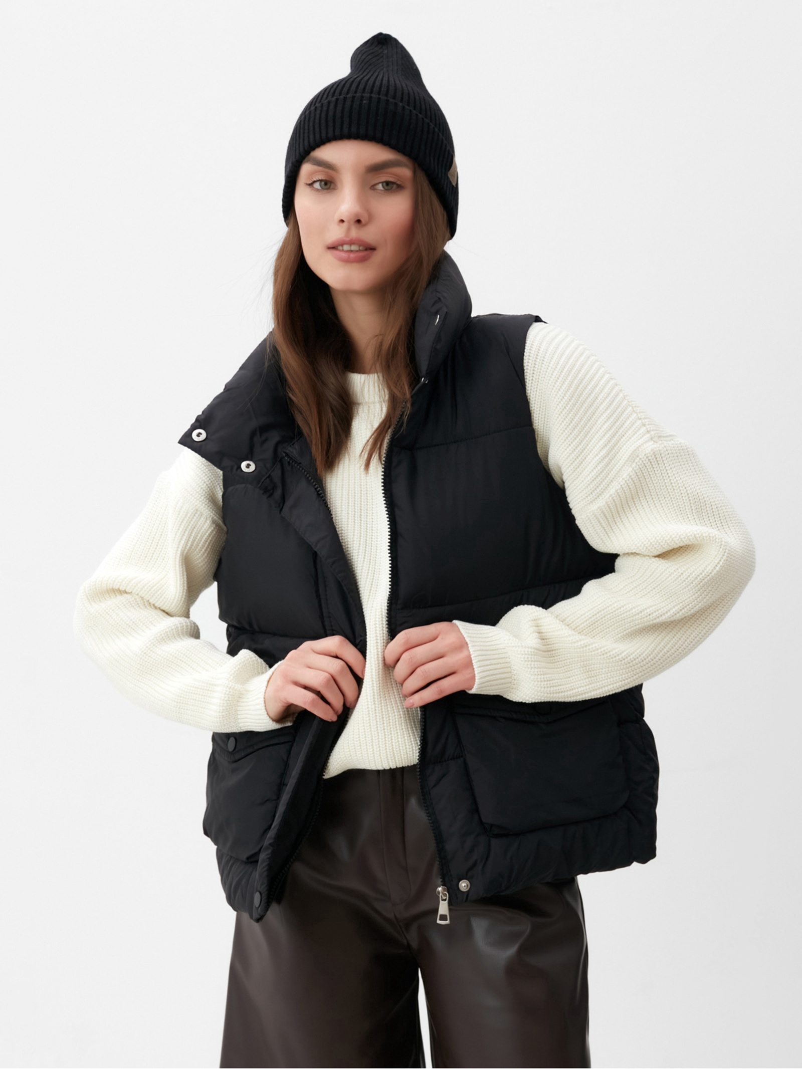 Жилет женский с воротником mist, размер 48, чёрный. Цвет:Чёрный|Для кого:Для женщины|Назначение:Повседневная|Размер:48|Рост, см:165 - 175|Рост модели на фото, см:167|Сезон:Демисезон|Материал утеплителя:Синтепон|Вид застёжки:Молния|Тематика:Однотонная|Длина рукава:Длинный|Вырез горловины:Воротник-стойка|Декоративные элементы:Без элементов|Покрой:Прямой|Тип карманов:Накладной|Тип рукава:Без рукава|Рекомендации по уходу:Барабанная сушка запрещена|Рекомендации по уходу:Деликатная стирка при 30 °С|Рекомендации по уходу:Не отбеливать|Температурный режим:От -10 до +5 °С|Материал верха:Нейлон|Состав ткани:Нейлон|Состав ткани:Полиэстер|Страна:Китай