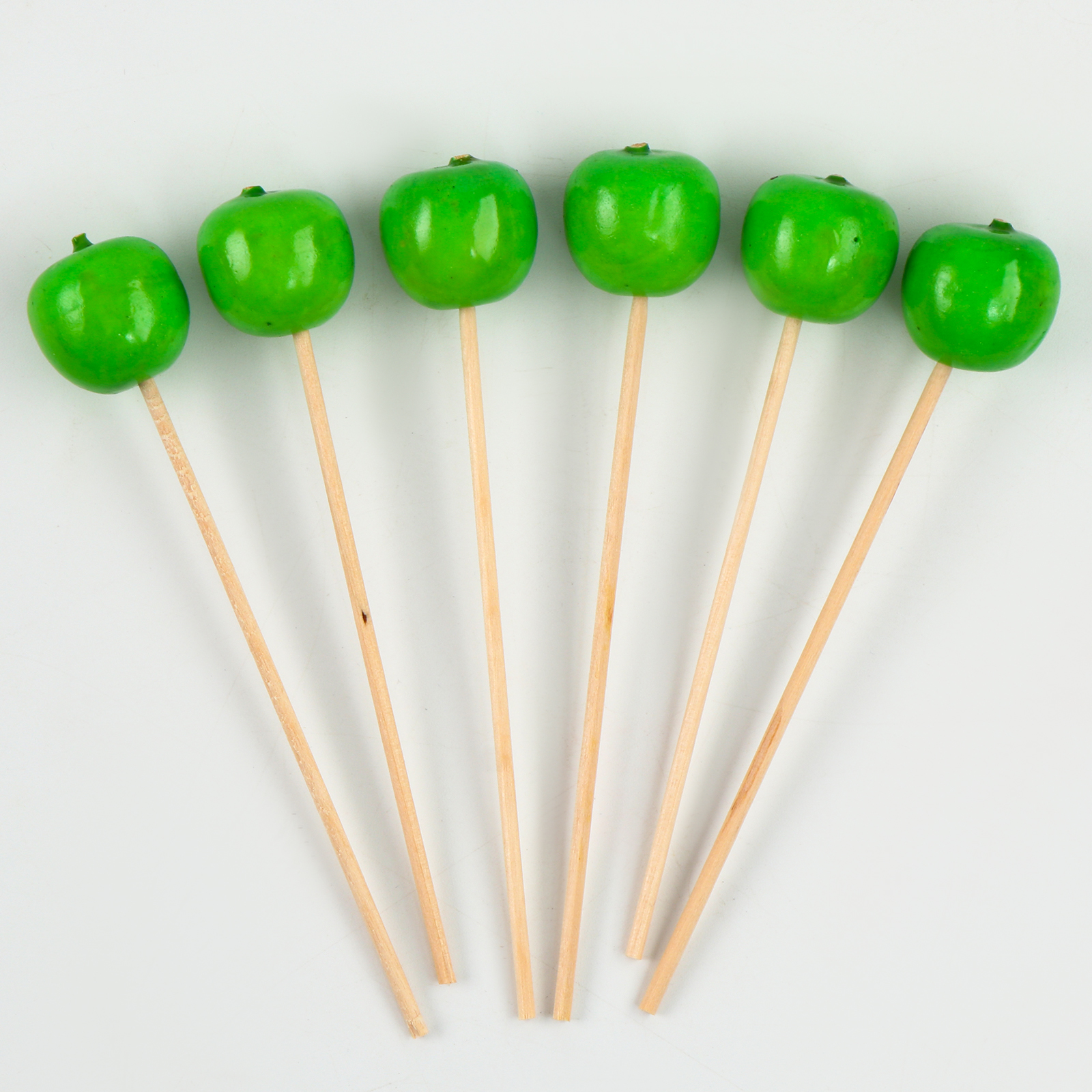 Шпажки «яблочки», 11 см, набор 6 шт., цвет зелёный