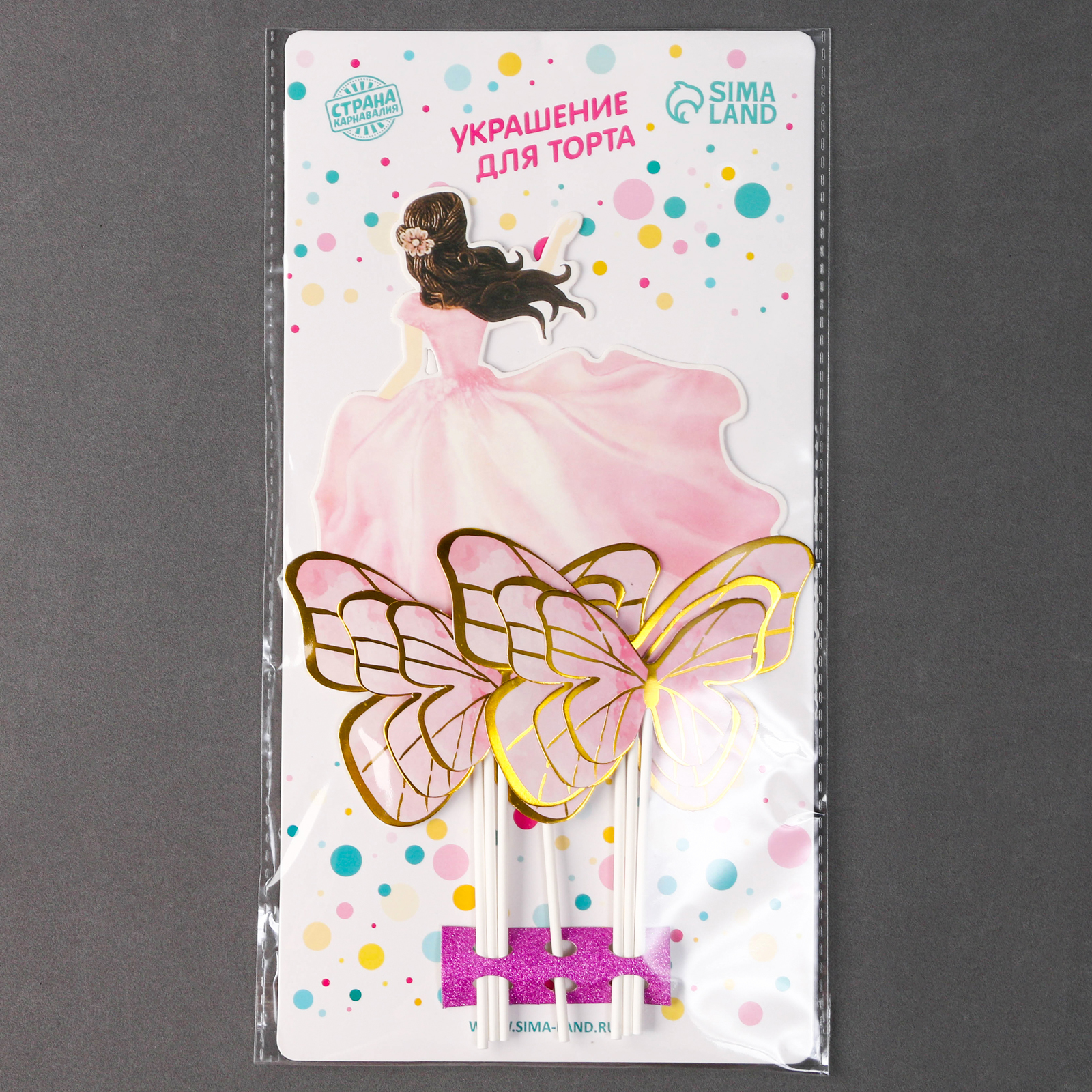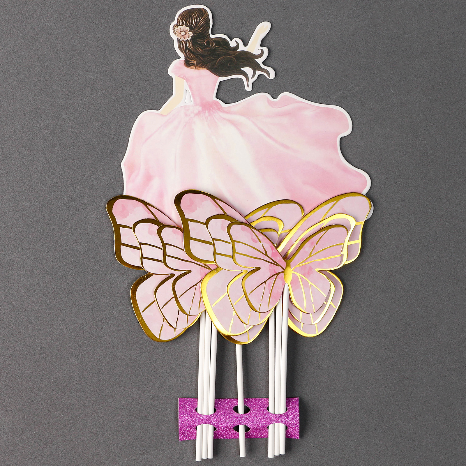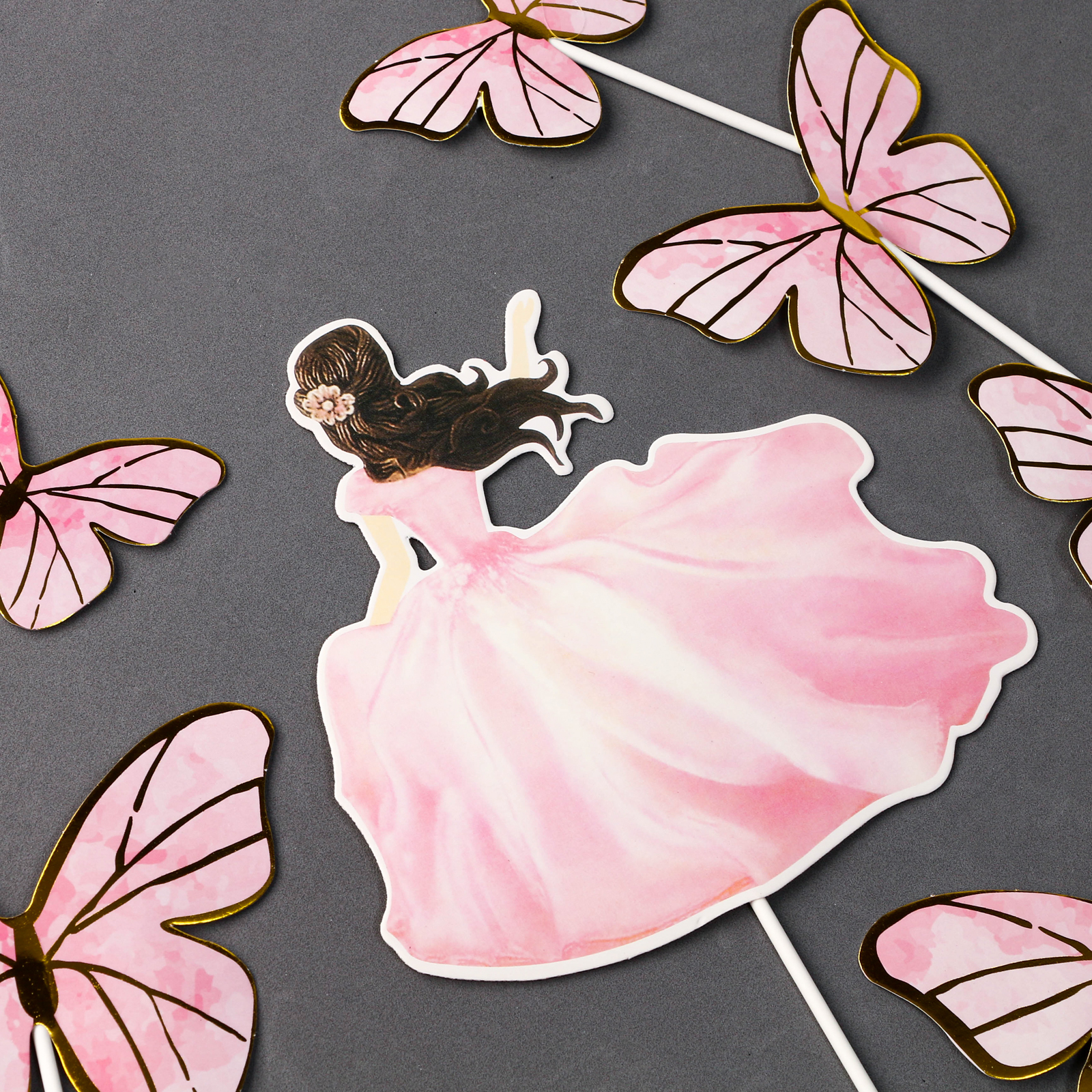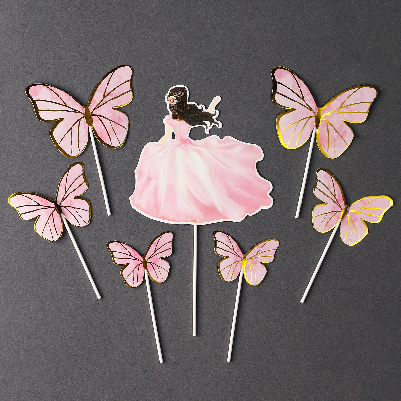 Набор для украшения «девушка с бабочками», набор 7 шт., цвет розовый