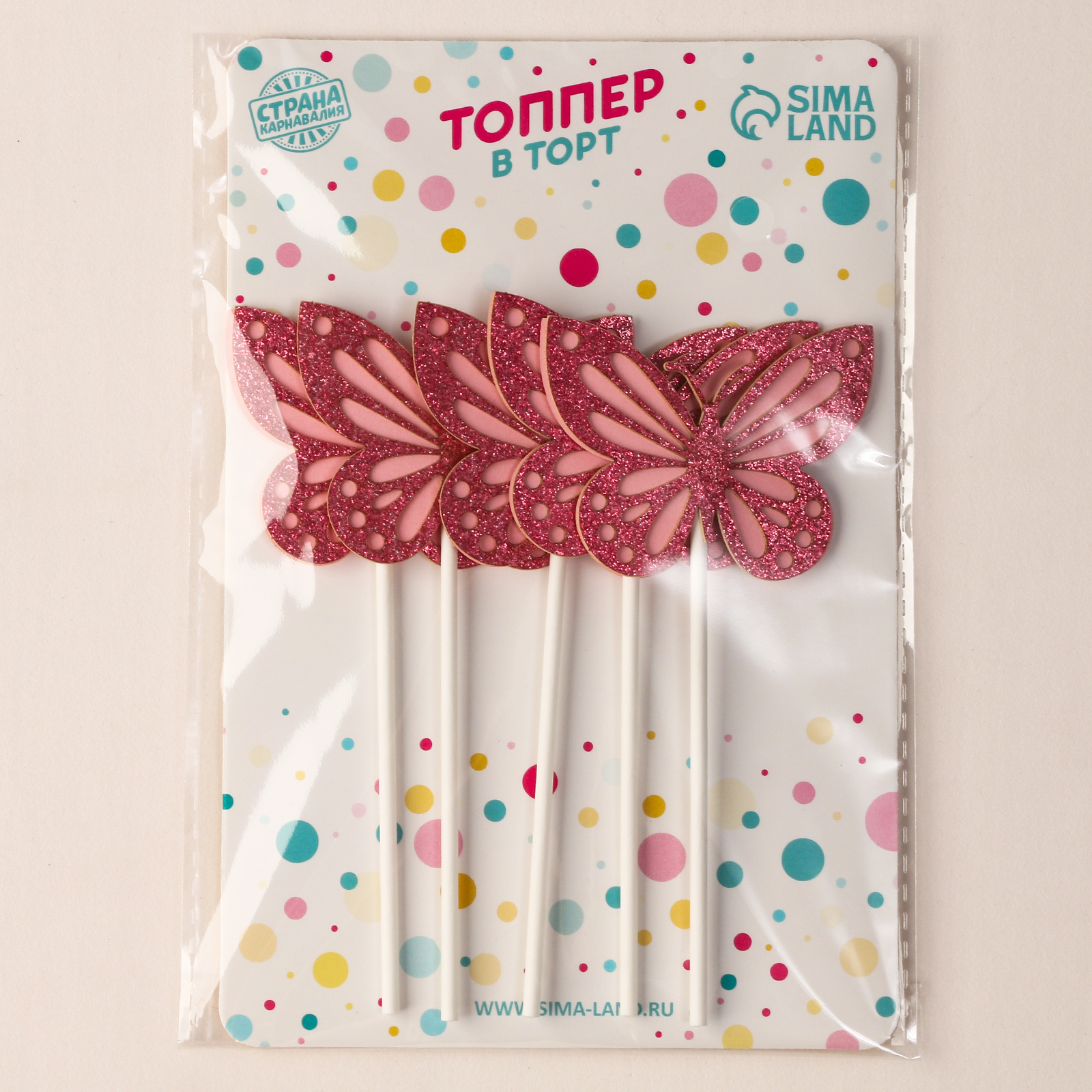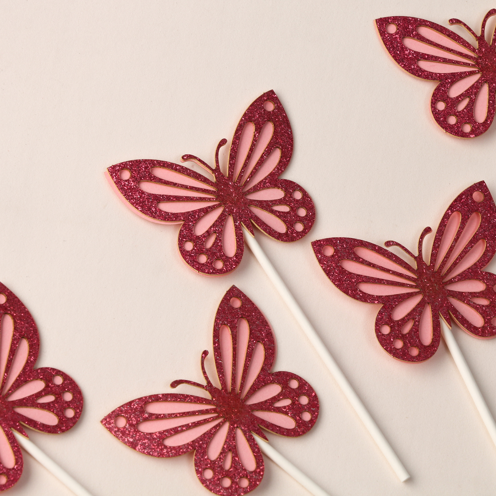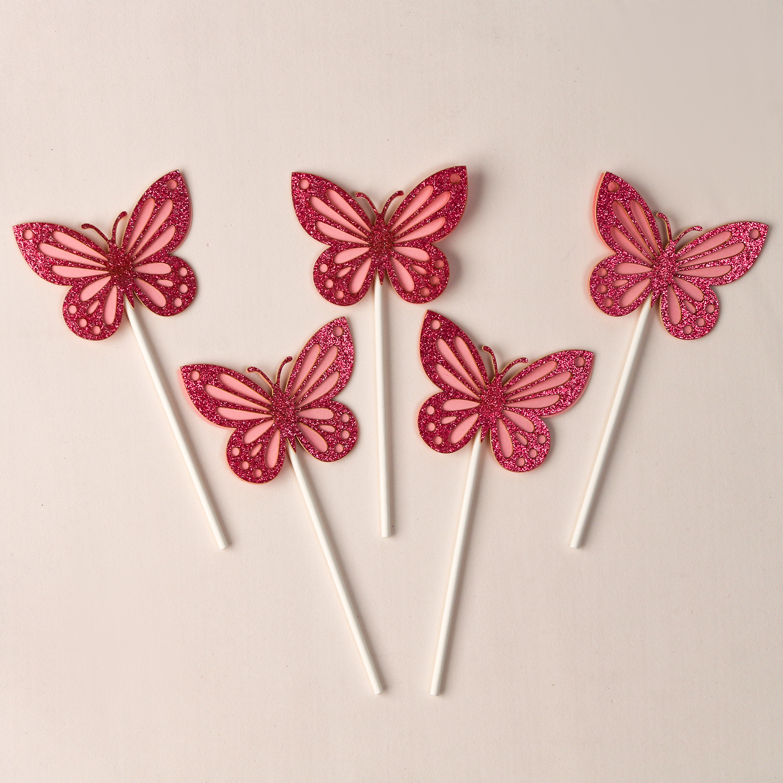 Набор для украшения «блестящие бабочки», набор 5 шт., цвет розовый. Цвет: Розовый Высота держателя, см: 12 Материал: Пластик Материал: Бумага