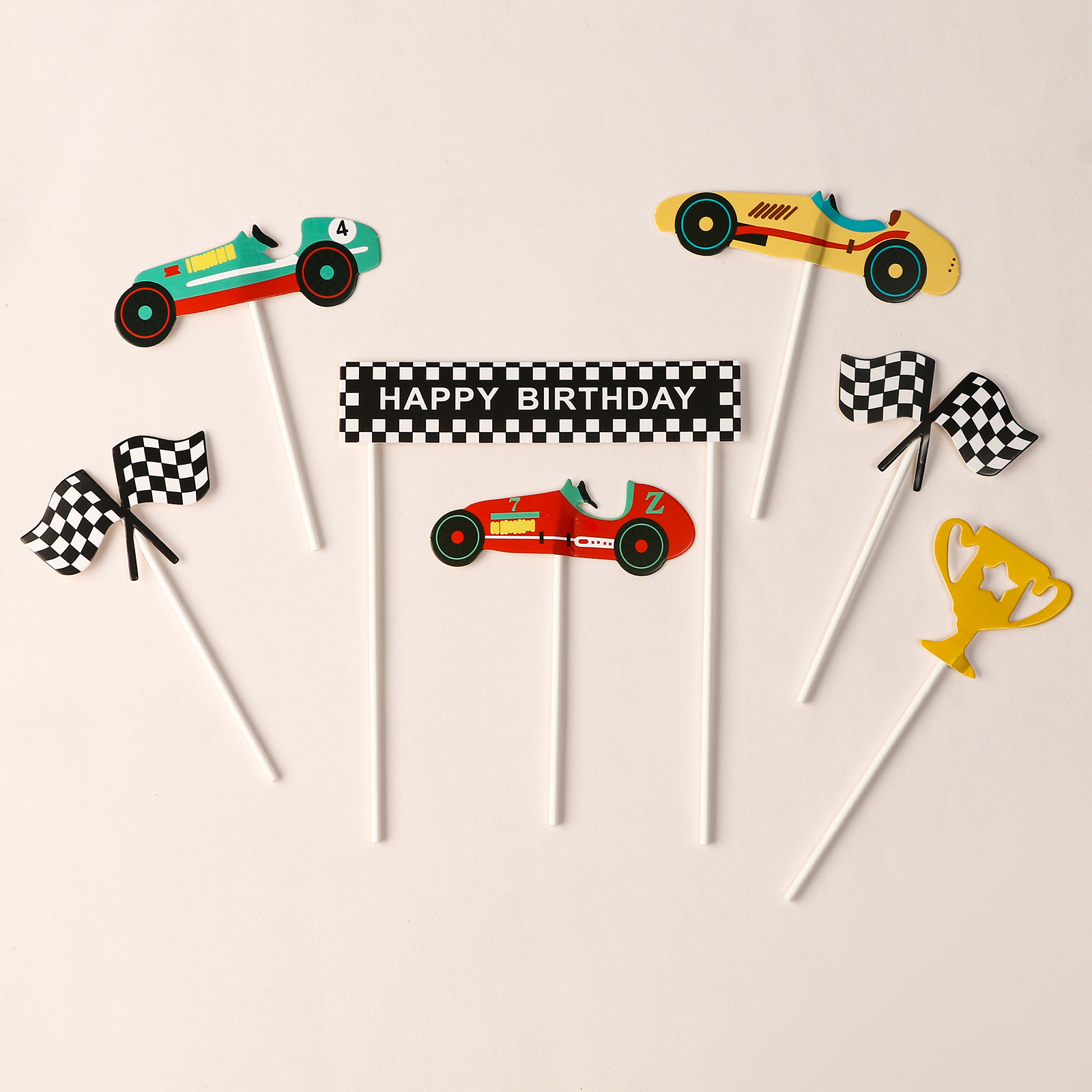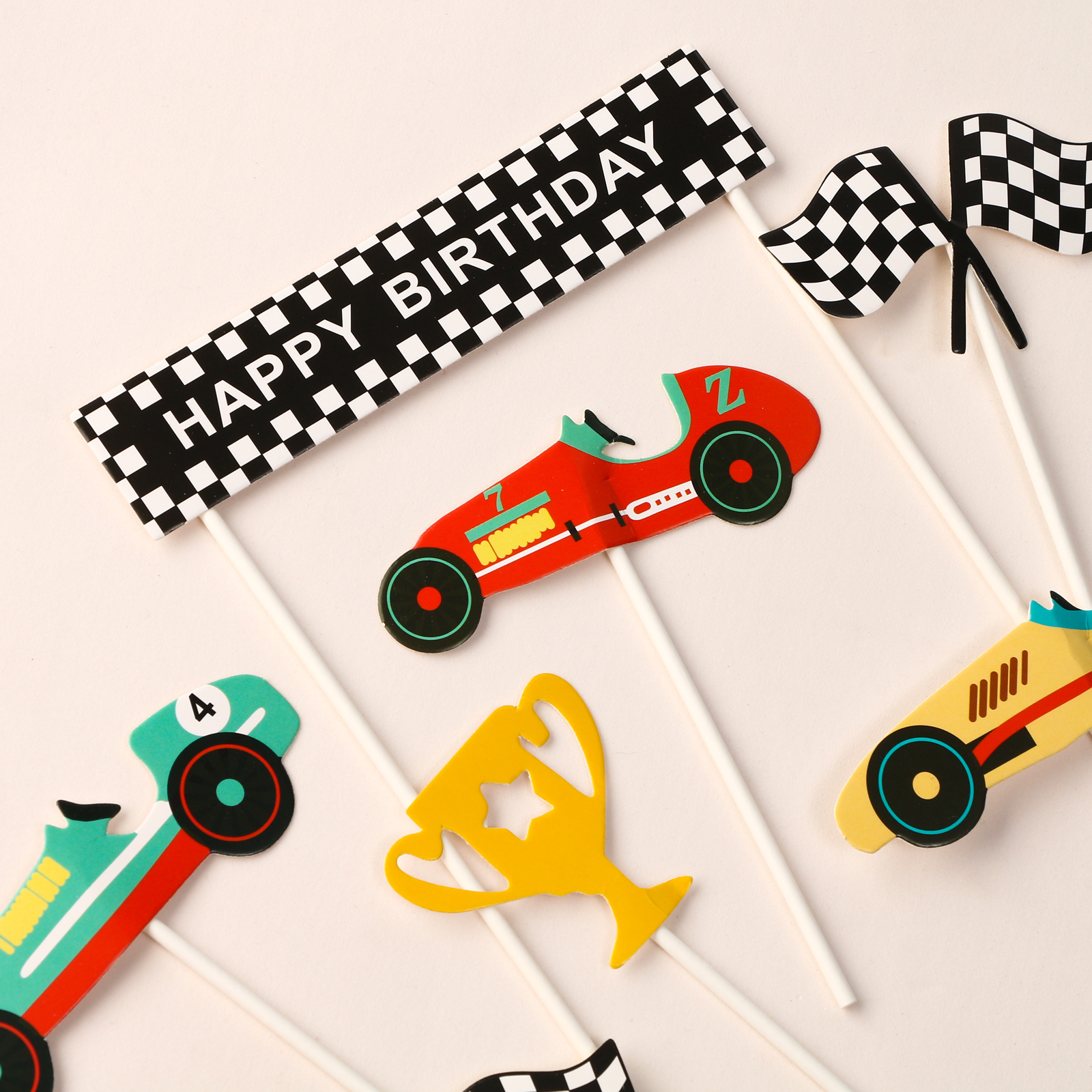 Набор для украшения «с днём рождения» победитель, набор 7 шт.. Цвет: Разноцветный Высота держателя, см: 16 Материал: Бумага Материал: Пластик
