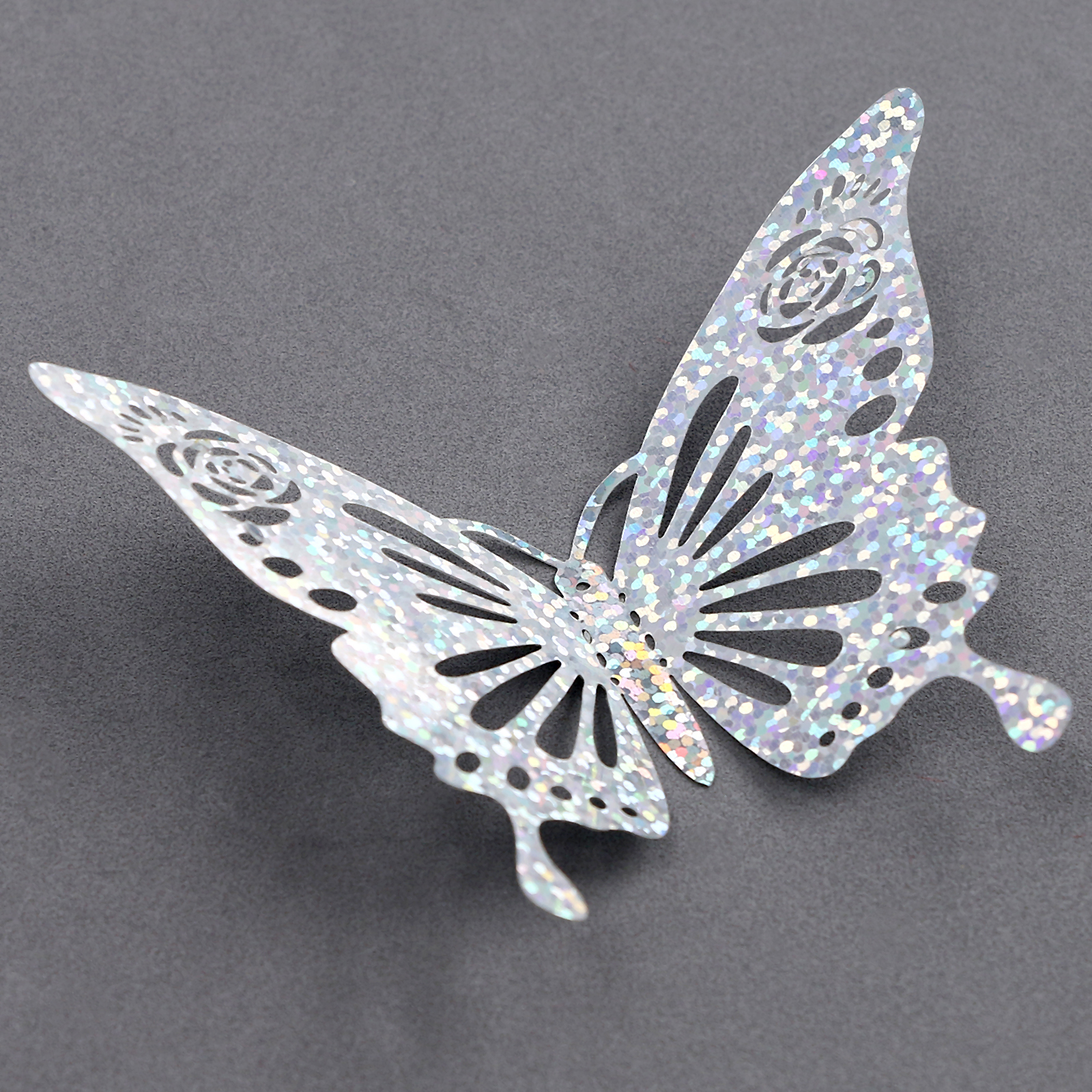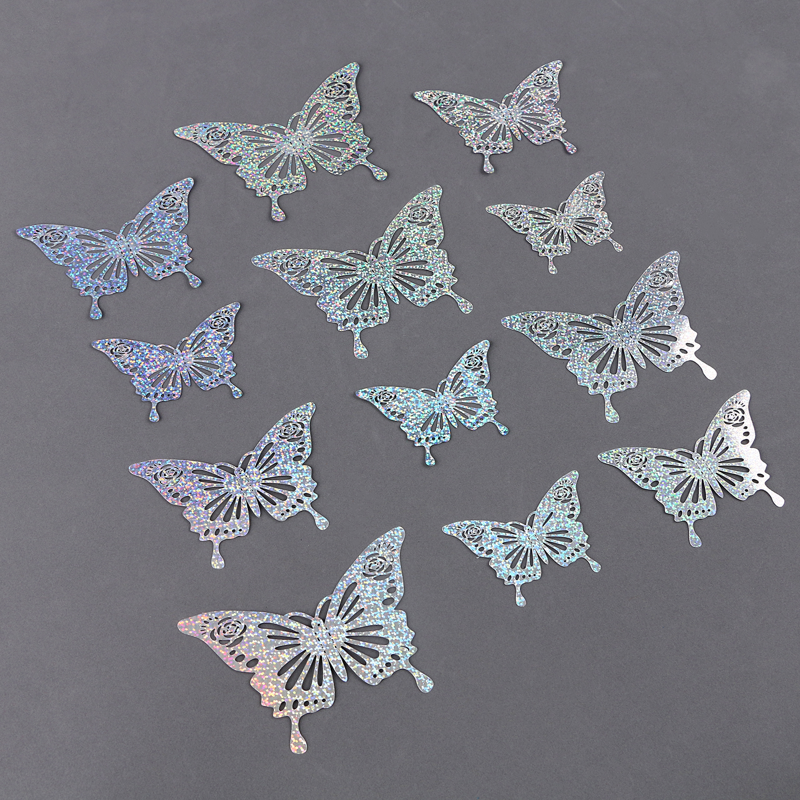 Набор для украшения «бабочки», набор 12 шт, цвет голография серебро