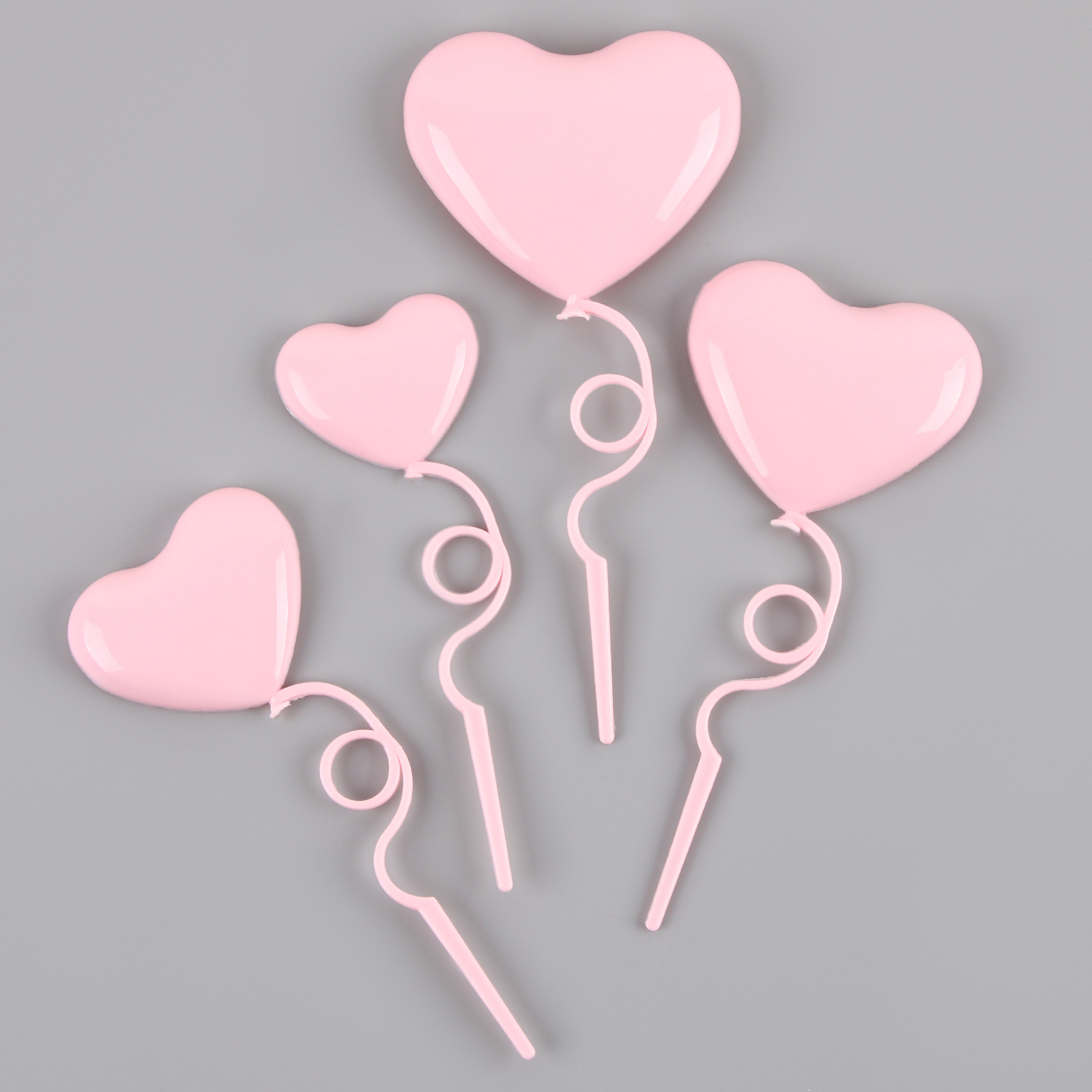 Набор для украшения "сердца", цвет розовый. Цвет: Розовый Высота держателя, см: 14 Материал: Пластик