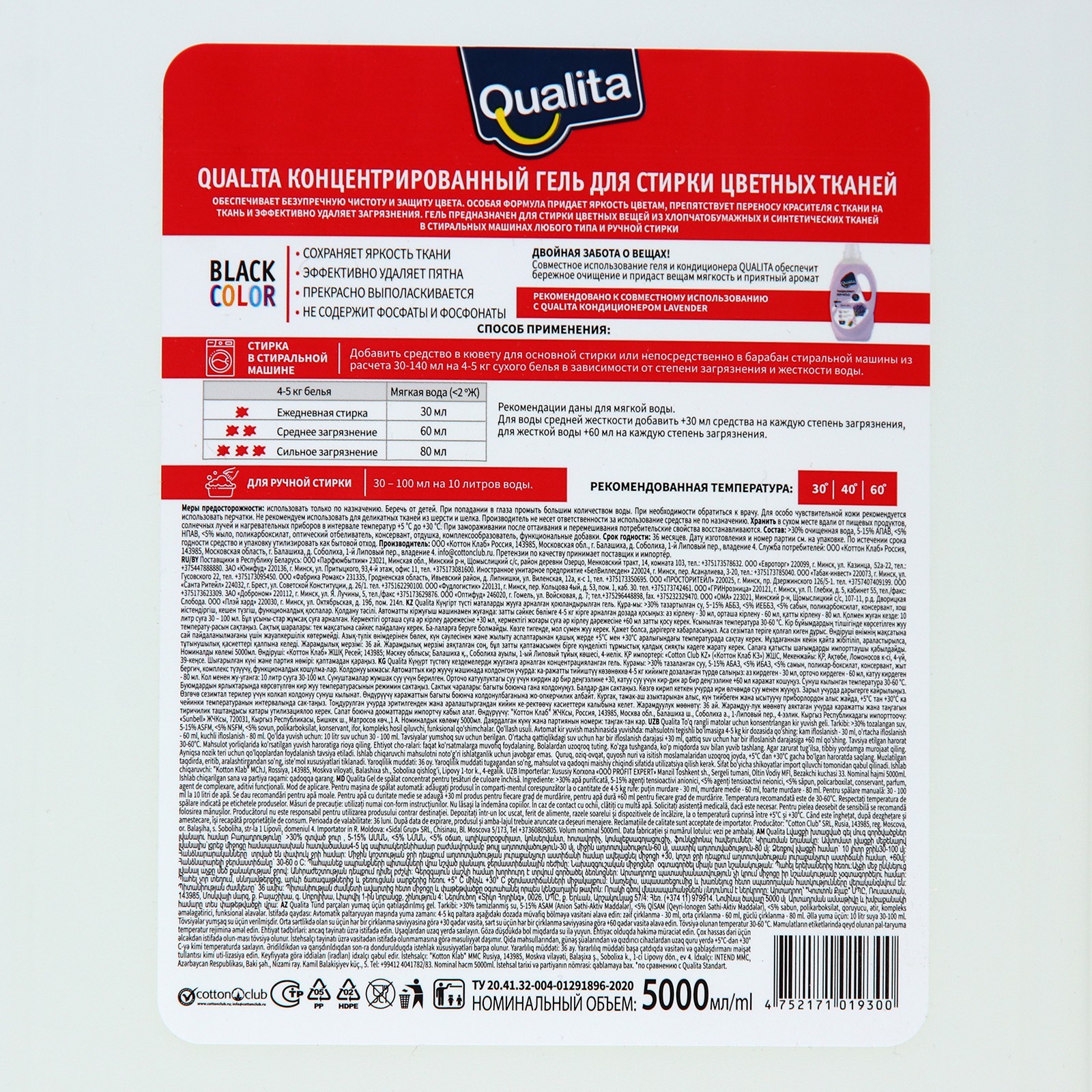 Гель для стирки концентрат, Qualita, для цветного, 5 л