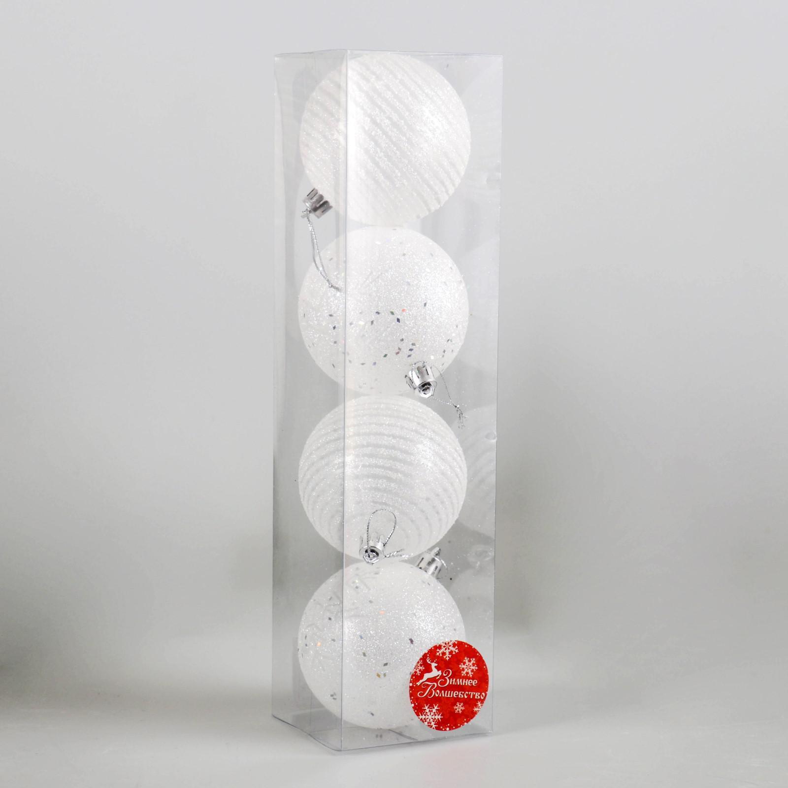 Ёлочные игрушки «снежинки», шары новогодние, D=8 см, 4 шт., белый