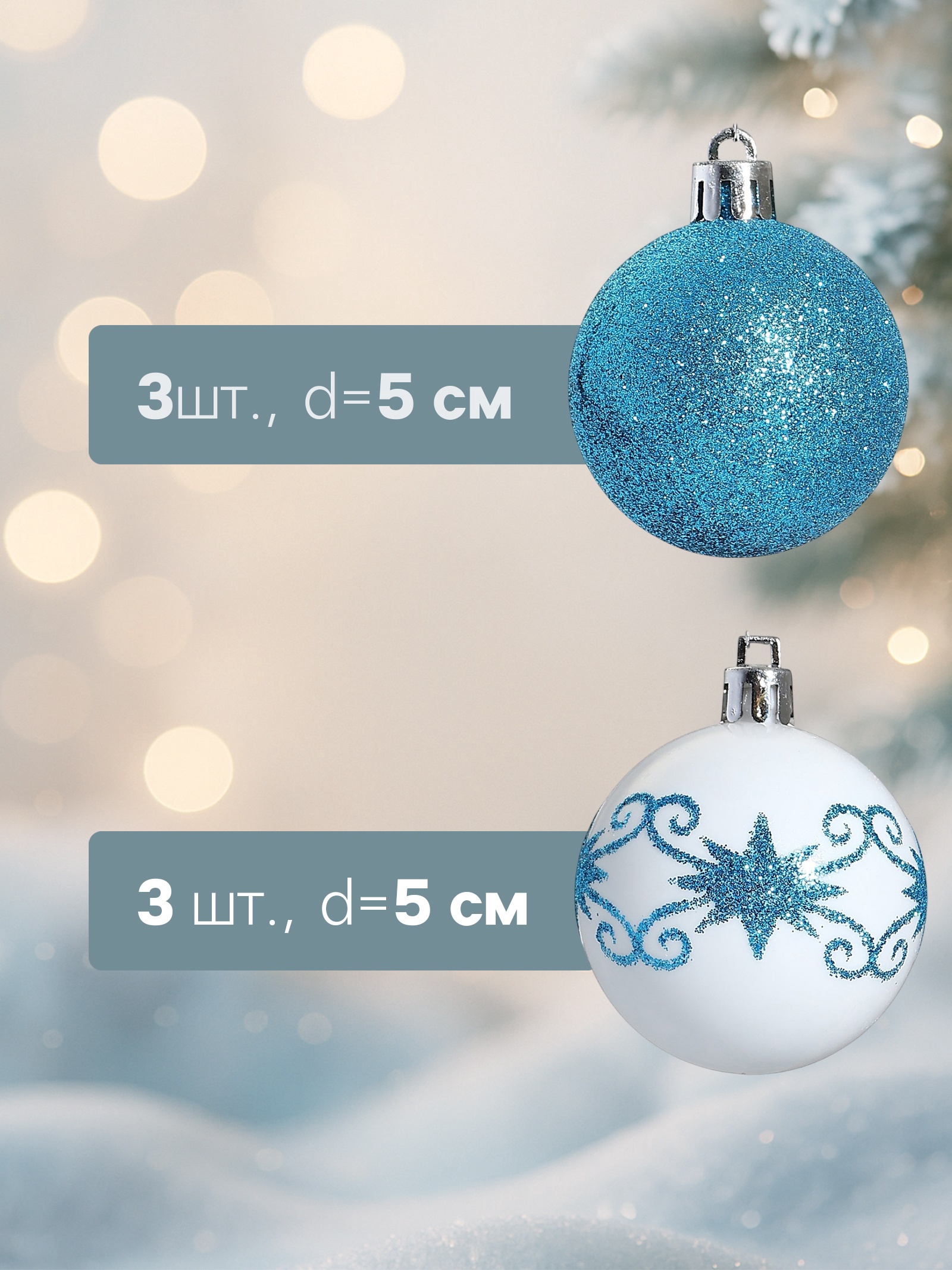 Ёлочные игрушки «зимняя сказка», шары новогодние, D=5 см, набор 6 шт., бело-голубой