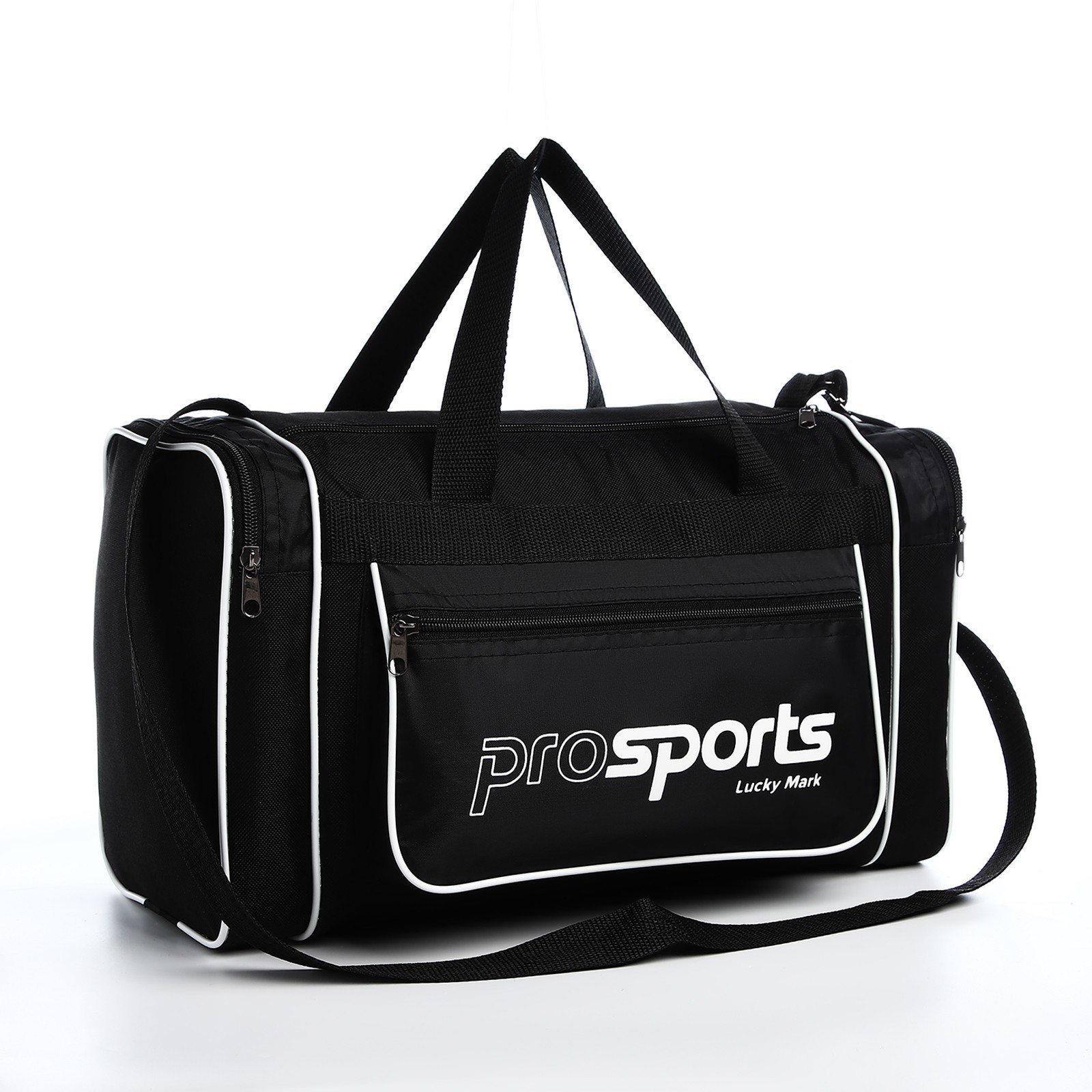 Сумка спортивная на молнии, 3 наружных кармана, длинный ремень, средний размер, цвет чёрный