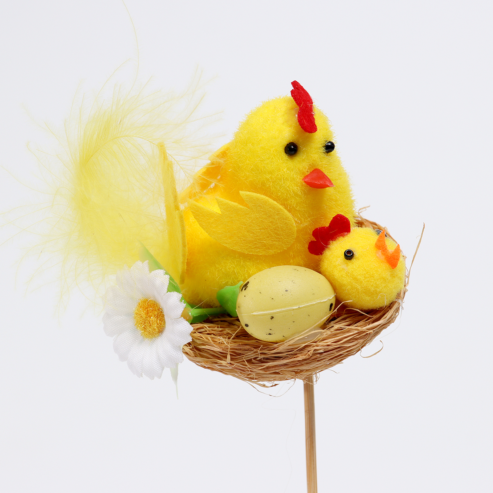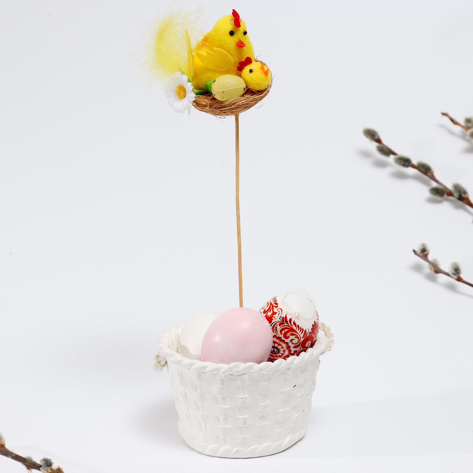 Пасхальный декор на палочке «курочка в гнезде» 8x8x30 см. Цвет: Жёлтый parts count: 0 Высота держателя, см: 20 Материал: Пластик Материал: Пенопласт Материал: Текстиль Материал: Дерево  развернуть описание ▼