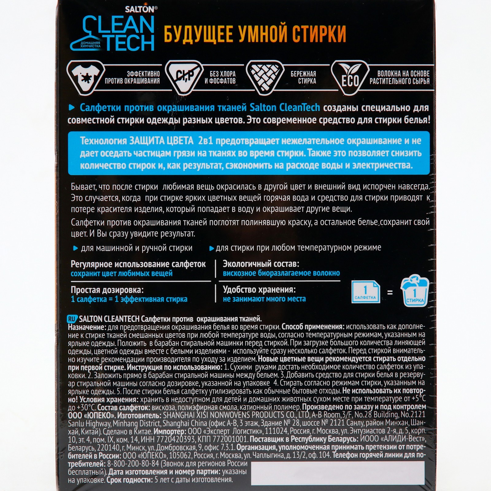Салфетки против окрашивания тканей, Salton Cleantech 50 шт