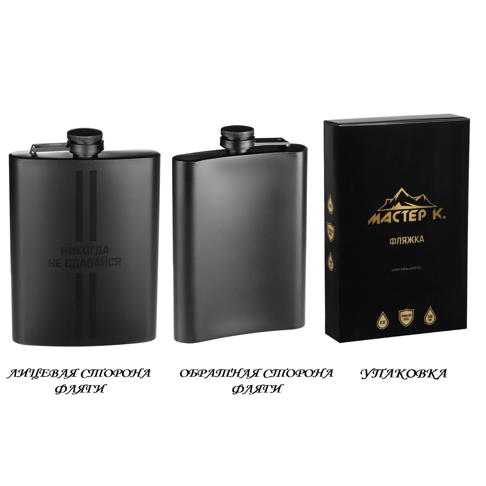 Фляжка для алкоголя "никогда не сдавайся", нержавеющая сталь, 240 мл, 8 Oz