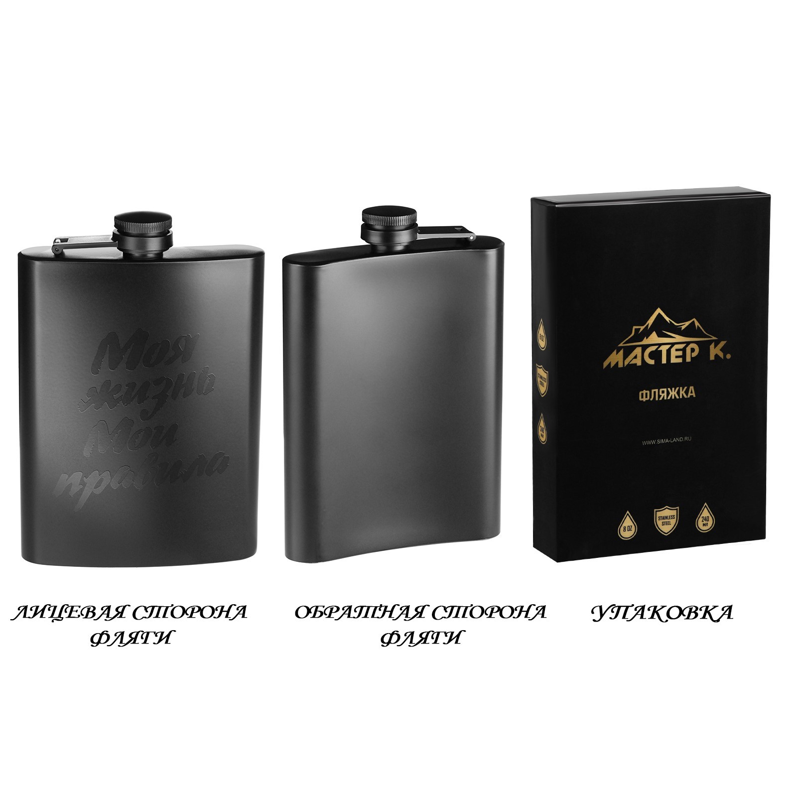 Фляжка для алкоголя "моя жизнь, мои правила", нержавеющая сталь, 240 мл, 8 Oz