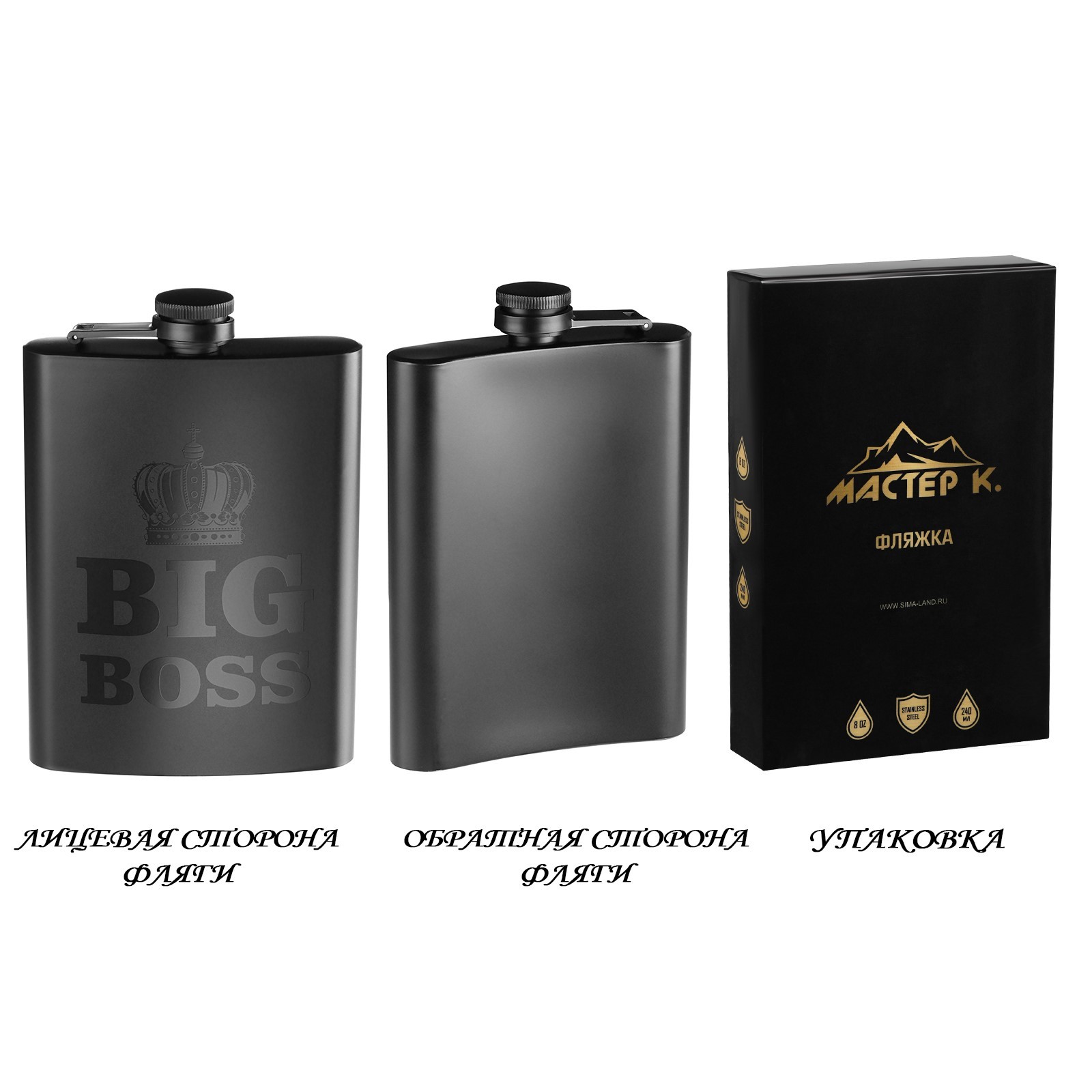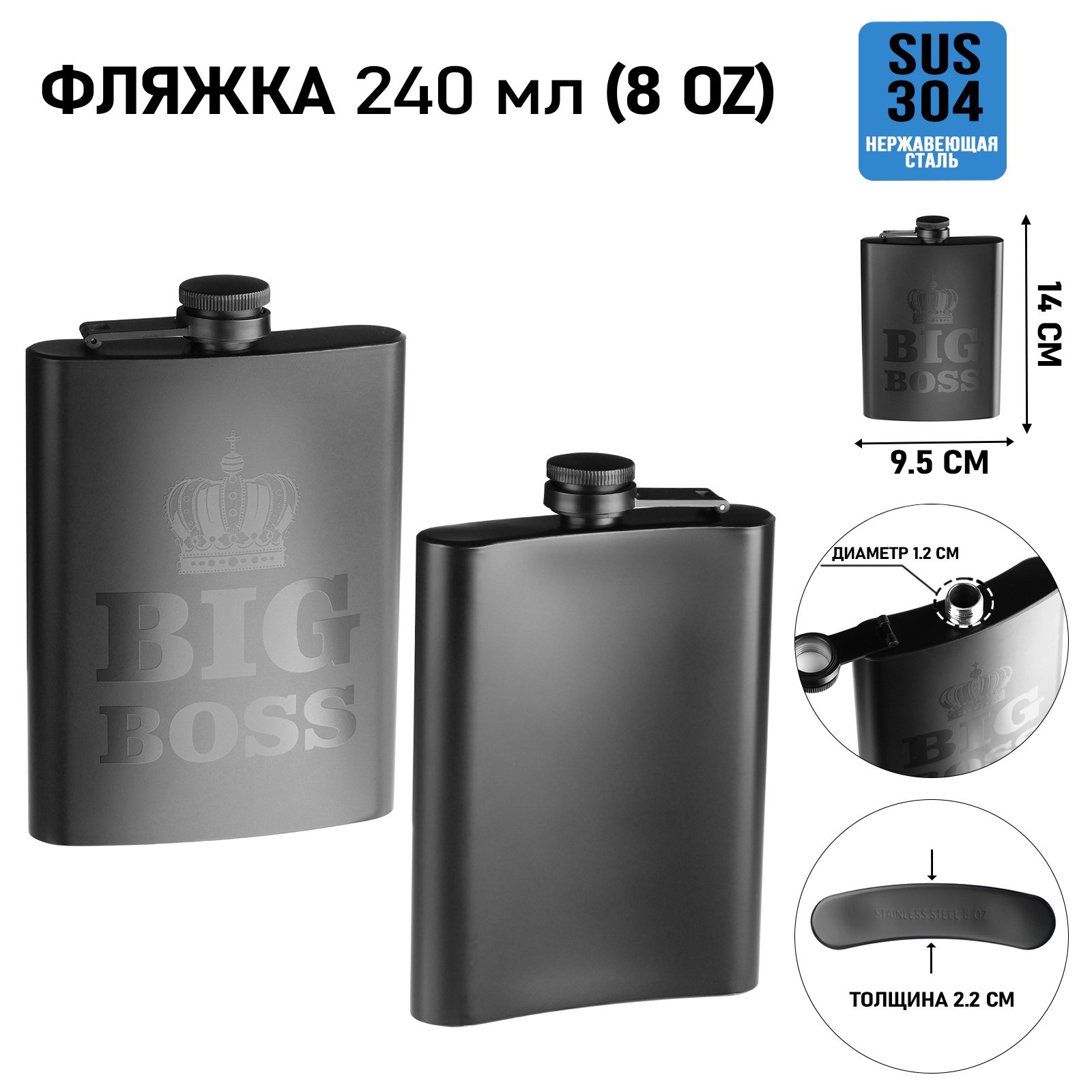 Фляжка для алкоголя Big Boss, нержавеющая сталь, подарочная, 240 мл, 8 Oz