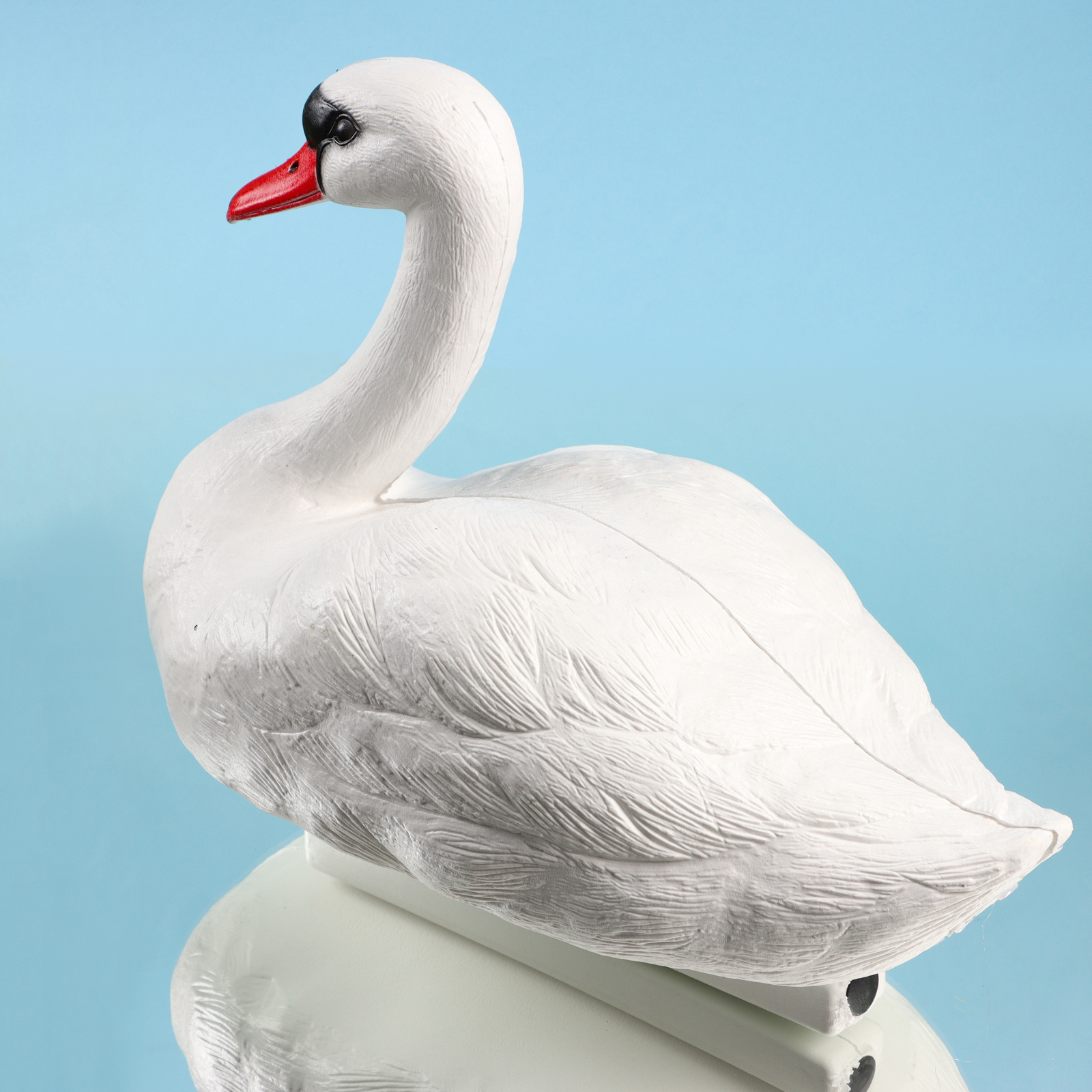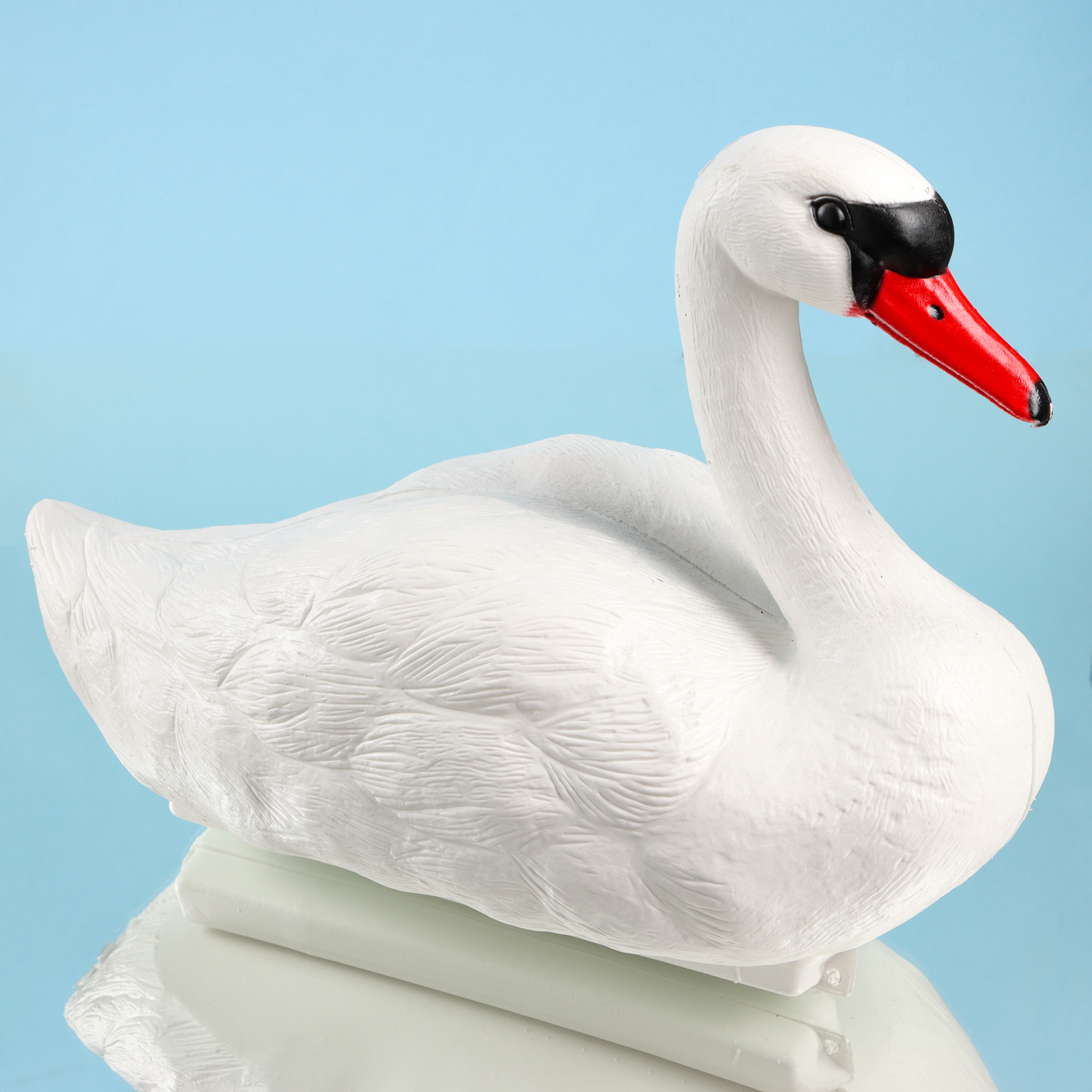 Водоплавающая - подсадная фигура "лебедь" 36х19х27см. Создание ландшафтного декора на дачном участке - это творческий процесс, во время которого вы можете проявить всю свою фантазию и вкус. Оживить любой сад поможет водоплавающая подсадная фигура. Эта фигура имеет реалистичный дизайн и изготовлена из высококачественных, водостойких материалов, что позволяет ей легко адаптироваться к различным водным условиям. Поместите её среди кустов, украсьте водоем или разместите на крыльце дома… она станет маленькой «изюминкой» вашего участка. Используйте фигуру в качестве подсадного чучела для охоты. Его легкая основа и естественные оттенки позволяют изделию держаться на воде и не отпугивать других животных. Материал: Полистоун Вид приманки: Лебедь Пол: Самец Пол: Самка  развернуть описание ▼