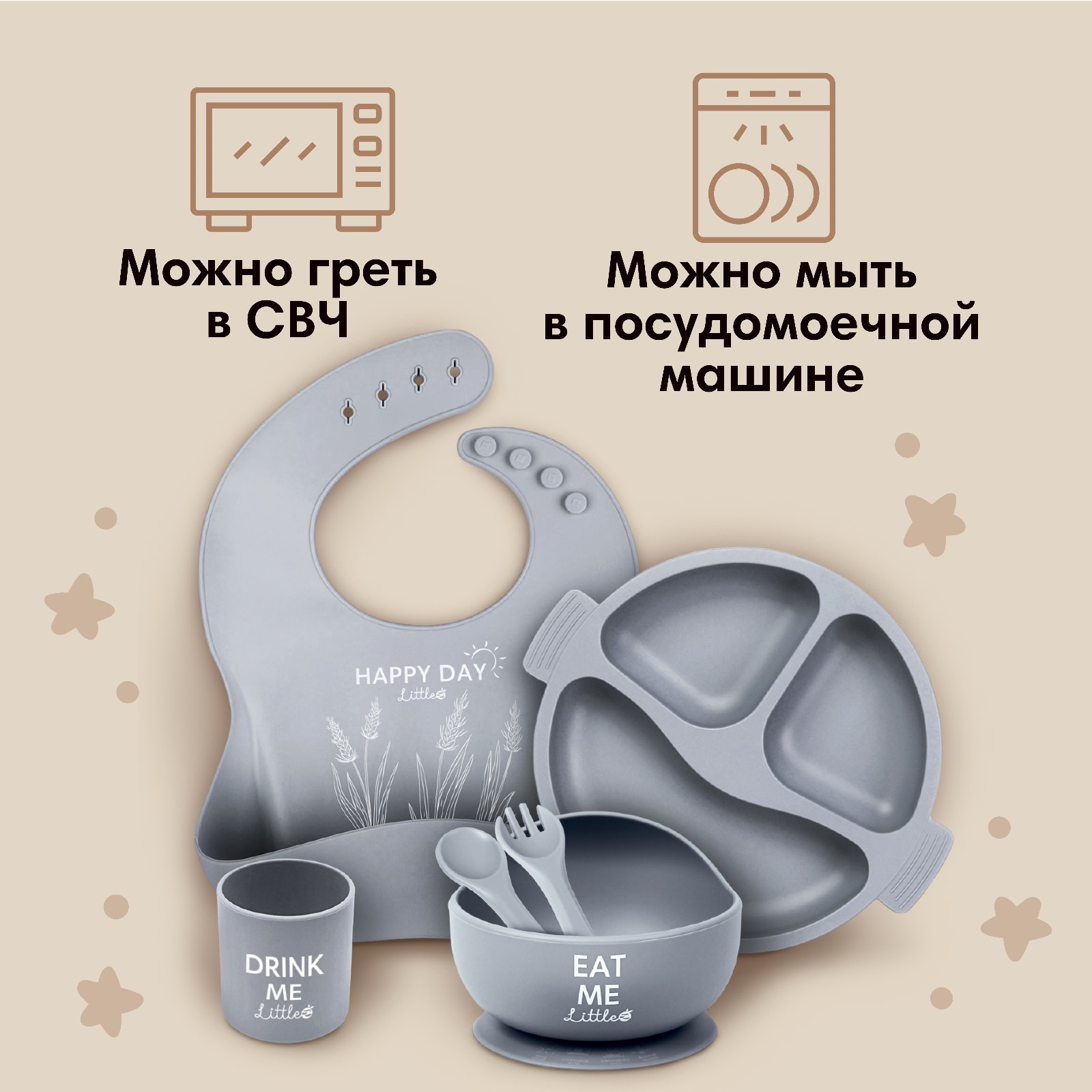 Набор для кормления: нагрудник, тарелка 2шт, стакан, приборы, M&b, серый