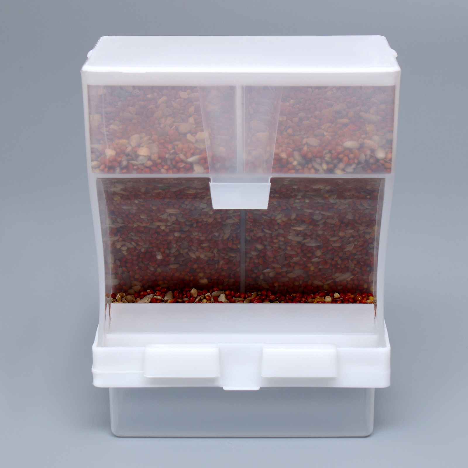 Качественные материалы: Изготовлена из прочного и безопасного для птиц пластика, кормушка устойчива к воздействию окружающей среды и легко чистится. Белый цвет дополняет интерьер, придавая свежий и аккуратный вид любому помещению.